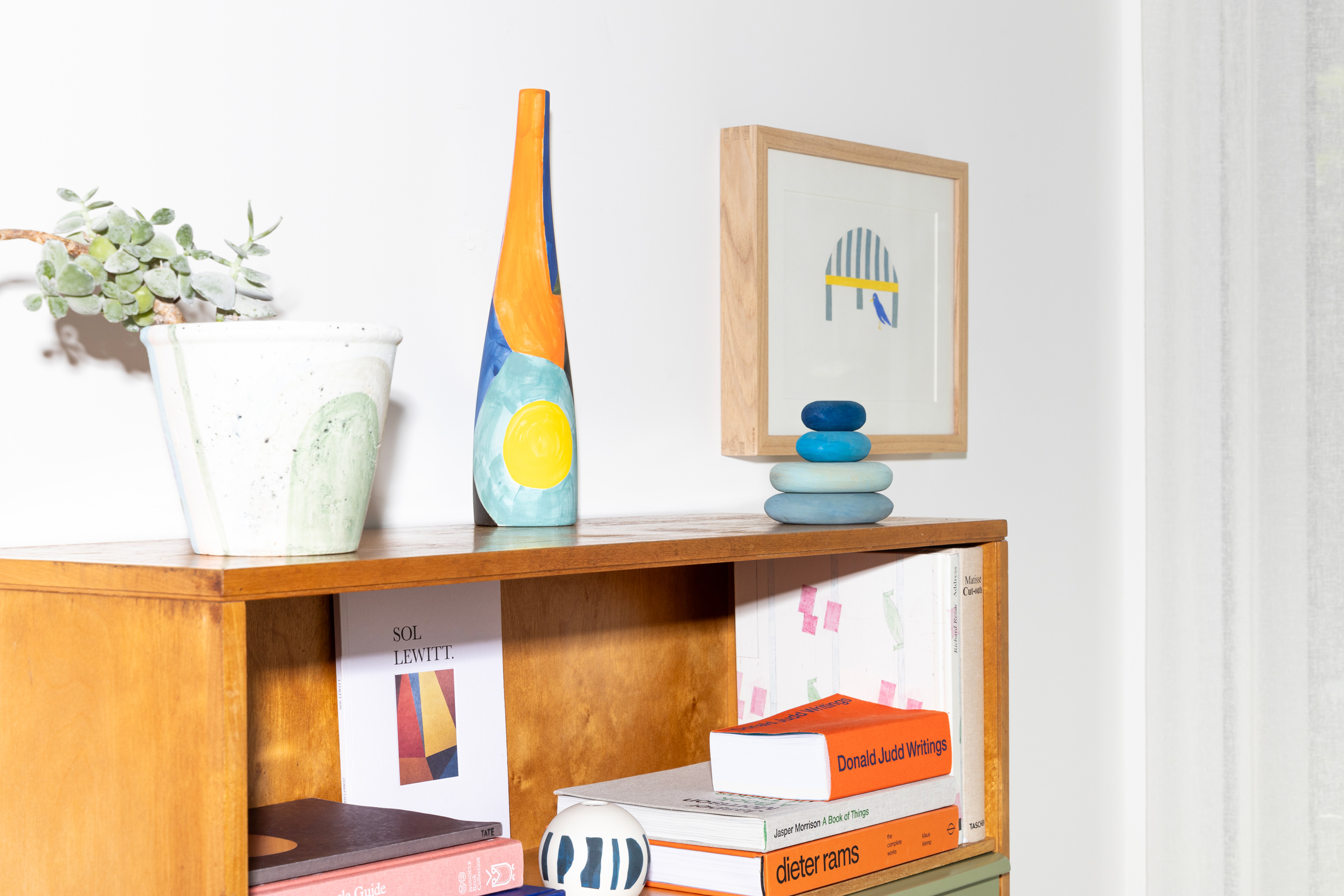 일본 디자이너 마키시 나미(真喜志奈美)가 만든 책장을 사서 점점 높게 쌓이는 아트북을 잘 정리하고 싶어요. 세로로 구획한 디자인이라 책들이 한눈에 잘 보일 것 같아요.