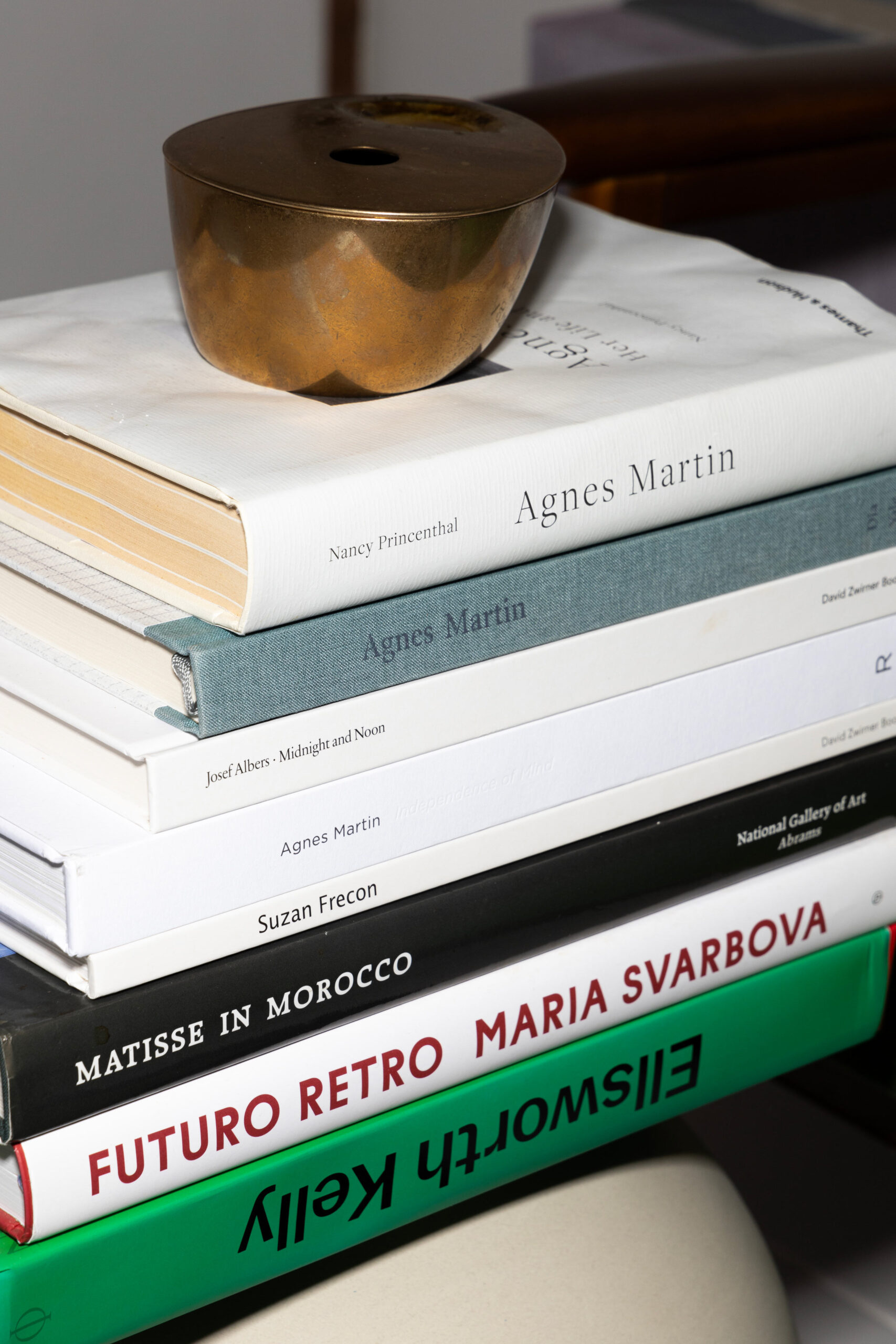 아트북 컬렉션은 좋아하는 작가들의 책을 한두 권씩 모으며 완성해 가고 있어요. 특히 아그네스 마틴Agnes Martin을 좋아해서 그의 책이 가장 많고, 루이스 부르주아Louise Bourgeois와 앙리 마티스Henri Matisse의 책도 있죠. 아트북을 제외하면, 긴 호흡의 소설보다 시나 산문, 에세이 등을 좋아해요. 특히 사물이나 공간을 아름답게 묘사한 문장에서 작업에 대한 영감을 많이 얻어요. 마르셀 프루스트Marcel Proust가 쓴 『시간의 빛깔을 한 몽상』이라는 산문 시집 속 단편과 문장들을 특별히 좋아해요. 에릭 로메르Éric Rohmer와 루카 구아다니노Luca Guadagnino가 연출한 영화들도 몇 번이고 다시 보고요. 여름이 오면 더욱더 생각나죠.