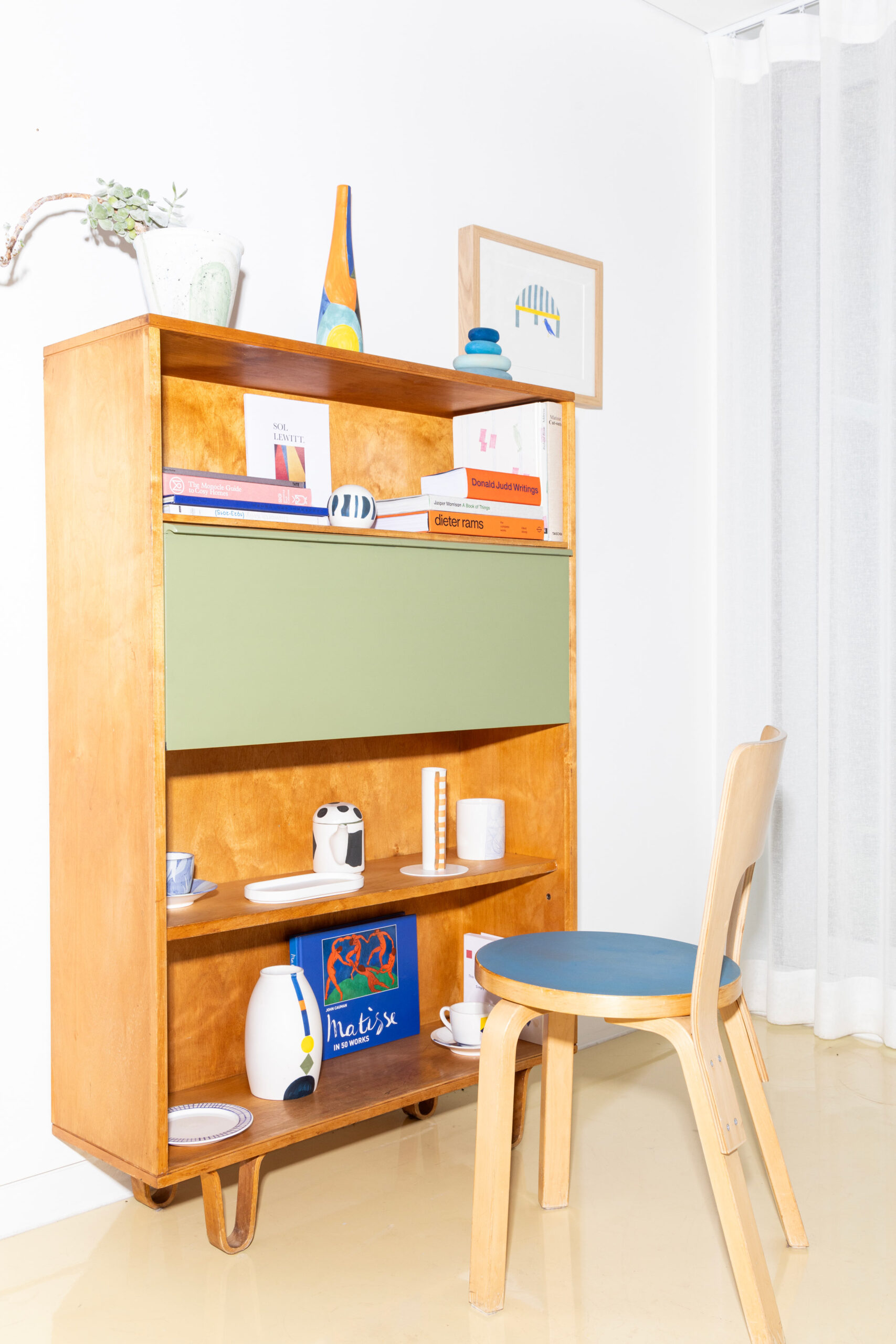 네덜란드 가구 디자이너 케이스 브라크만Cees Braakman의 수납장 겸 뷰로bureau가 쇼룸 쪽에 있는데, 책도 꽂고 책상도 겸할 수 있어서 공간이 바뀌어도 여러 용도로 사용할 수 있을 것 같아요. 단 하나의 아이템을 골라야 한다면 아마 그걸 선택할 것 같아요.