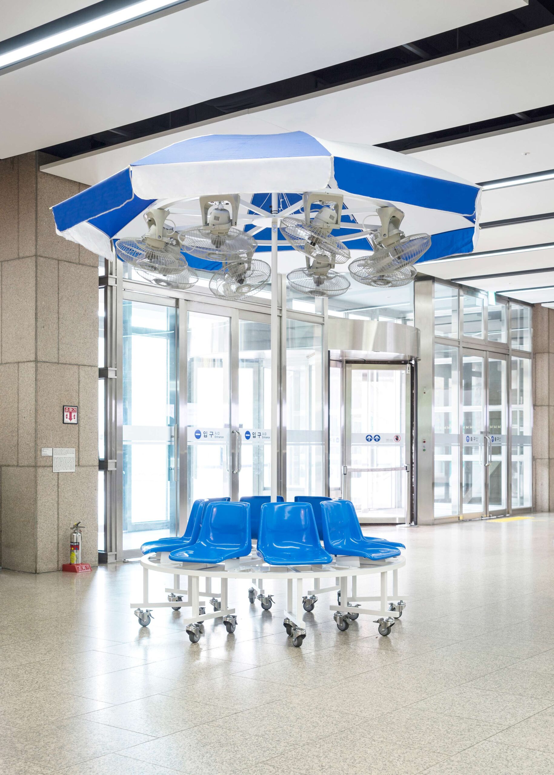 보통 최근에 진행한 작업을 대표작으로 소개하는 편이에요. 그 속에 제 모든 노하우가 담겨 있으니까요. 너무 멀리 말고, 몇 년 사이에 기억나는 것을 말씀드려 보겠습니다. 가장 먼저, 2016년 국립현대미술관 과천관 로비에 전시했던 ‹팔방풍›이 생각나요. 이후 ‹팔방거›, ‹언덕 위의 팔방풍› 등의 연작이 나오는 시작점이라 제게는 중요한 의미를 갖는 작품입니다. 2017년에는 국립현대미술관 서울관 관련자, 그래픽 디자이너와 즐겁게 협업한 ‘고객의 소리 MMCA 온’에서 가구 디자인을 맡았는데요. 미술관에 갈 때마다 항상 사람들이 앉은 모습을 볼 수 있어서 마음이 흡족해요. 2018년, 문화역서울284에서 열린 «커피사회»에 설치한 ‹커피, 케이크, 트리›는 지름 5m, 높이 4m 규모의 사람들이 좋아할 만한 커다란 상징 조형물이었어요. 당시 연말에 한 해를 잘 마무리하는 기분이 들어서 기억에 남아요. ‘제14회 언리미티드 에디션 – 서울아트북페어 2022’의 경우에는 좋은 아이디어가 있다면 적은 비용과 촉박한 스케줄 아래에서도 효과적으로 공간을 장악할 수 있다는 걸 보여주는 사례 같아서 말씀드리고 싶어요.