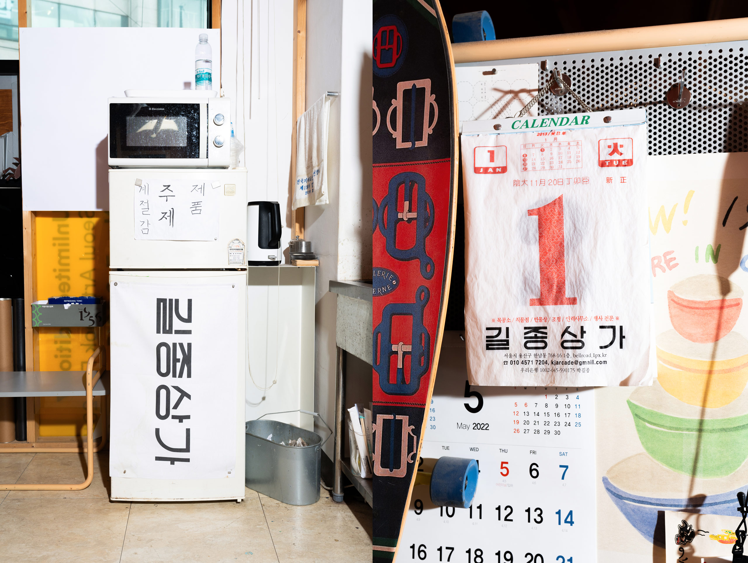 대로변에는 가구와 조명 가게가 많은데, 작업실이 위치한 안쪽 골목은 또 다른 분위기네요. 건어물 시장이 펼쳐지며 골목마다 굴비가 주렁주렁 걸려있어요. 오랜 시간 지내보니 이 동네와 작업실의 장단점은 무엇이던가요?