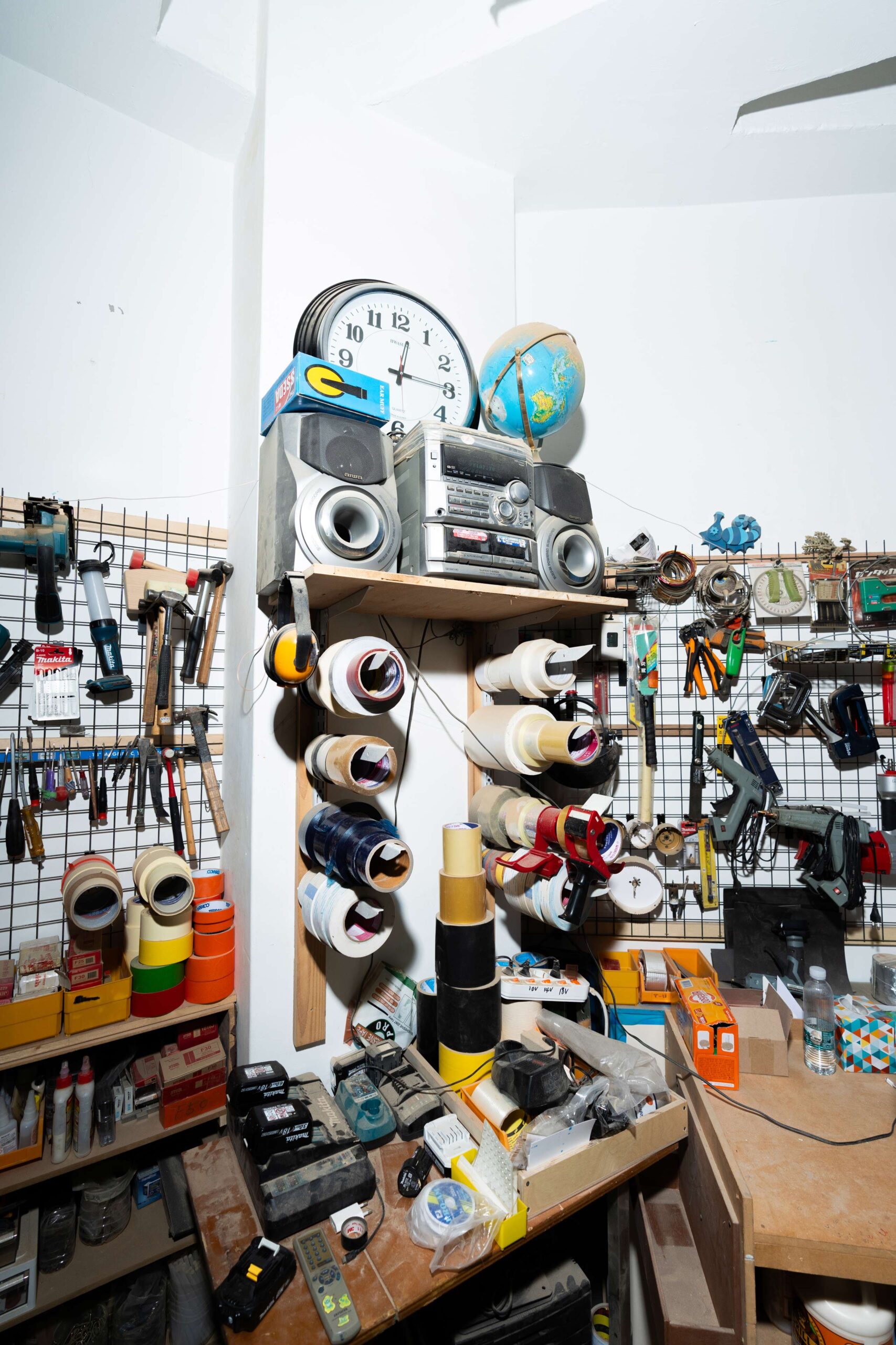 어릴 때부터 물건을 잘 버리지 못하는 성격이었어요. 일기나 그림, 무언가를 기록한 메모, 좋아하던 물건 등을 오랫동안 모았는데요. 부모님 댁에서 독립한 후로 본가에 갈 때마다 하나둘씩 가지고 왔죠. 초등학교 6학년 때 그린 포스터, ‘아이와AIWA’ 오디오 세트, 연필깎이 등을 작업실 여기저기에 두었어요. 제가 실제 사용한 것도 있지만, 산책 중에 발견한 물건도 많아요.