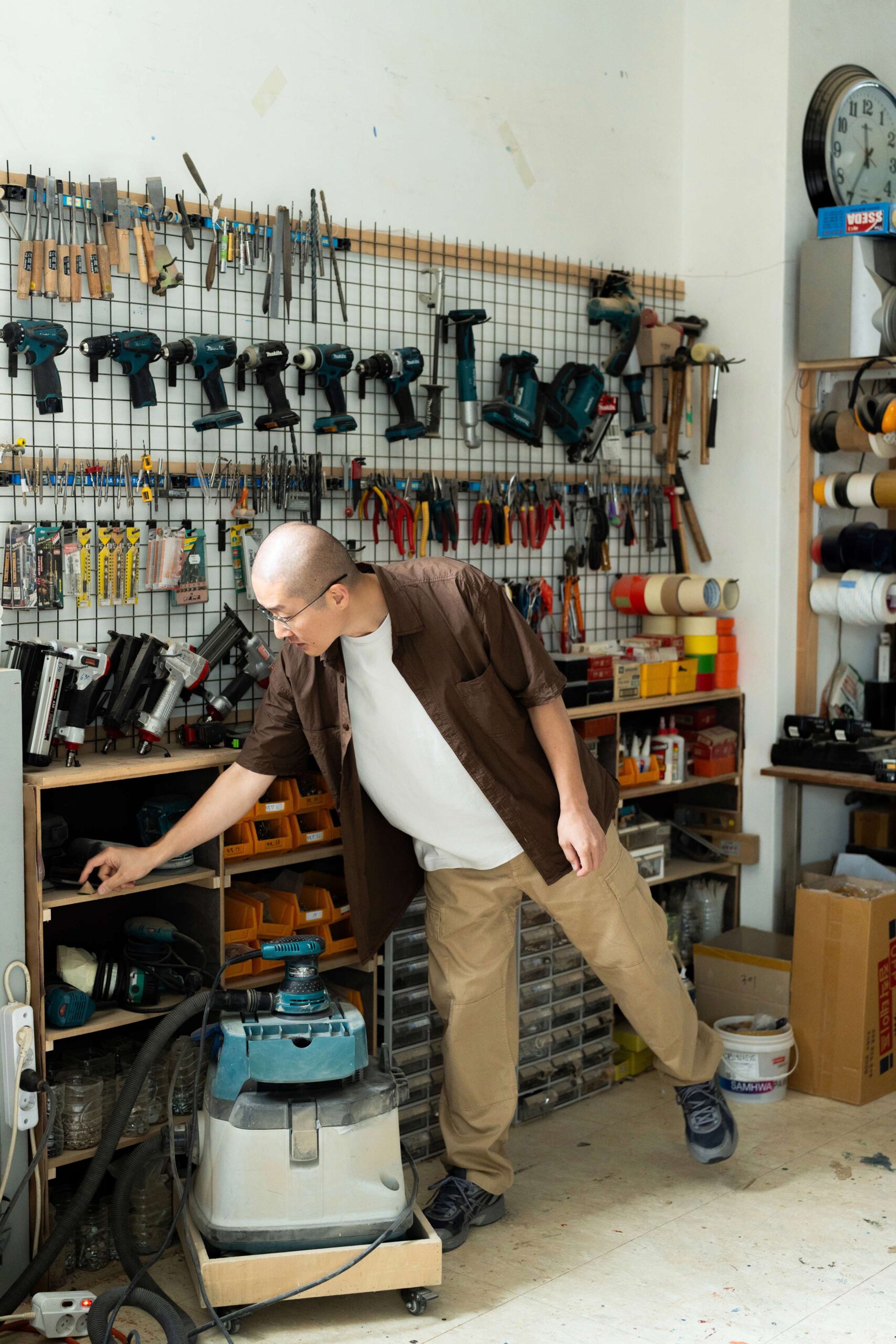 타카와 드릴, 사포, 샌딩기 등이 기본적으로 필요해요. 가구 만드는 사람은 대부분 갖추고 있는 평범한 아이템이죠. 고가이거나 특별한 브랜드의 장비를 사고 싶은 생각은 딱히 해본 적 없어요.