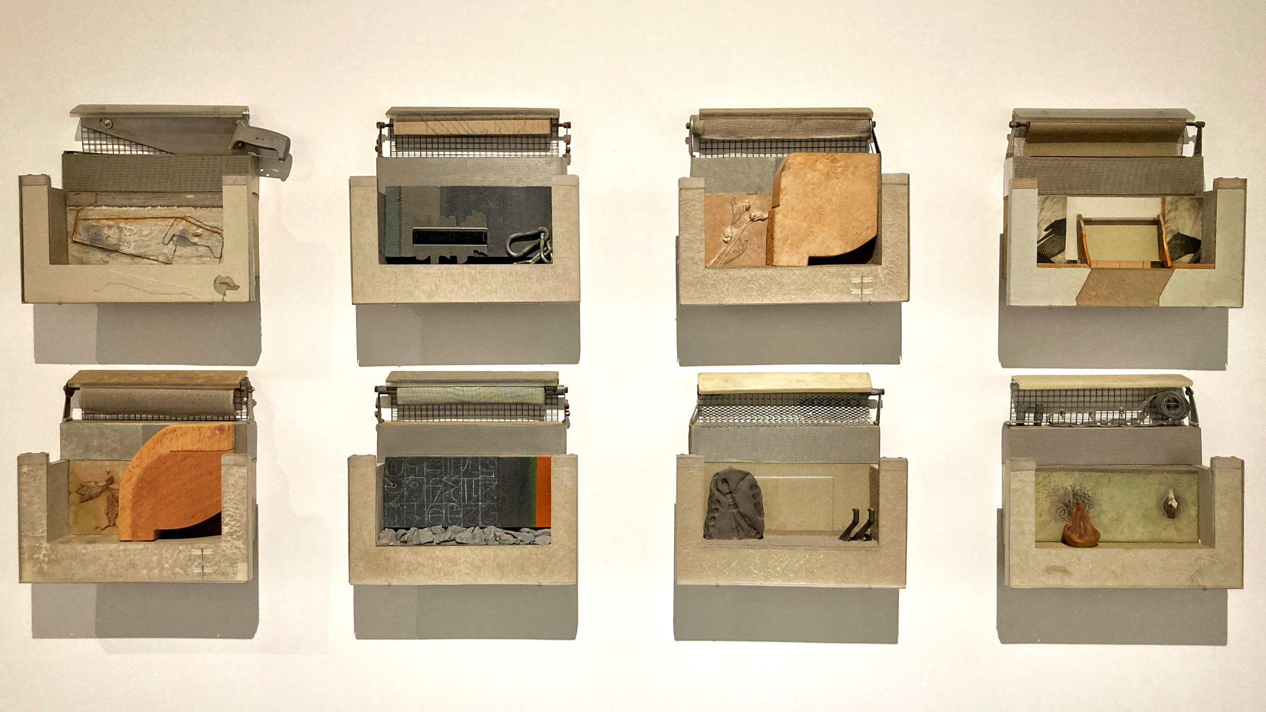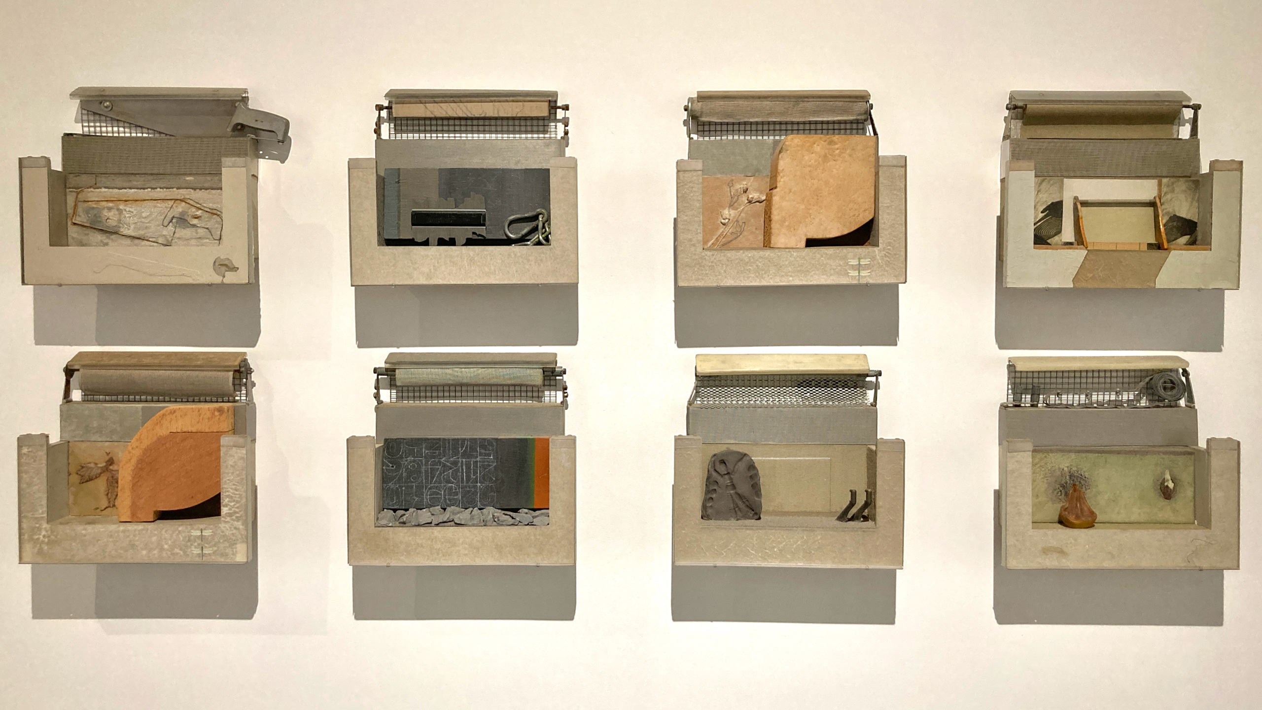 1970년대 초 뉴욕으로 건너가 활동한 임충섭 작가는 매일 허드슨강변을 산책하며 주운 물건을 ‘아상블라주assemblage’의 재료로 사용해 ‹Scape@Fossil 1-8›를 작업했다. 종이, 나뭇가지, 철제 부품, 돌멩이 등 이질적인 사물을 함께 놓아, 기존에 학습한 인식의 틀로는 설명하기 힘든 새롭고 묘한 느낌을 자아낸다. ‘발견된 사물로 쓴 시’라고 불릴 만한 서정적인 작업이다.