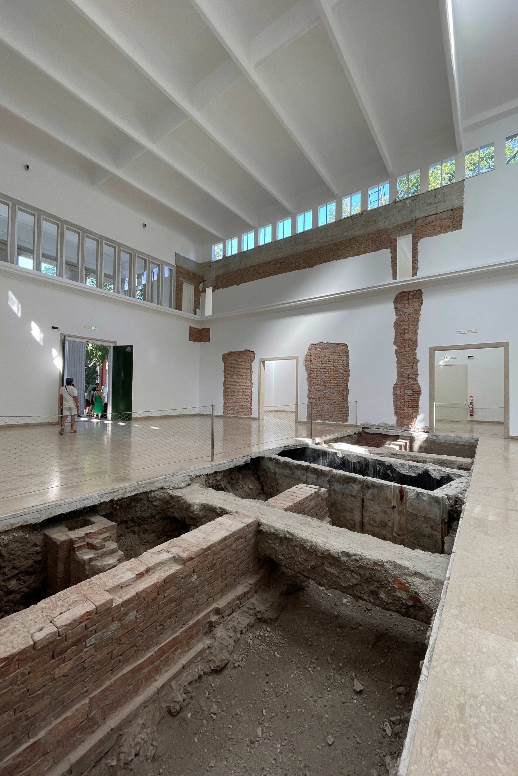 독일처럼 베니스 비엔날레에 참여한 역사가 긴 나라는 건물 자체에 담긴 전시-공간-기억이 만만치 않다. 1909년 ‘바바리아 파빌리온’이라는 이름으로 세워진 독일관은 나치 시절인 1938년 기존 건물을 일부 철거한 후 새로운 건물로 대대적인 수리를 단행했다. 이후 나치 정권의 파시즘 미학을 담은 모습의 전시 공간 자체를 파괴하거나 (1993년 베니스 비엔날레에 백남준과 함께 독일관 대표 작가로 참여한 한스 하케Hans Haacke는 나치 시절 설치한 대리석 바닥을 유리창 깨부수듯 박살 냈다), 고고학자처럼 전시장 자체를 탐구하기도 했다. (2022년 독일관 작가인 마리아 아이히호른Maria Eichhorn은 전시장 벽을 조심스럽게 긁어내며 나치 시절부터 겹겹이 덧칠한 페인트의 지층을 드러내고 전시 공간 바닥을 굴착기로 파고 들어가 나치 이전에 세워진 건물 토대를 노출했다)