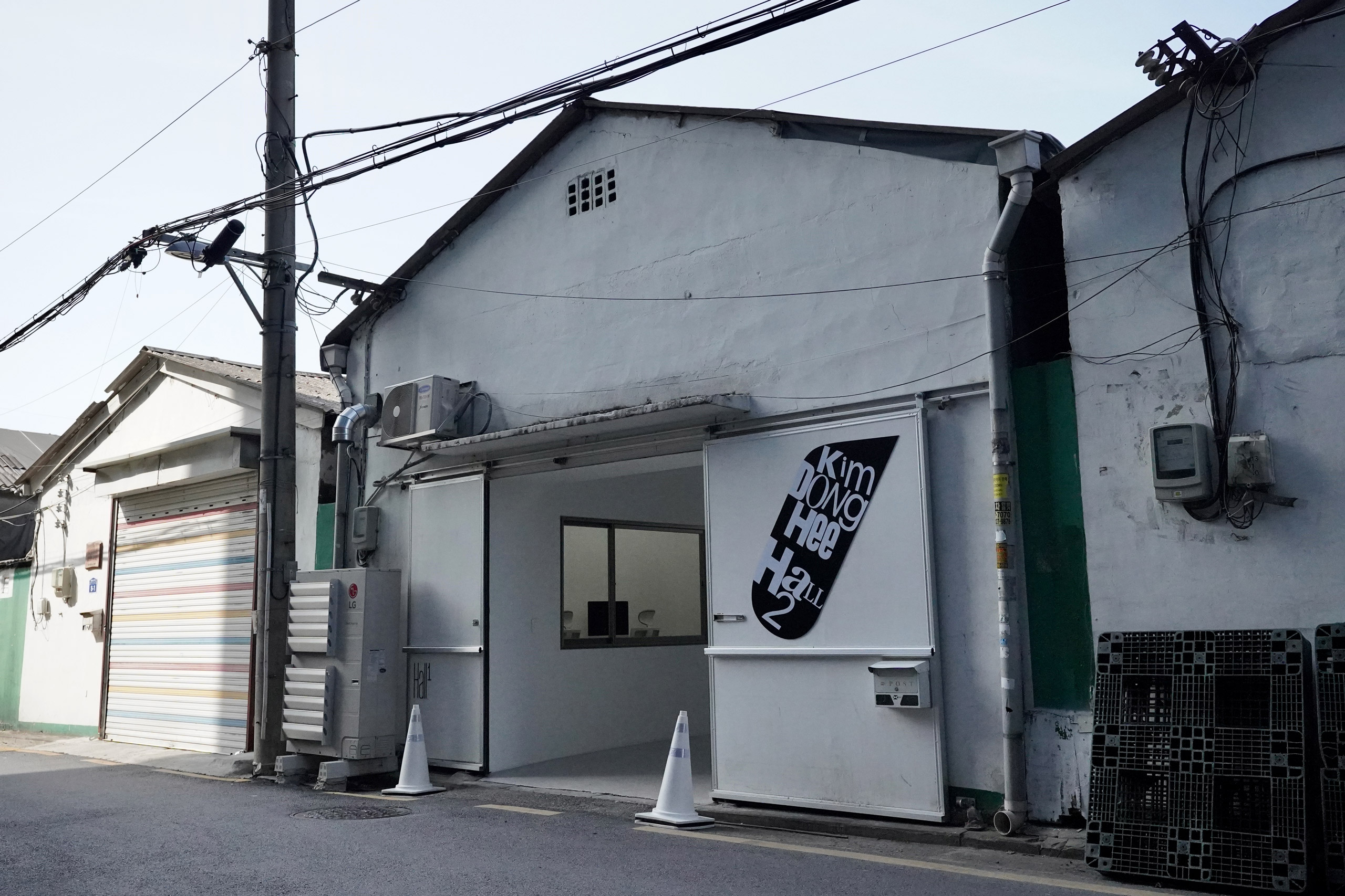 하지만 전시-공간-기억은 국가 단위를 대표하는 베니스 비엔날레의 파빌리온 같은 전시 공간에만 존재하지 않는다. 이 기억은 전시가 반복적으로 치러지거나 발생하는 곳이라면 어디라도 축적된다. 마침 지금 열리고 있는 김동희의 개인전 «Hall 2»(4월 27일~5월 28일)는 바로 이런 문제를 다루고 있다. 전시 장소 ‘Hall 1’은 처음에 공장과 창고로 쓰이던 공간을 촬영 스튜디오로 바꿨다가 점점 더 전시장으로 쓰이는 일이 늘어나면서 여러 전시의 공간과 기억을 담게 된 곳이다. 전시 기획자 권순우는 “전시가 일어나는 기간의 전시장 ‘Hall 1’은 조금 이상했다. ‘Hall 1’의 장점인 비교적 말끔해 보이는 큰 바닥과 벽을, 마치 연장된 화이트 큐브의 일종으로 대하면서 작가(혹은 작품)와 관객 사이에 기묘한 무언의 합의 같은 것들을 전제로 전시의 시간이 열렸다 닫힘을 반복했다.”라고 글에서 밝힌다.