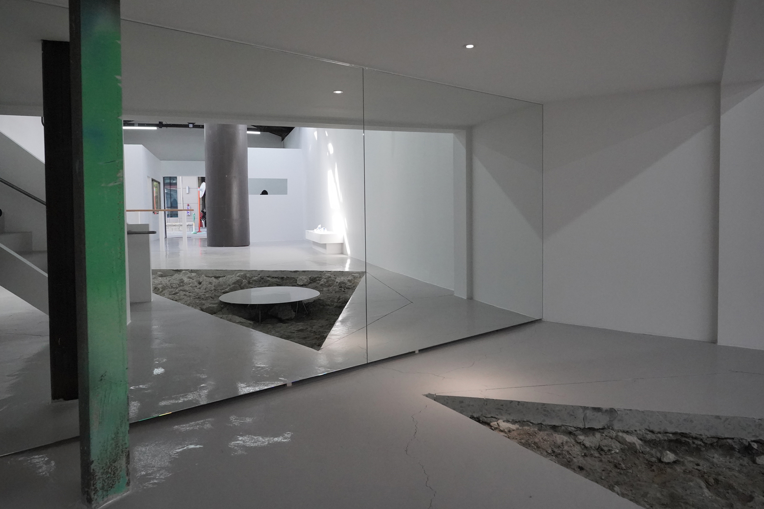 전시-공간-기억이라는 측면에서 «Hall 2» 전시는 베니스 비엔날레에서 국가별로 고정된 파빌리온의 공간과 기억을 다루었던 여러 전시보다 좀 더 흥미롭다. «Hall 2»가 소환하는 전시-공간-기억의 원본을 접한 경험과 기억이 있는 관객이라면, 이 전시는 특정 전시 공간에 부착된 기억을 다른 공간으로 가져와서 ‘새로고침’ 해보는 경험을 안겨준다. 김동희 작가가 가져온 걸 처음 보는 사람에겐 이 전시는 또 다른 새로운 전시-공간-기억으로 남게 된다. 전시 공간의 콘크리트 바닥을 잘라 단면을 드러내고 심지어 건물을 덮고 있는 지붕 일부분도 없애 버리면서 ‘Hall 1’이라는 전시장에 흔적과 기억을 덧붙이는 건 물론이다. 다음 전시를 보러 온 어느 관객은 전시 공간 바닥을 메꾼 자국을 발견하고, 천장의 일부를 새로 교체한 흔적을 알아차리게 될 테다.