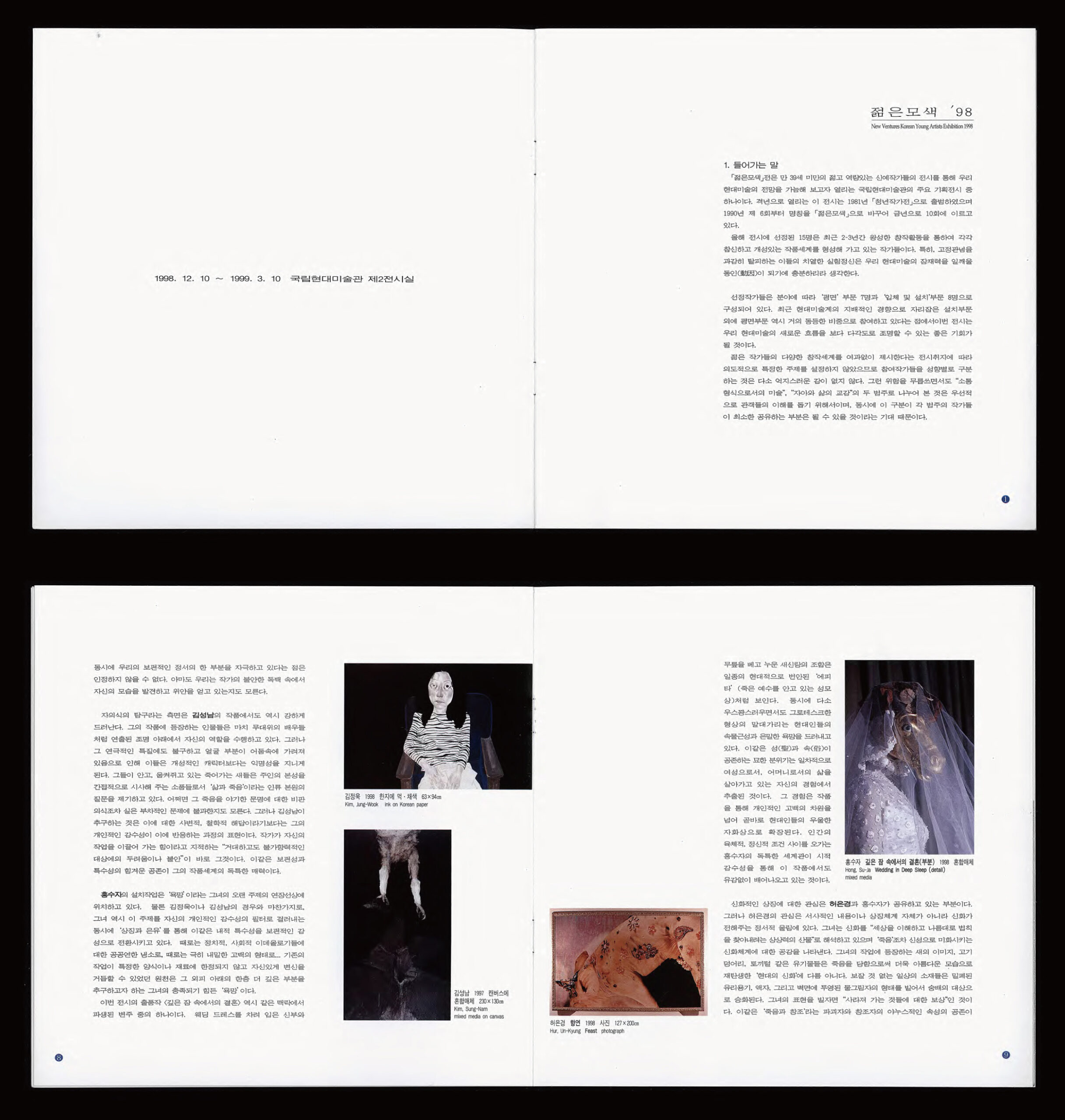 1998년 «젊은 모색» 전시 인쇄물. 국문 제목은 젊은 모색 을 꾸준히 지켜왔지만, 영문 제목은 1992년까지 (좀 더 젊은 느낌의) Groping Youth 를 쓰다가 1994년 New Ventures Korean Young Artists’로 바뀌었다. 현재는 Korean Young Artists 를 쓰고 있다.
