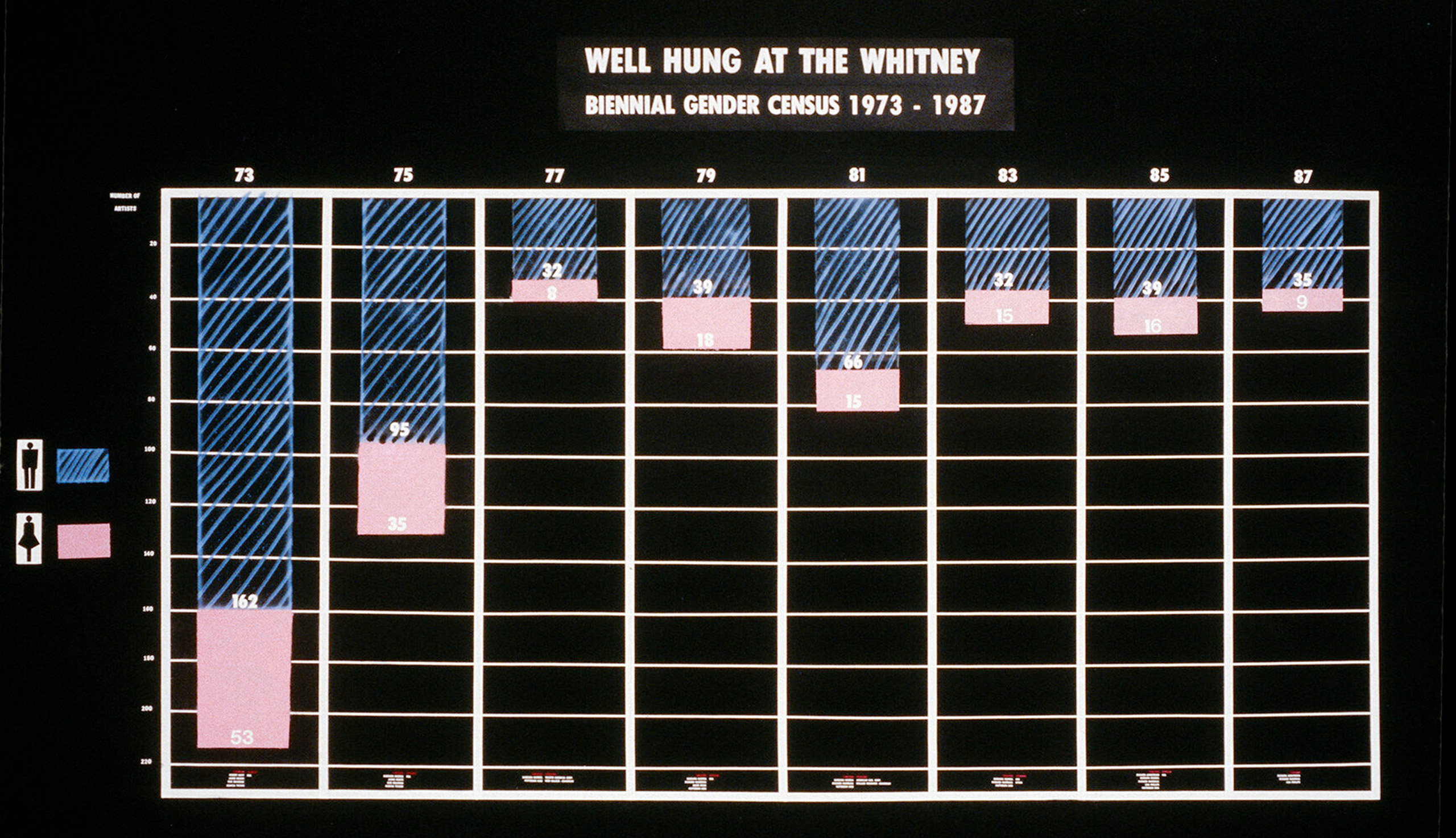 1973년부터 1987년까지 비엔날레에 참여한 작가의 젠더 불균형을 도표로 시각화했다.