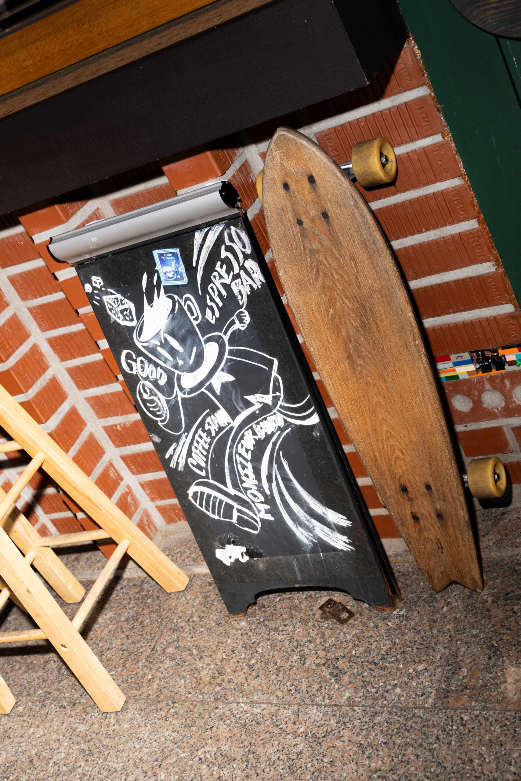오현: 서로 취향이 비슷해요. 저는 1980년대 후반부터 1990년대 초반에 나온 모든 디자인을 사랑하는데요. 아내도 세월이 묻어나는 오랜 빈티지 제품을 좋아하죠. 그래서 더 믿고 맡길 수 있었어요. 저희 가족 각각이 지닌 능력을 아니까, 새로운 메뉴나 공간을 만들 때 잘 써먹으려고 합니다. (웃음) 저희의 슬로건인 ‘FOR A LONG LIFE IN THE FAMILY’를 실천하고 있죠. 드립백과 컵에 보이는 로고는 저희 아들이 직접 그린 거예요.