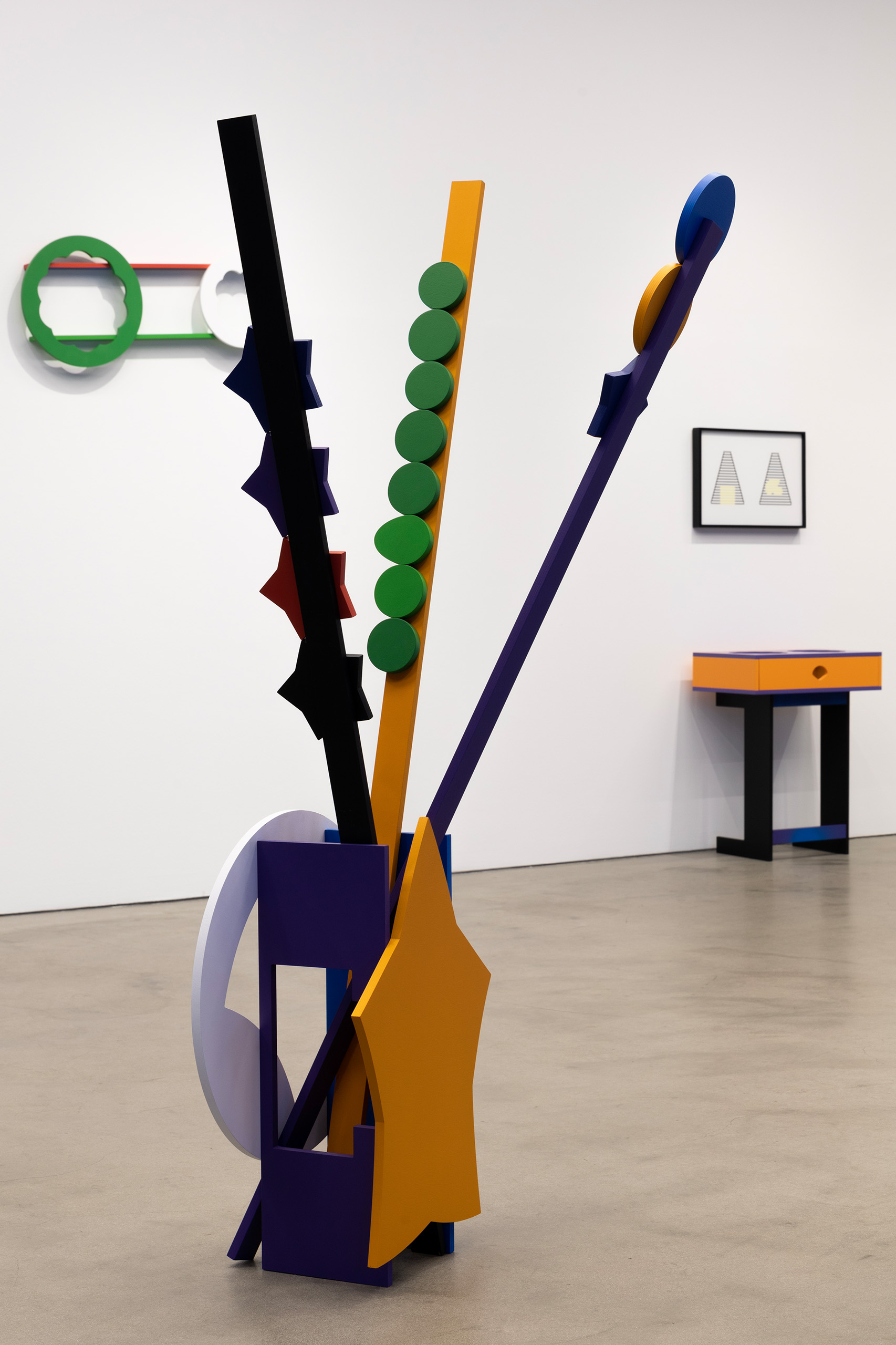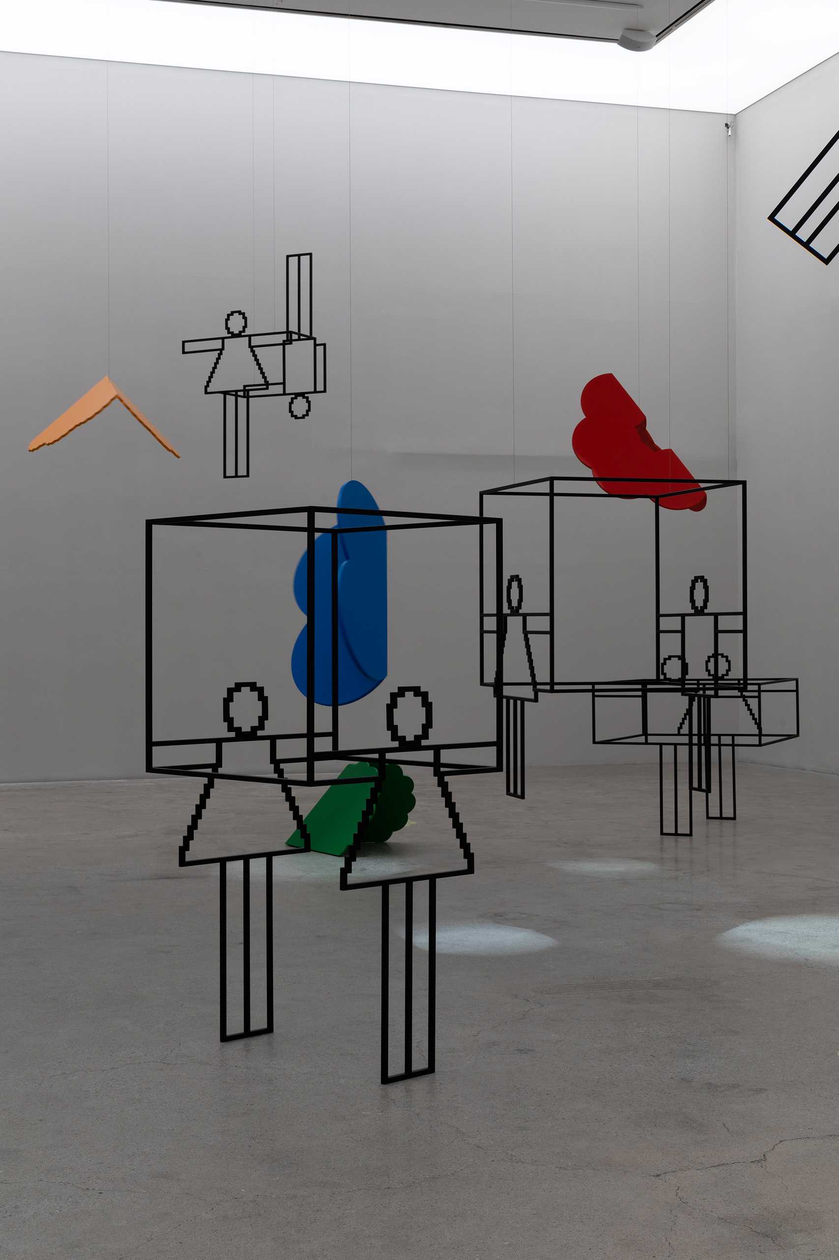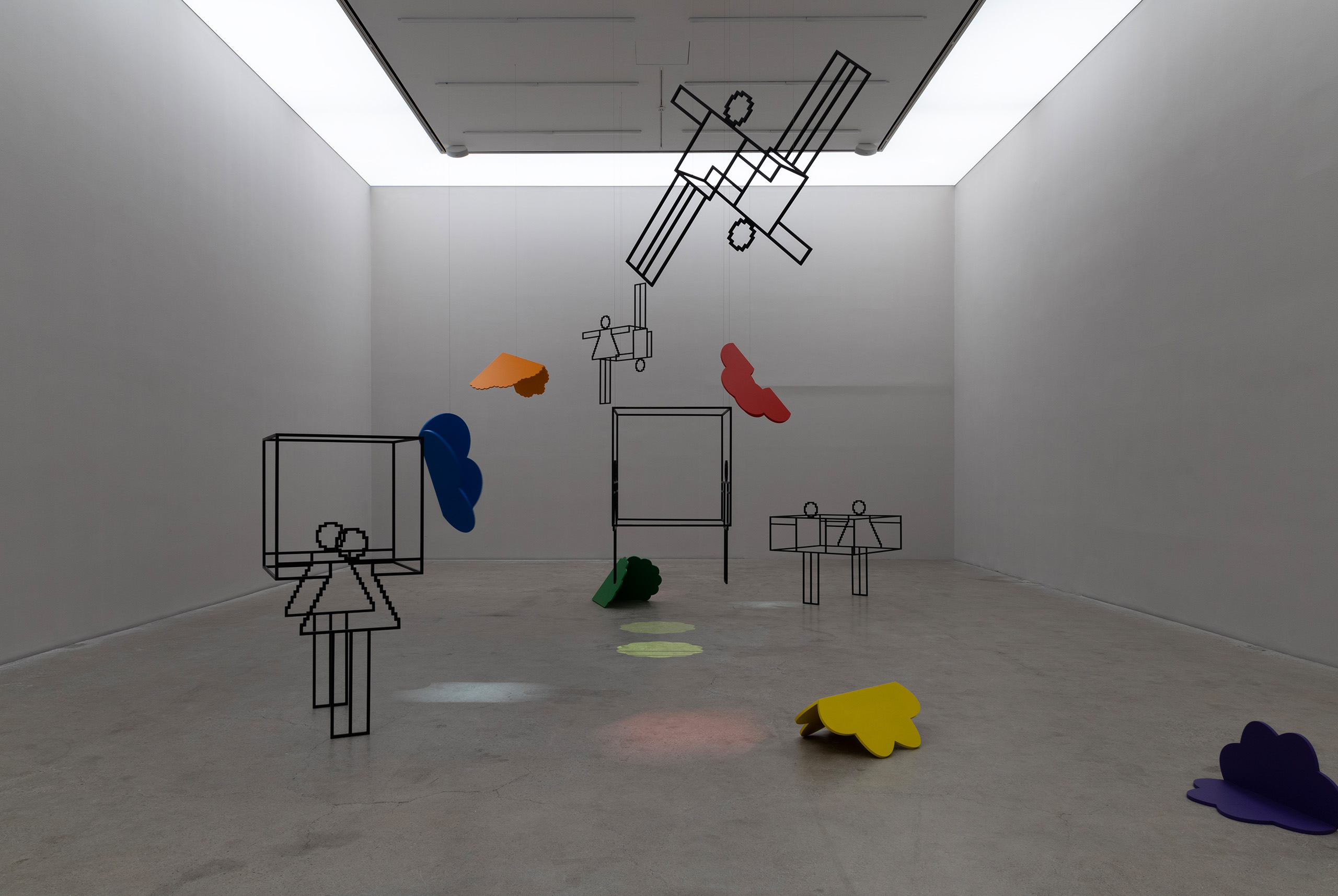 2004년 국제갤러리에서 연 개인전 «복선伏線을 넘어서(Over the Layers)»의 후속편인 이번 전시는 K1과 K3, 총 두 곳의 전시장을 다채롭게 구성해 자신의 전매특허인 ‘유기적 기하학’이 어떻게 자유를 획득하고 있는지 섬세하게 보여준다. K1 바깥쪽 작은 공간에는 일러스트레이터의 다양한 기능으로 새로운 언어를 습득한 연습 과정을 평면 작업으로 기록했다. 별, 꽃, 타원 등 사각형의 틀에서 벗어난 작가의 유려한 색채와 선을 만날 수 있다. K1 안쪽 전시장에는 이런 평면이 입체로 변한다. 순수한 조형물뿐 아니라 테이블과 조명 등 디자인과 미술을 넘나드는 여러 오브제가 관람객을 기다린다. 전시의 대미를 장식하는 K3에는 작업이 공중으로 부양했다. 형형색색의 꽃으로 장식한 무대에서 작가가 제작한 영상과 사운드에 맞춘 픽토그램 인형의 무도회가 펼쳐진다.