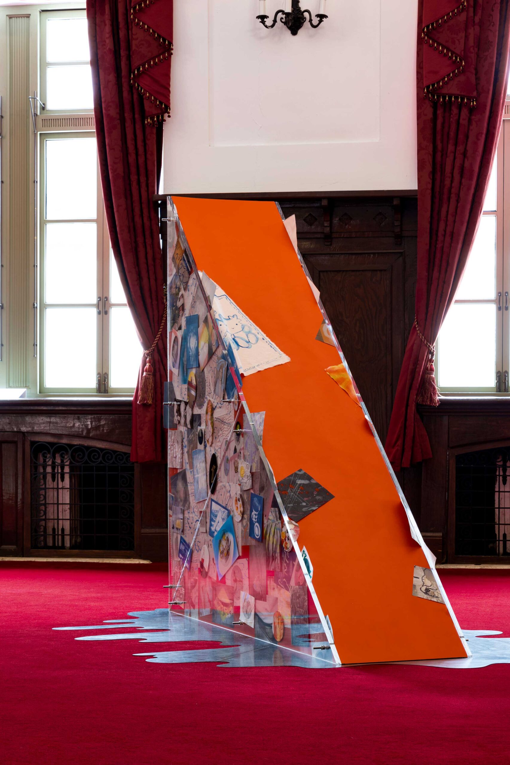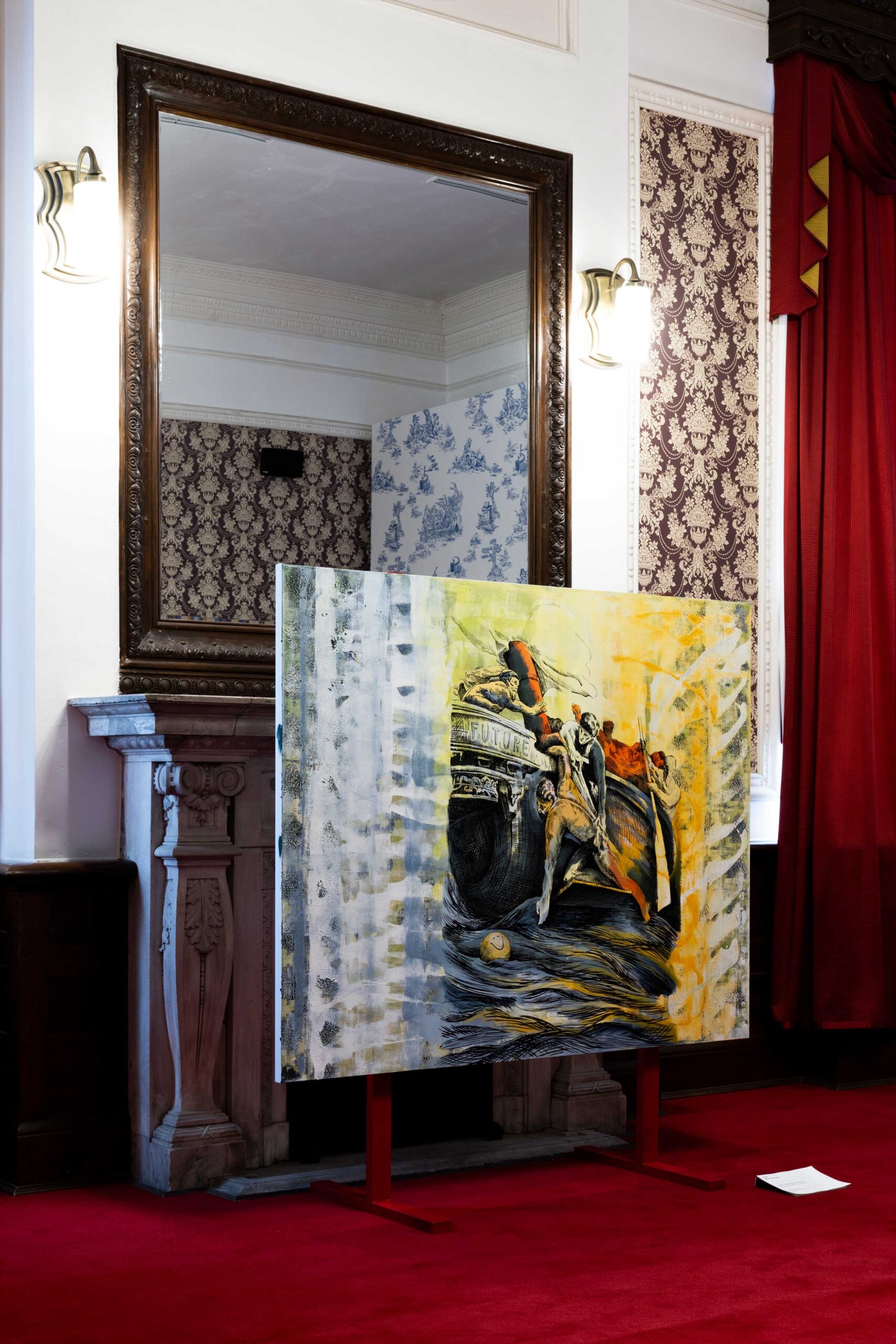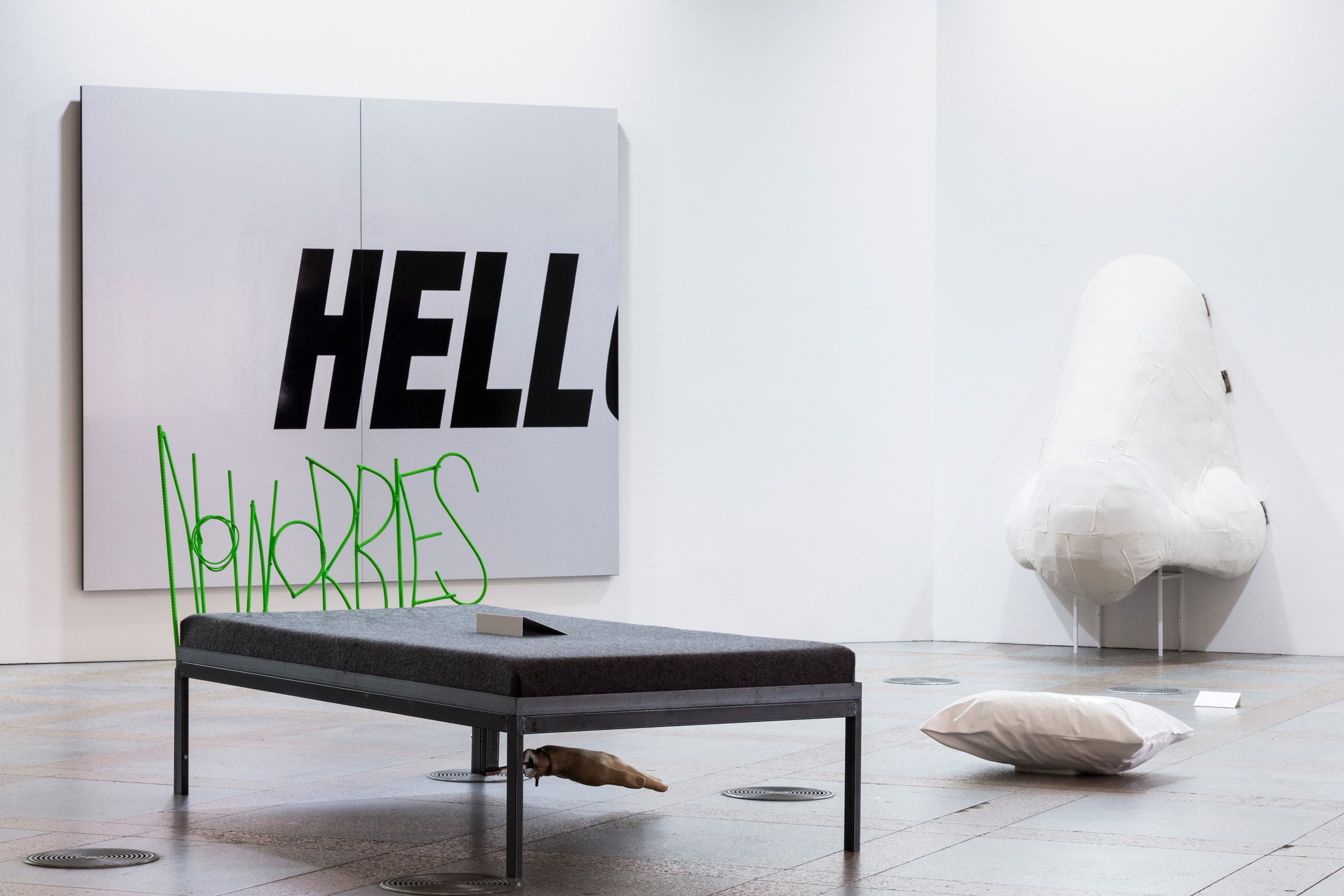 작품들은 하루 동안의 시간대를 기준 삼아 총 일곱 가지 흐름으로 나뉜다. 하지만 이는 전시 공간에서 차례대로 구현되지 않는다. 마치 규칙화하기 힘든 잠의 단계처럼 공간 곳곳에 무질서하게 흩어져 있다. 거대한 흐름과 작품의 상관관계는 오직 리플렛에 표시한 컬러 코드를 통해 구별할 뿐이다. 그만큼 작품을 바라보는 재미는 다양해진다. 1층 중앙홀에 들어서면 동물 탈을 쓰고 다채로운 포즈로 누운 군상이 보인다. 김홍석의 ‹침묵의 공동체›다. 다양한 직업군에 종사하는 등장인물은 자신만의 잠을 준비하는 듯하다. 잠드는 것인지, 쉬는 것인지, 깨어있는 것인지 알 수 없는 모습은 거대한 중앙홀을 지배하며 잠을 대하는 우리의 모호한 태도를 부각한다. 2층 귀빈실에 자리 잡은 우정수의 ‹미래는 당신을 기다려주지 않는다›도 흥미롭다. 서양 고전 신화와 다양한 문학 원전을 기반으로 상징과 기호를 사용해 고전적인 회화 작법을 다루는 작가는 이번에 19세기 판화를 인용해 페인팅과 벽지로 공간을 가득 채웠다. 과거 귀빈실로 사용하던 화려한 공간은 과거, 현재, 미래를 넘나드는 꿈처럼 시공간을 넘어 시간이 멈춘 듯하다.
