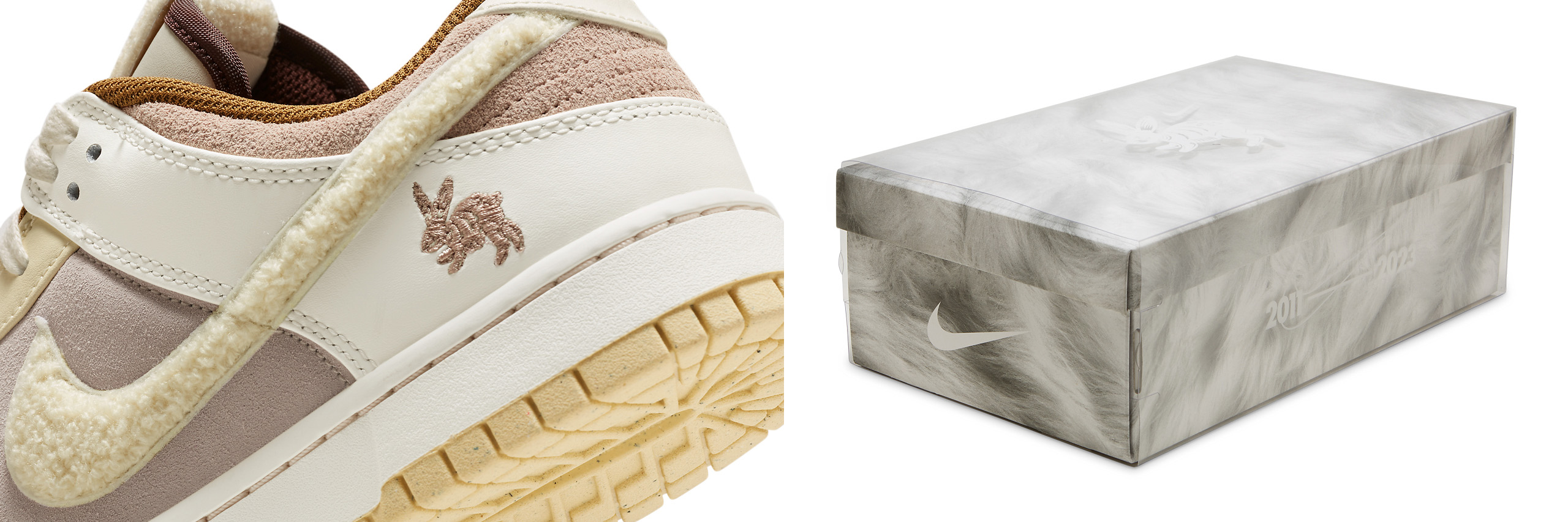 새 신을 신고 뛰어보자 깡총! 무한 확장 세계관의 최강자, 나이키 덩크 로우가 계묘년을 맞아 토끼로 변신했어요. 나이키의 스우시 로고와 발등을 덮는 텅에 사용한 소재는 몽실몽실한 토끼 꼬리털을 꼭 빼닮았습니다. 텅에 부착한 택에는 ‘토끼 토(兔)’도 새겨놨고, 뒤꿈치 쪽에는 폴짝폴짝 뛰어가는 작은 토끼를 수놓았지요. 토끼를 앙증맞게 활용한 이 덩크 로우는 계묘년 기념 특별 슈 박스로 모신대요.