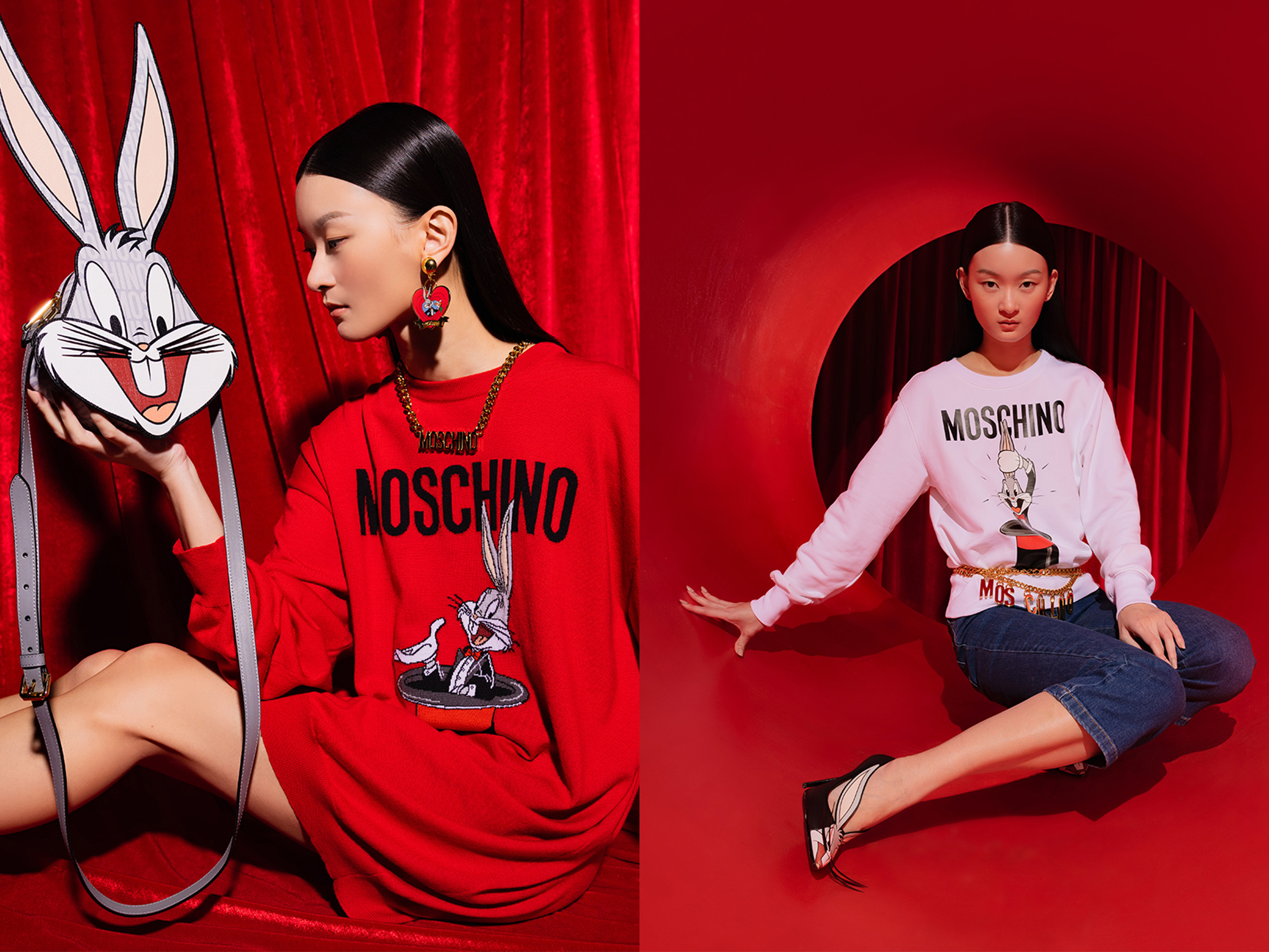 토끼의 해를 맞아 우리에게 익숙한 셀럽 토끼도 전성기를 누리고 있습니다. 세계적으로 유명한 토끼님들이 몇 분 계신데요. 워너 브라더스의 애니메이션 루니 툰의 간판 캐릭터 ‘벅스 버니’도 빼놓을 수 없어요. 벅스 버니는 ‘토끼♥당근’ 공식을 만든 세상에서 가장 유명한 토끼 중 하나죠. 1938년생이라는 지긋한 연세에도 불구하고 능청스러운 웃음을 간직한 벅스 버니가 모스키노를 만났습니다. 벅스 버니 특유의 날렵한 두 귀가 돋보이는 컬렉션이에요. 하트 모양 가방은 곧 다가올 밸런타인데이에 인기를 끌 것 같네요.