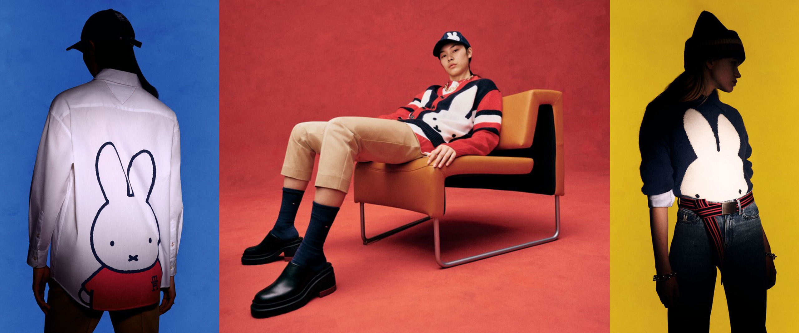 미국에 벅스 버니가 있다면 유럽에는 미피Miffy가 있습니다. 올해로 68세인 미피 어르신은 단순한 선과 점이 만드는 미니멀한 디자인으로 오랜 기간 사랑받고 있지요. 그런 미피가 이번에는 타미 힐피거와 만났습니다. 타미 힐피거는 미국 명문 사립 고등학생이 즐겨 입는 ‘프레피룩’의 대명사인데요. 순박한 토깽이와 부잣집 학생의 만남 같은 이번 컬렉션은 타미 힐피거의 시그니처 컬러인 레드, 화이트, 블루 세 가지를 사용했어요. 대왕 미피가 출현하는 스웨터와 셔츠에서는 여백의 미가 돋보여요. 바시티 가디건은 미피가 양쪽 모두 등장해 두 배로 귀엽습니다.