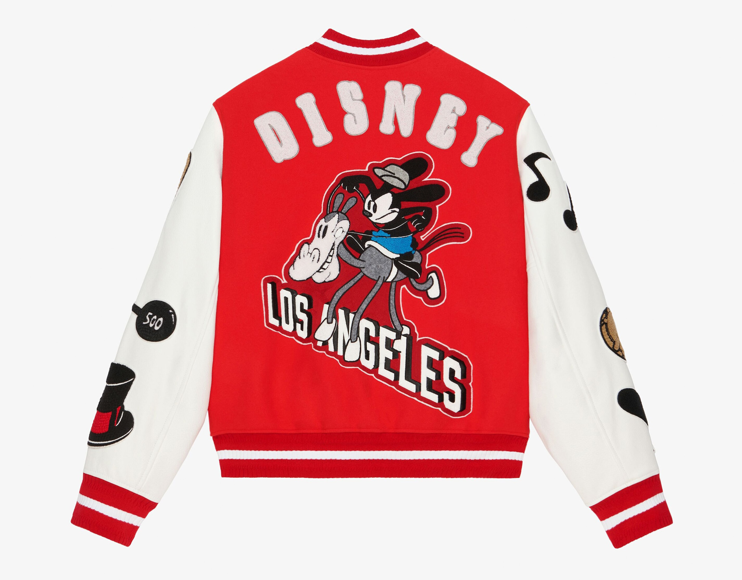 디즈니에서 가장 유명한 캐릭터 하면 미키 마우스를 빼놓을 수 없는데요. 그거 아시나요? 사실 미키 마우스의 형님 격인 캐릭터가 있답니다. 1927년 토끼해에 태어난 장난꾸러기 토끼 ‘오스왈드 더 럭키 래빗’이죠. 디즈니 설립 100주년을 기념해 지방시와 협업한 이번 컬렉션에서 오스왈드의 존재감이 만만치 않네요. 캠페인 영상 속 오스왈드는 깡총거리며 전 세계를 누비는데요. 특히 K팝 아티스트 f(x) 멤버였던 엠버 리우Amber Liu가 입고 나온 바시티 재킷이 강렬합니다. 재킷 등판과 팔뚝에 사방팔방 붙은 패치는 키치한 매력이 가득해요.