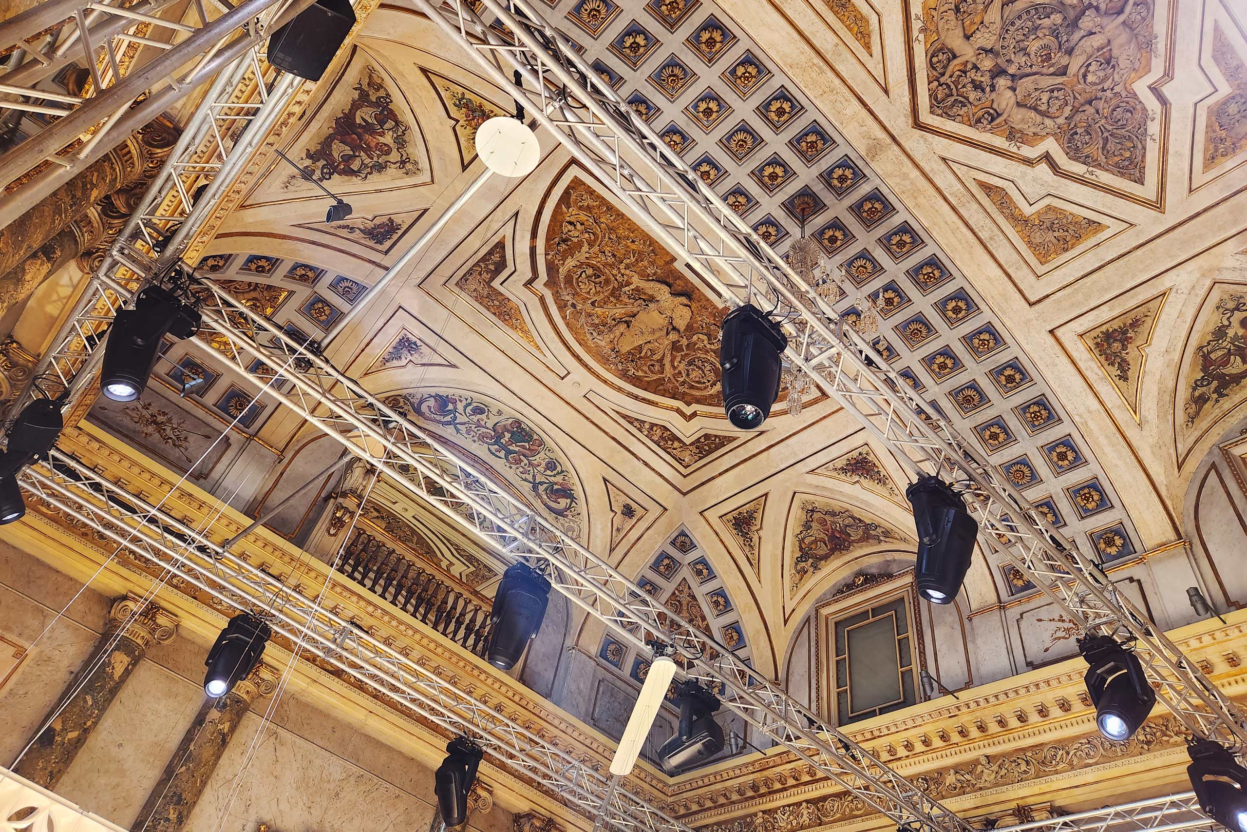 신고전주의 양식의 인테리어와 벽화가 돋보이는 장중한 팔라조 세르벨로니의 모습.