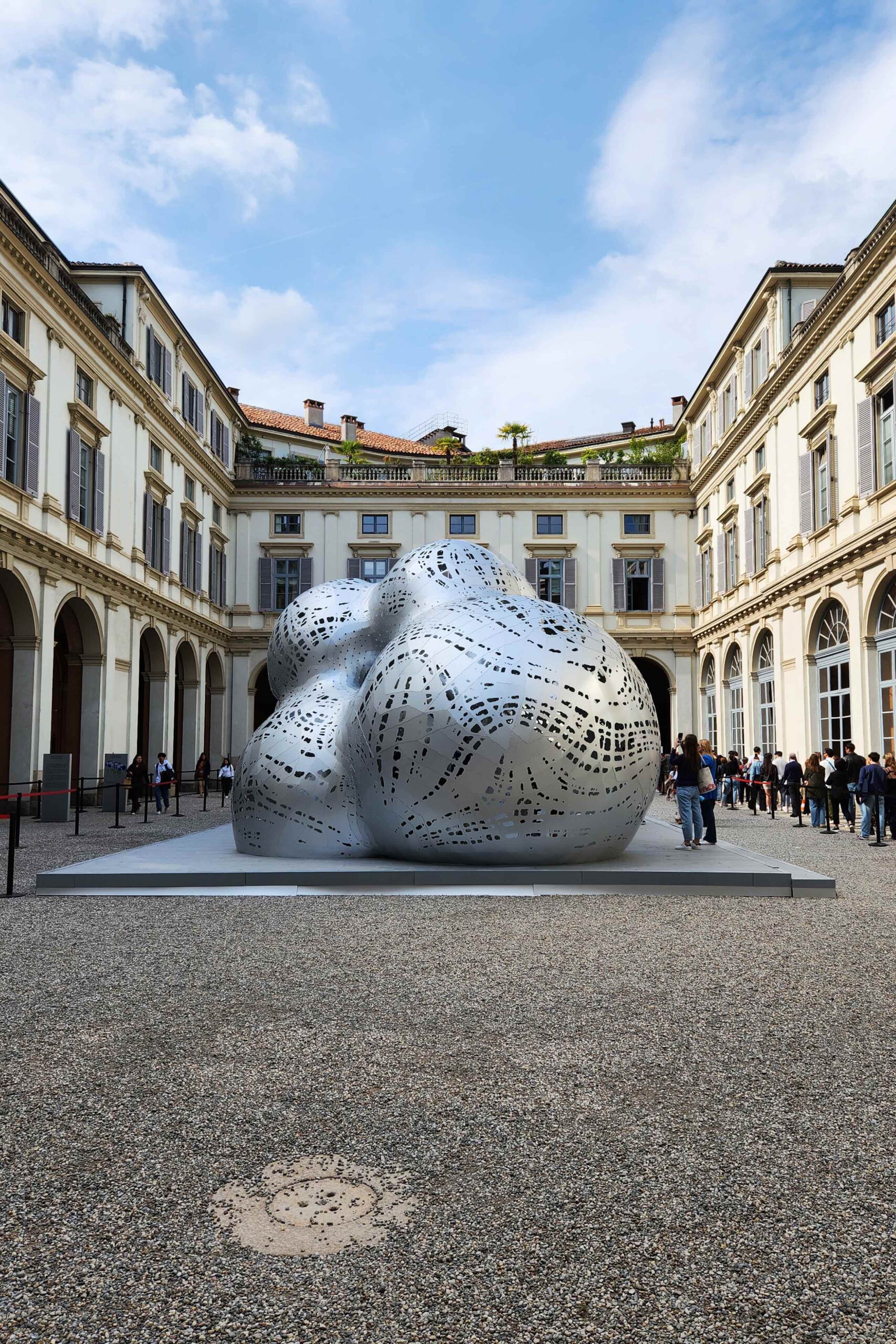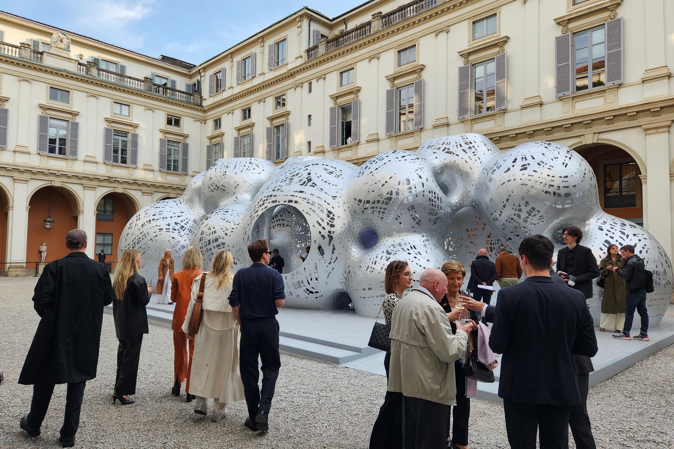 이런 어정쩡한 상황을 그냥 넘기기엔 오기가 생겼다. 나는 22일 토요일 오후 팔라조 세르벨로니를 다시 찾아갔다. ‘루이 비통 by 마크 뉴슨’, ‘루이 비통 오브제 노마드’ 현수막들이 평온하게 펄럭이는 전시장 앞에는 수많은 사람이 줄을 서고 있었다. 마크 뉴슨의 작업만 확인할 요량으로 저널리스트임을 밝혔다. 그리고 마크 뉴슨의 신작이 어디 있냐고 물었다. 중정 끝에 있단다. 무슨 말인가 싶어서 걸어가 보니 화요일에는 닫혀있던 외부 통로가 존재했다. 마치 비밀의 정원처럼 보이는 곳으로 들어가려는 나를 경비원이 제지했다. “안녕하세요. 저는 저널리스트인데, 마크 뉴슨의 작업을 보려고 해요.” 그는 이렇게 말했다. “여기는 오직 루이 비통 스태프만 출입할 수 있습니다.” 마크 뉴슨과 밀라노 디자인 위크 글자를 함께 인쇄한 현수막을 건물에 저리 크게 걸어놓고 스태프 전용 출입이라니? 그때부터 난 루이 비통 스카프와 배지를 착용한 사람이 보일 때마다 말을 걸었다. “마크 뉴슨의 새로운 작업은 어떻게 해야 볼 수 있나요?” 제각기 다른 대답이 나왔다. “당신은 못 봐요”, “미안해요. 저는 다른 부티크에서 나와서 여기 사정을 전혀 몰라요.”, “고객님이랑 얘기해야 하니 다른 사람에게 물어보세요.”