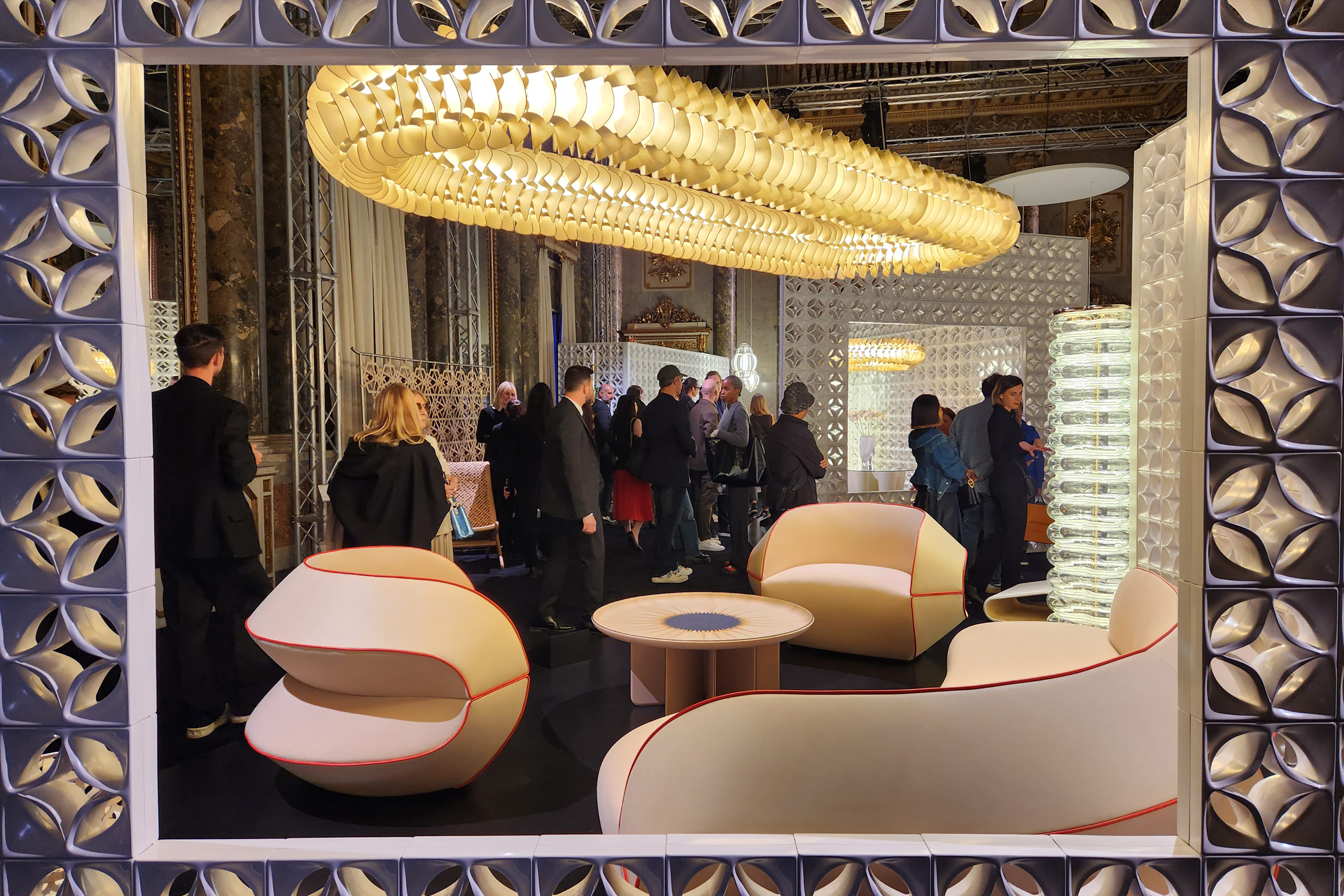 푸오리 살로네에서 화제가 되는 브랜드 중 루이 비통을 빼놓을 수 없다. 2016년 이래 지속적으로 밀라노 디자인 위크 기간에 맞춰 호화롭고 기념비적인 장소를 골라 그들의 컬렉션을 공개해 왔다. 옷, 가방, 신발 등 루이 비통의 주된 상품이 주인공은 아니다. 가구의 성지인 밀라노이지 않은가! 루이 비통은 지난 2012년 ‘오브제 노마드Objets Nomades’ 컬렉션을 론칭했다. 브랜드의 오랜 철학인 ‘여행 예술’에 초점을 맞춰 세계 유수의 스타 디자이너와 협업한 가구 및 라이프스타일 제품이다. 첫 공개 장소로 컬렉터블 디자인 페어의 대표 주자인 ‘디자인 마이애미/’를 선택할 정도로 브랜드의 철학, 참여하는 디자이너의 이름값, 작업 자체가 지닌 예술적인 조형성, 이를 구현한 자사의 장인 정신을 고루 강조하는 모습을 보였다.