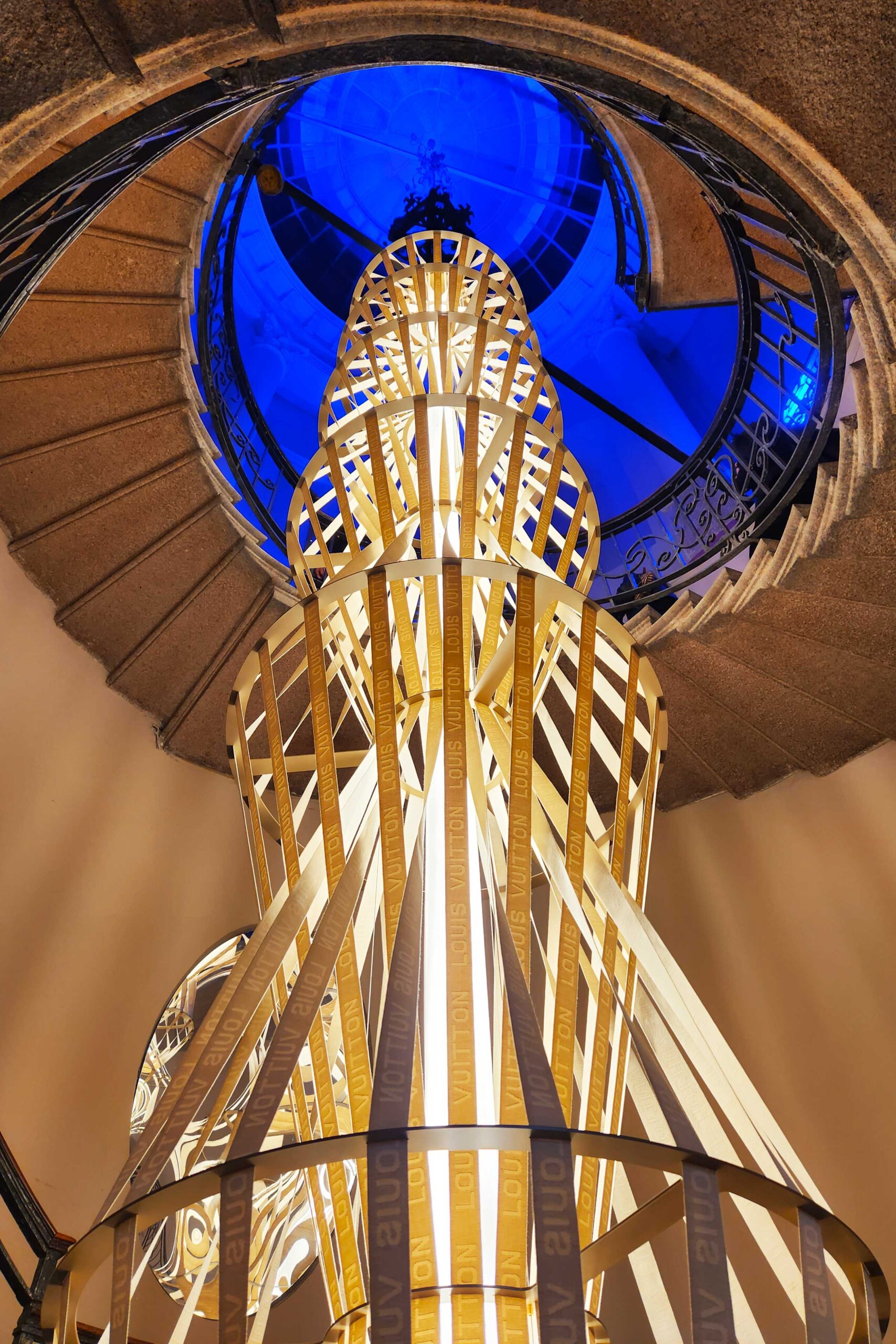 우아한 소용돌이 계단을 오르며 입구에 가려는데, 계단 가운데 빈 공간에 길게 늘어진 거대한 샹들리에가 무척 독특한 게 아닌가. 내 호기심 버튼을 누른 샹들리에의 정체가 궁금해서 근처에 서 있던 루이 비통 스태프에게 물어봤다. “이건 누구 작업인가요?” 루이 비통 특유의 깐깐한 말투를 상상하던 나는 답변을 듣자마자 자동으로 잔기침이 나오기 시작했다. “I don’t know.” 럭셔리 브랜드에서 외부인을 응대할 때 부정적인 표현을 쓰던가? 특히나 브랜드 이미지를 결벽적으로 관리하는 루이 비통이라면 더더욱 불가능에 가까운 행동이다. 브랜드가 주최하는 행사에 존재하는 스태프는 곧 그 브랜드의 얼굴이자 브랜드 자체로 치환되기 마련이고, 이는 모든 브랜드 운영의 상식 아니던가. 손님의 안전을 돕는 경호원이라면 이해할 수 있겠다고 생각하면서도, 루이 비통이라면 분명 따로 언질을 주었을 거라는 의아함이 교차했다.