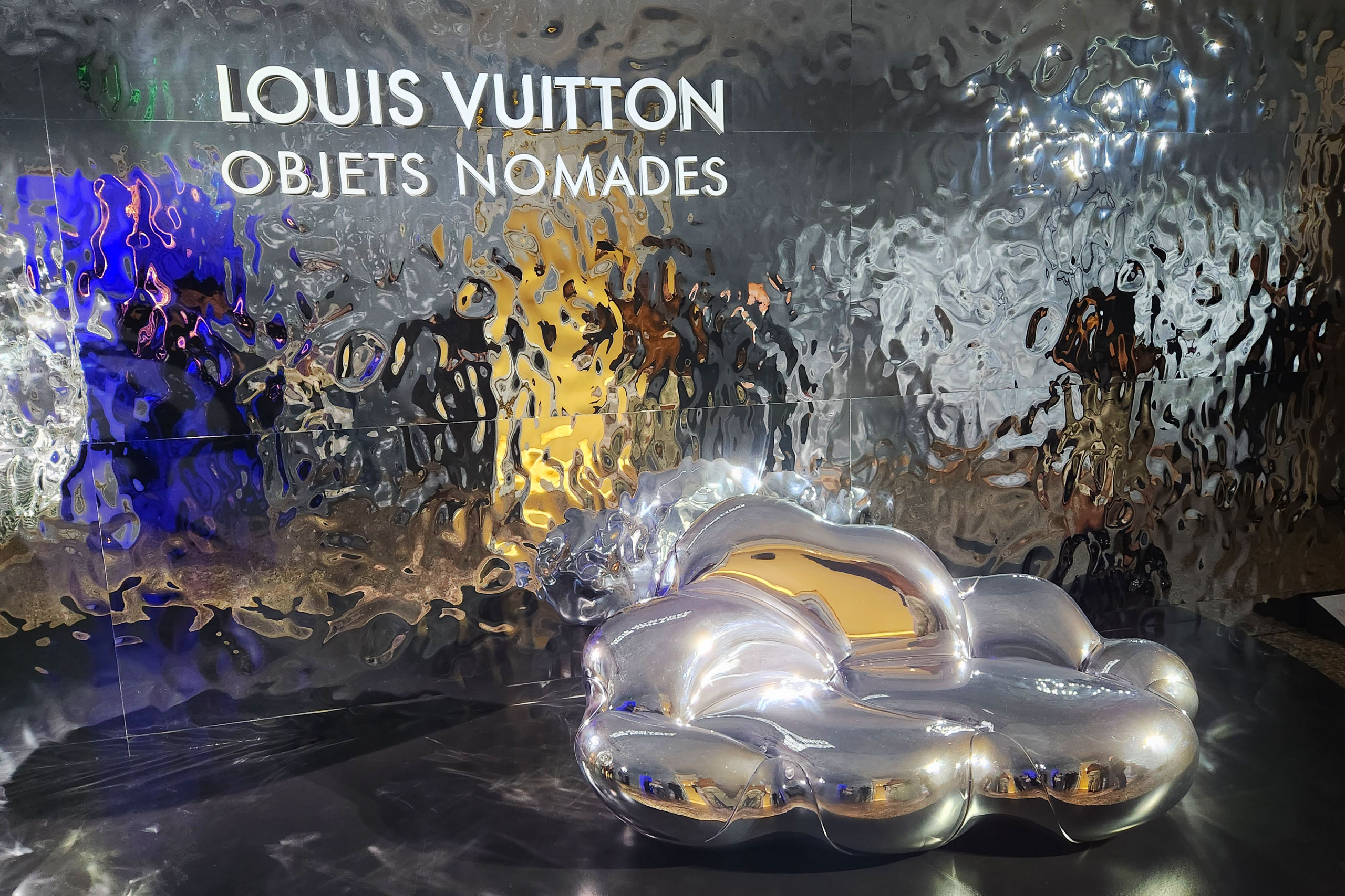 전시장 입구는 아주 화려했다. 루이 비통 오브제 노마드란 전시명 앞에는 이번 행사를 위한 특별판 두 점이 전시대에 올랐다. 브라질의 캄파냐 형제Campana Brothers가 예전에 만들었던 봄보카Bomboca 소파를 매끈한 금속 재질로 바꾸었고, 유명한 코쿤Cocoon 체어는 번쩍거리는 디스크 볼처럼 장식한 채로 제자리에서 끝없이 회전하고 있었다. 화려한 변신이 반가워서 입구에 서 있던 스태프에게 물었다. “이 작업들, 캄파냐 형제의 작업이 맞죠?” 그러자 이윽고 돌아온 대답은 바로 “No”. 응? 몇 시간 전에 캄파냐 형제의 특별판 기사를 읽었는데 이게 그게 아니라고? 나는 그에게 다시 말했다. “그럼, 누구 작업이에요?” 그는 전시대 앞으로 가서 시선을 아래로 내렸다. 그러고는 패널을 확인하며 이렇게 말했다. “캄파냐 형제요.”
