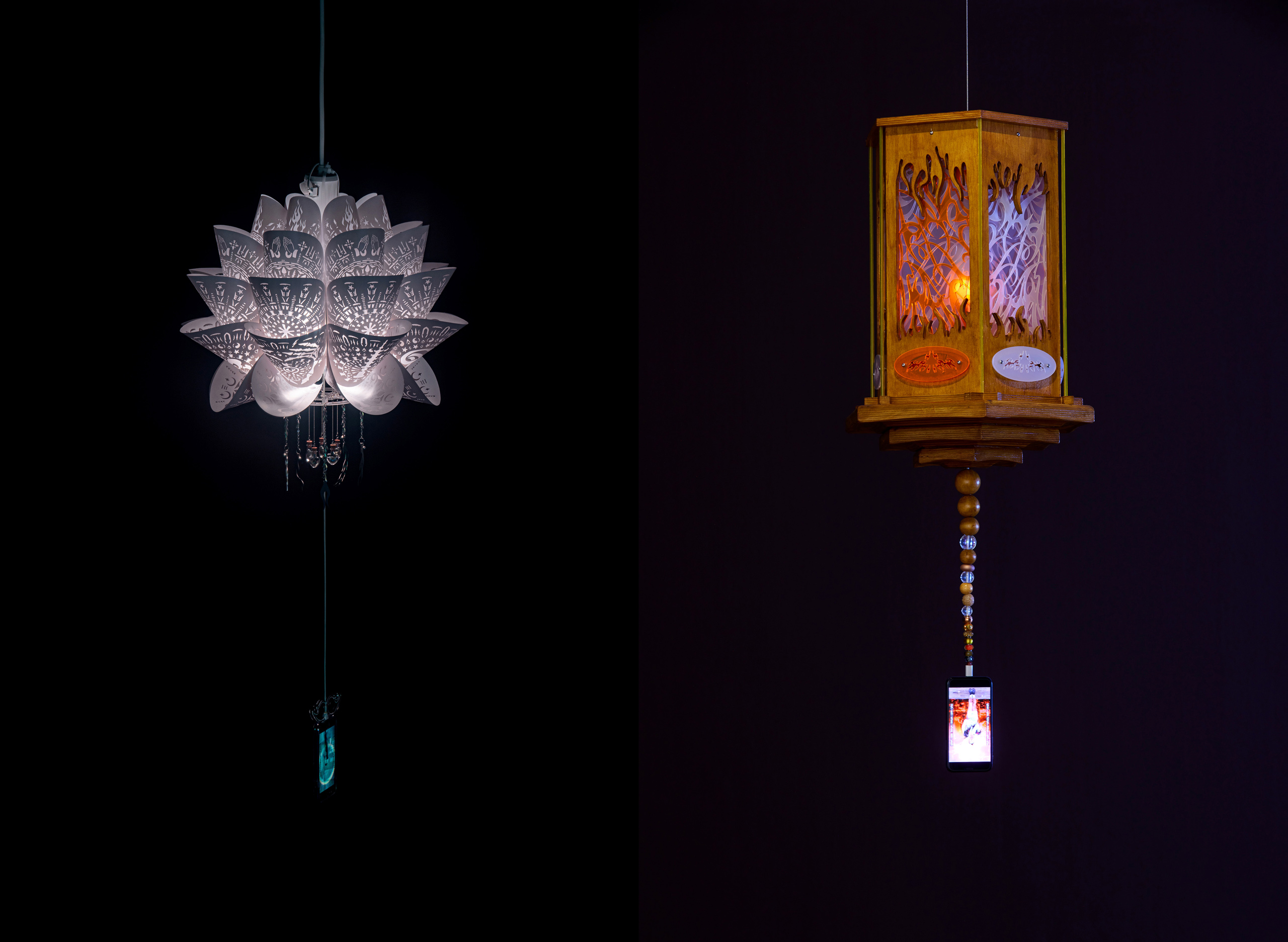 ‹As If You re Dreaming›, 2022, wood, acrylic, light, mixed media, iPhone(single channel video, looped) (우)