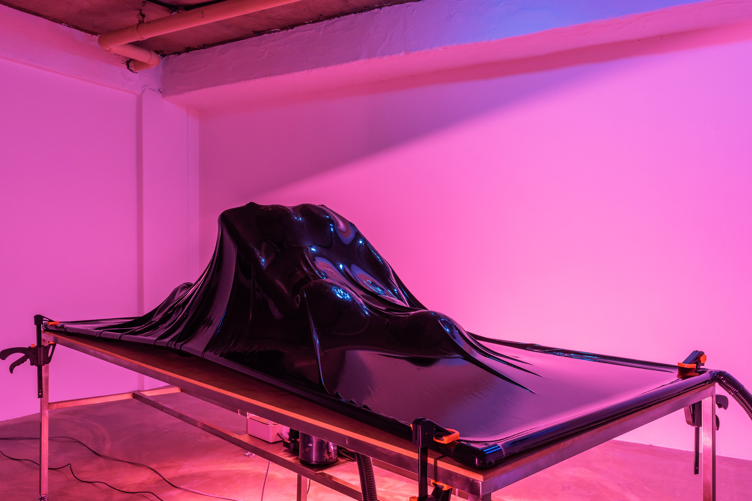 ‹The Object›, 2020, latex sheet, stainless steel, vacuum machine, 220×100×130 cm