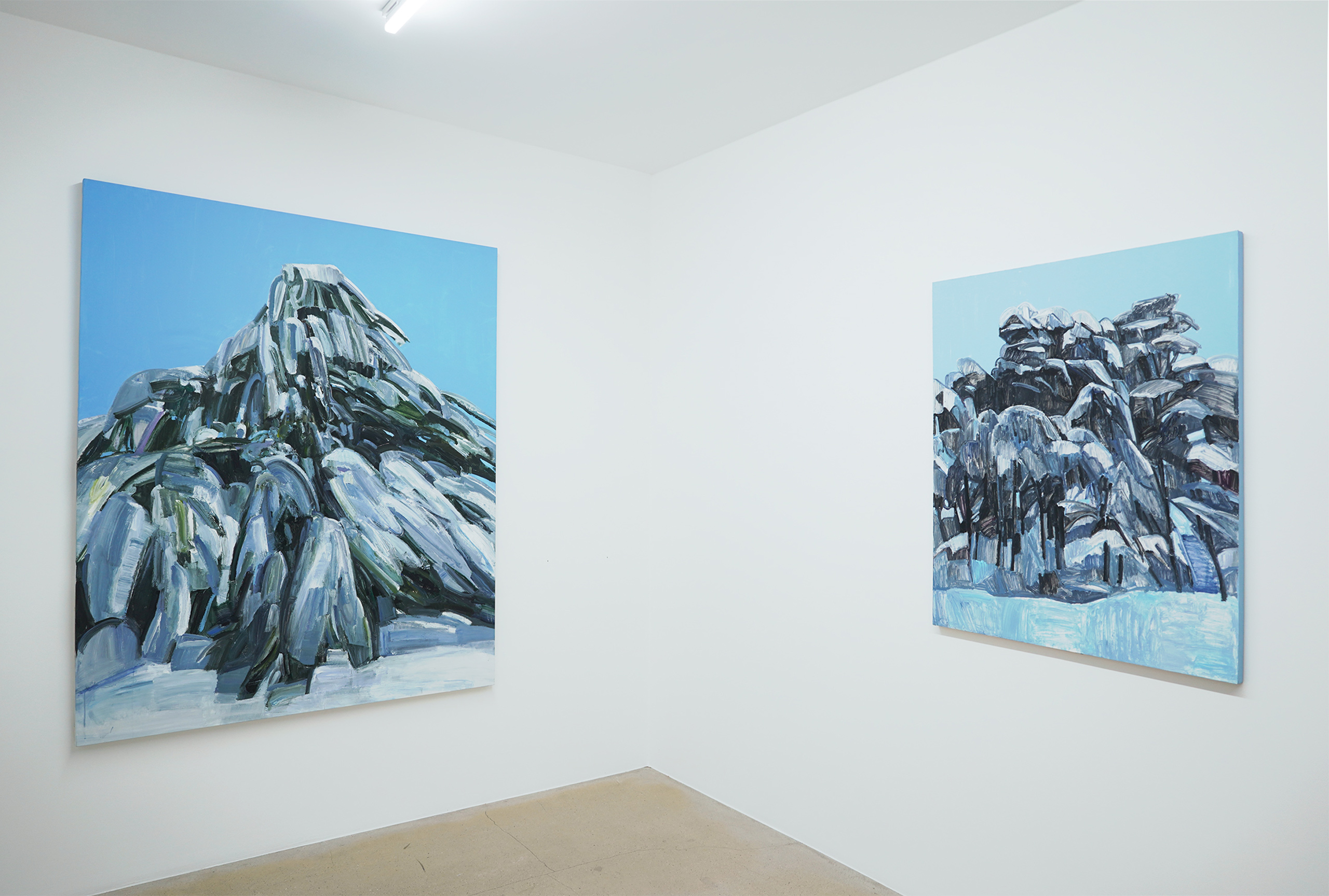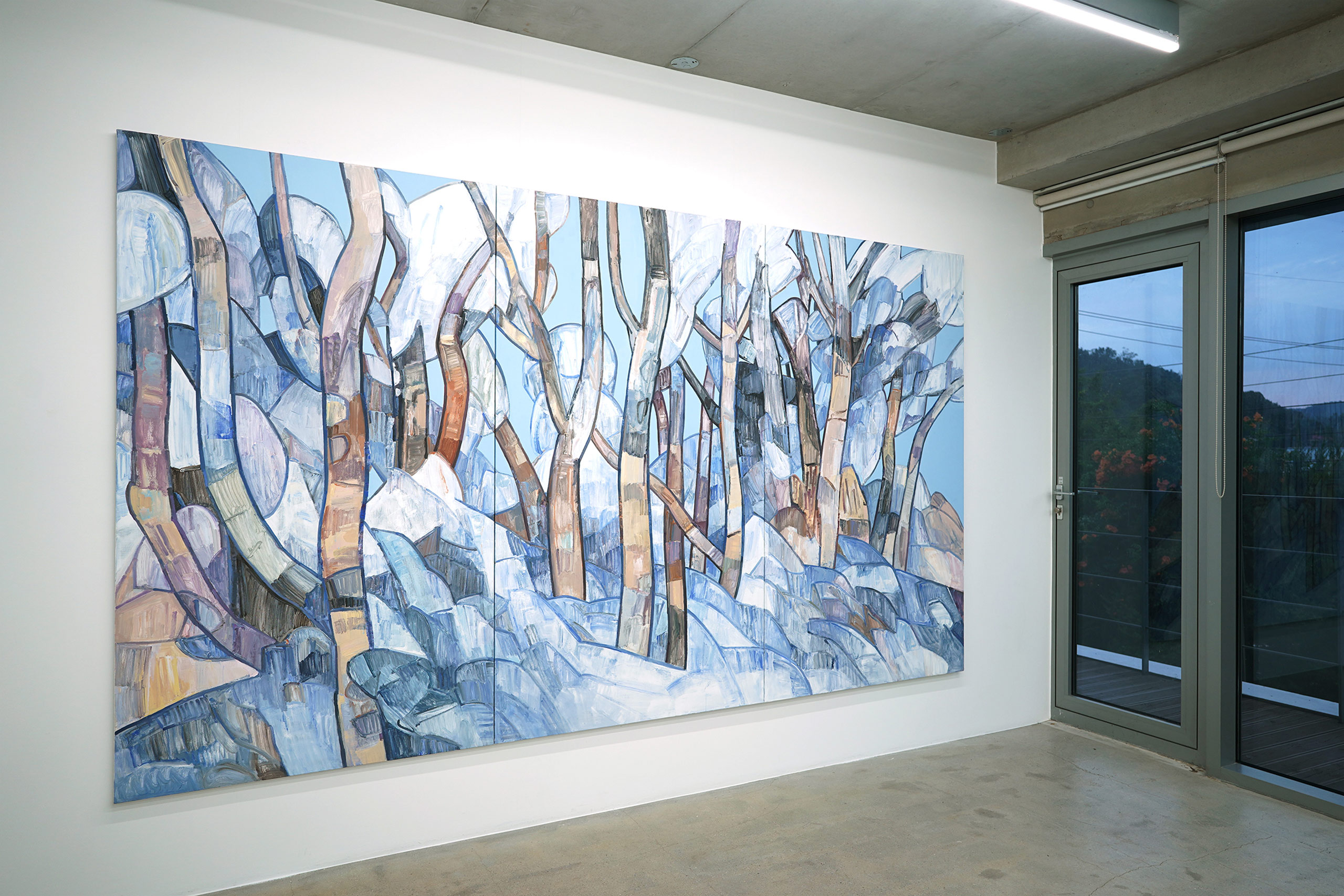 지난 2~3년은 주로 부피감 있는 대상의 닮은 꼴을 따라가며, 대상의 ‘닮음’과 ‘다름’에 대해서 고민했어요. 2022년 여름에는 스코틀랜드의 한 레지던시에 머물면서 관찰한 수풀을 그렸고, 한국에 돌아와서는 강릉과 안산의 바위와 눈 쌓인 나무들을 그렸습니다. 이런 시간을 통해 세 가지 형태 안에 연결되는 지점을 찾고 형상을 마주하는 개인전 «Three Shapes»를 준비하게 되었어요.