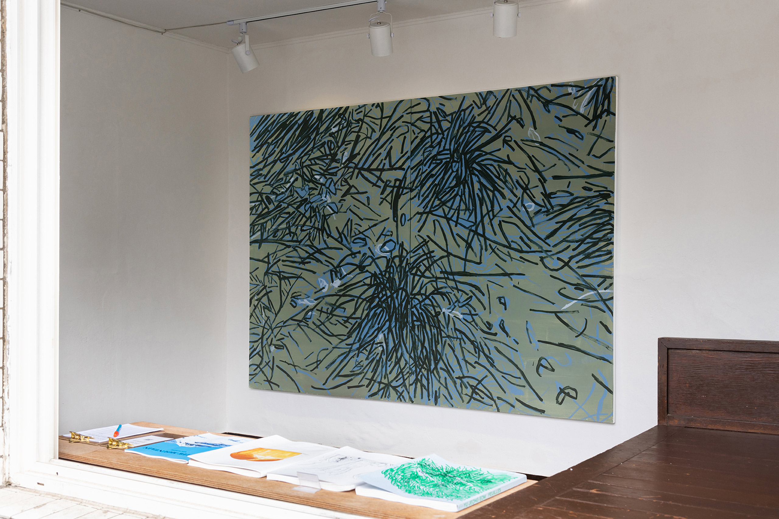 ‹Bush Shape›, 2023, gouache and acrylic on canvas, 194×130cm © 엄유정
