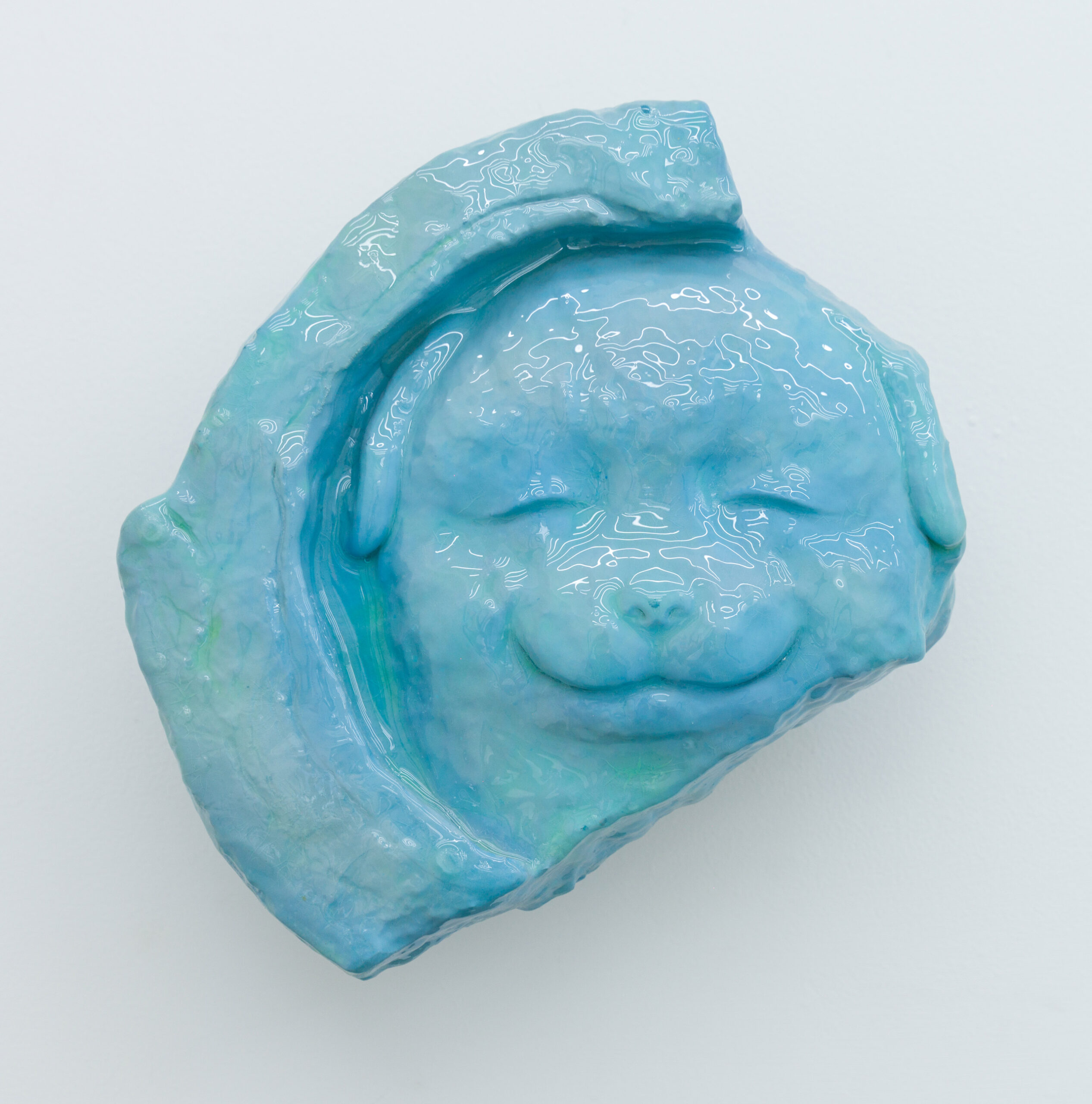‹He answered me with smile 영원한 미소, Big Blue ver.›, 2023, acrylic and epoxy on resin with magnet, 18.5×18×4.5 cm