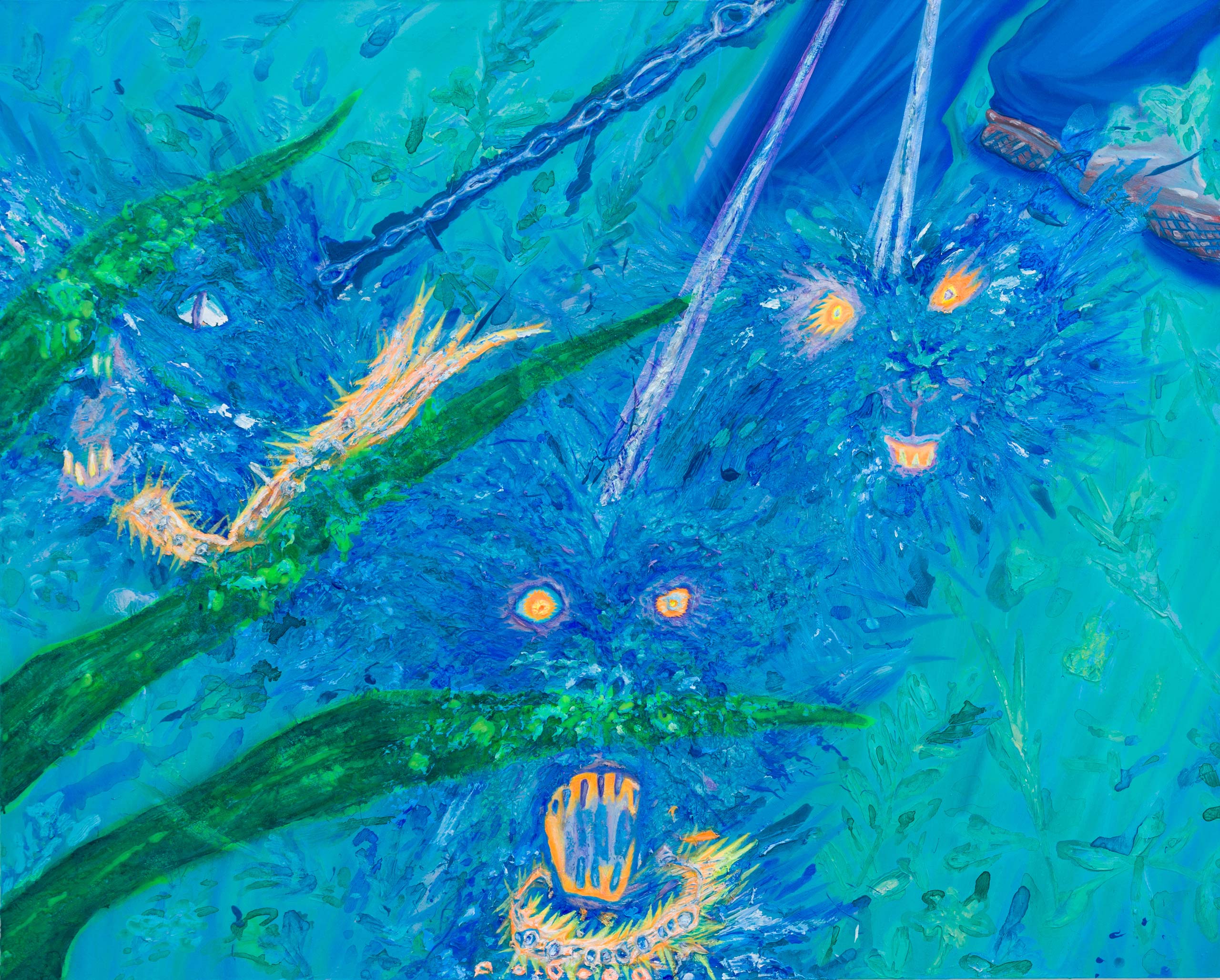 ‹The Cerberus I Met›, 2023, acrylic and acrylic medium on canvas, 130×162 cm