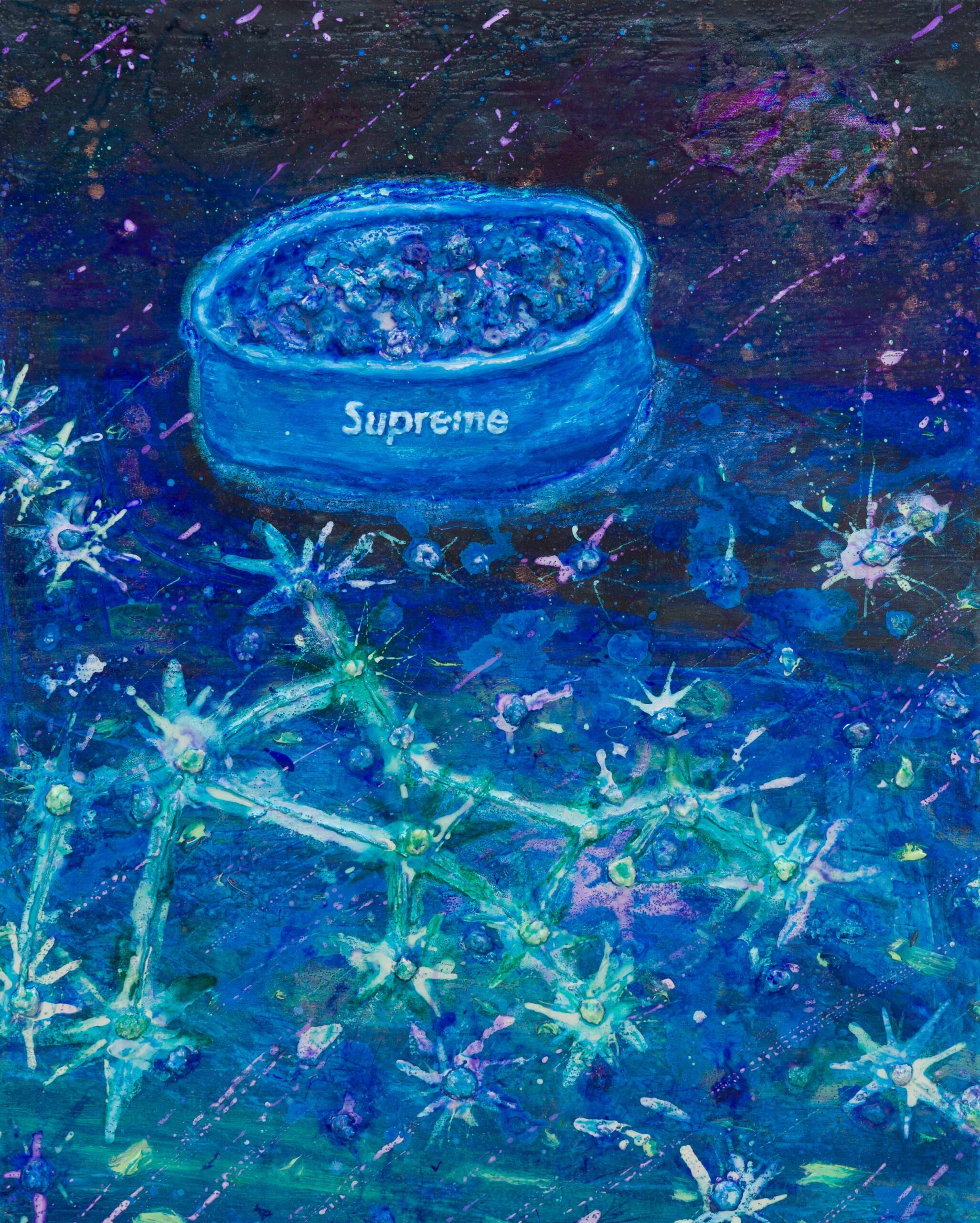 지난 8월 디스위켄드룸에서 개인전 «End of Summer»를 열었어요. 전시에 선보인 작업들의 출발점은 반려견들과 함께한 일상 속 풍경이었어요. 매일 아침이면 그릇에 사료를 채워놓고, 그 앞에 앉아서 반려견들이 사료 먹는 모습을 쳐다보는데요. 먹다 흘리고 남긴 사료들을 멀리서 바라보니, 마치 별자리처럼 보이더라고요. 그 별자리를 눈으로 쳐다보고, 손으로 쓸어 담으면서 오늘의 운세를 가늠해 보거나 미처 찾지 못한 사랑의 운명을 점치곤 했어요. 마치 타로 보는 것처럼요. 그러다 오리온의 개였던 ‘시리우스Sirius’가 떠올랐습니다. 시리우스는 바다의 신 포세이돈의 아들이자 사냥꾼인 오리온을 수호하는 존재인데요. 우리가 별들 아래서 꿈꾸며 잠든 사이에도, 다정함과 따뜻함을 지닌 채 서로 함께하는 모습이 그려졌어요. 그리고 해가 뜨면 우리는 그들과 함께 새로운 여정을 떠나는 것이 아닐까 생각했죠. 우리들의 발걸음에 맞춰 걷기도 하고, 그들이 이끌며 안내하는 미지의 항로를 따라 거닐기도 하면서요. 그들과 함께 떠나는 여정을 풀어낸 작품들을 선보이고 싶었어요. 그 중 ‹Supreme›은 일상을 예견하는 신비로운 점괘이자 미지의 풍경으로 진입하는 통로 역할을 하는 작품이에요.