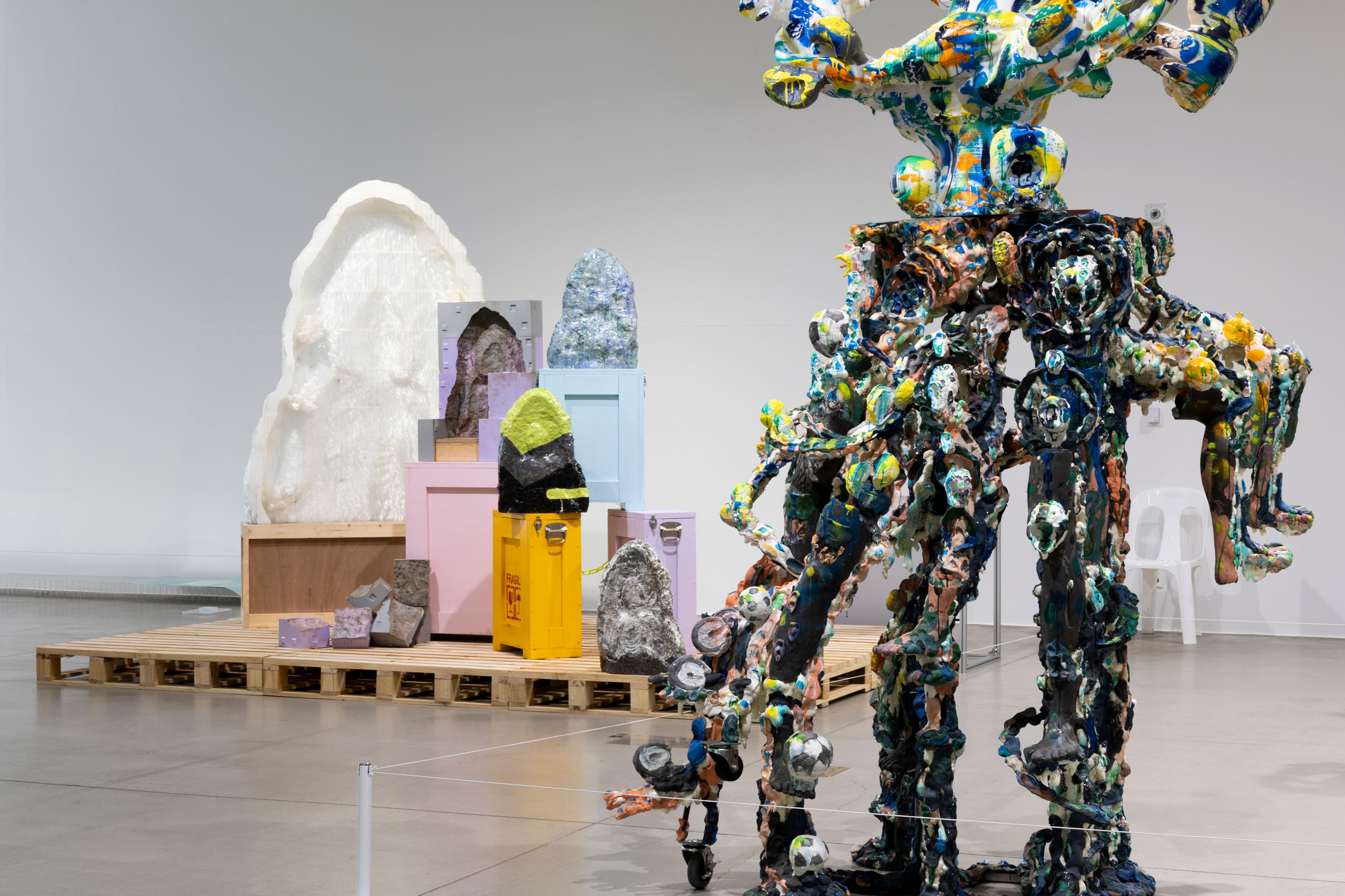 미술관 1층과 2층 공간 모두를 대범하게 활용한 전시는 다양성이 넘친다. 오귀스트 로댕의 ‹지옥의 문›을 재해석해 조각 그 자체에 대해 탐구한 작품, 작가의 신체 경험을 기반으로 만든 작품, 노동자 간의 연대를 꿈꾸는 작품 등 주제 의식부터 다채롭다. 재료와 표현도 각기 다른 개성을 드러낸다. 나무를 깎고 다듬는 전통적인 방식은 물론, 이케아 테이블과 우레탄 폼을 활용하고, 더 나아가 가상 세계에서 데이터 조각을 모아 3D로 표현하며 기어이 우리에게 질문을 던진다. “조각이란 무엇일까? 그리고 조각이란 무엇일 수 있을까?”