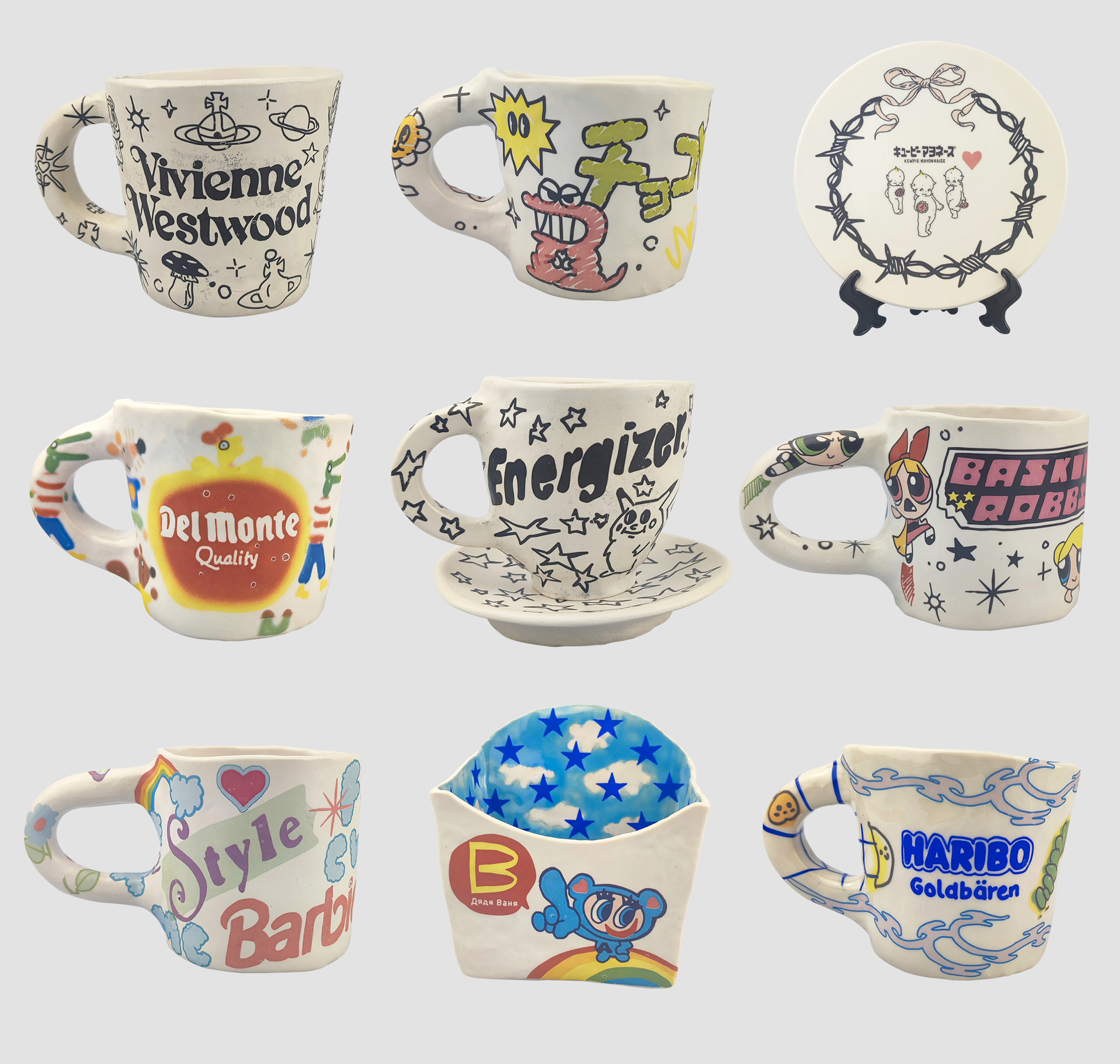 예상치 못한 조합을 상상하며 영감을 얻는 것 같아요. 예를 들어, 샤넬이나 루이 비통 옷이 놓인 테이블 위에 갑자기 치토스 과자 봉지가 함께 있는 상상을 해보는 거죠. 그렇게 어울리지 않을 느낌의 대상이 서로 묶일 때 발생하는 유머가 있다고 생각해요. 그래서 저희는 보통 작업에 대형 브랜드의 로고와 어린 시절 가지고 놀았던 물건, 애니메이션이나 동화책의 주인공을 함께 섞어봅니다. 여기에 못생겼다고 여겨지는, 혹은 키치하다고 생각하는 대상 중 우리에게 영향 준 것을 함께 조합하며 디자인을 완성해요. 한 마디로, 보통의 맥락에서 벗어난 이미지를 만들고, 이를 세라믹 오브제에 녹여내어 한 차원 다른 분위기로 승화시키는 건데요. 그렇게 유머러스한 행로를 따라 작업을 지속해서 그런지, 언제나 창작이 즐거웠던 것 같아요. 좋은 재료를 배합해 도자기를 굽는 과정도 만족스럽고요.
