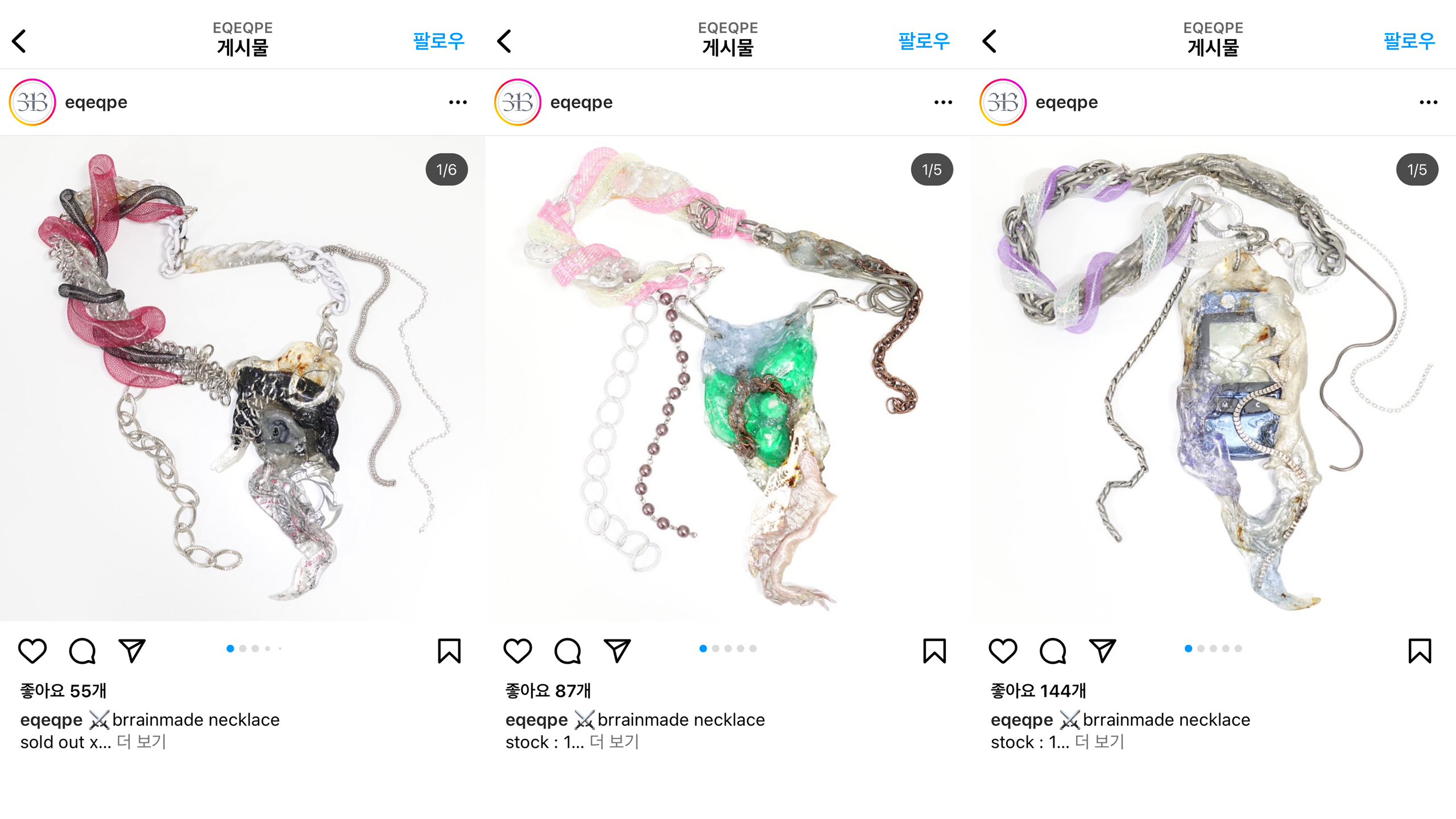 박다솜이 운영하는 eqeqpe는 ‘Brain-Made Jewelry’라는 콘셉트로 전개하는 국내 몇 안 되는 아트웨어 브랜드다. 2018년 설립해 초창기에는 다수의 국내 매거진 인터뷰와 협찬으로 인지도를 쌓기 시작했고, 현재 해외의 트렌디한 셀렉샵에 입점해 입지를 높이고 있다. 얼마 전 작가 goyoson, cifika와 함께 가상 세계를 콘셉트로 아트웨어 전시 «planitia»를 치렀고, 이후 국내 패션 브랜드인 MSCHF와 함께 팝업 행사를 협업하는 등 국내 활동을 늘리고 있다.
