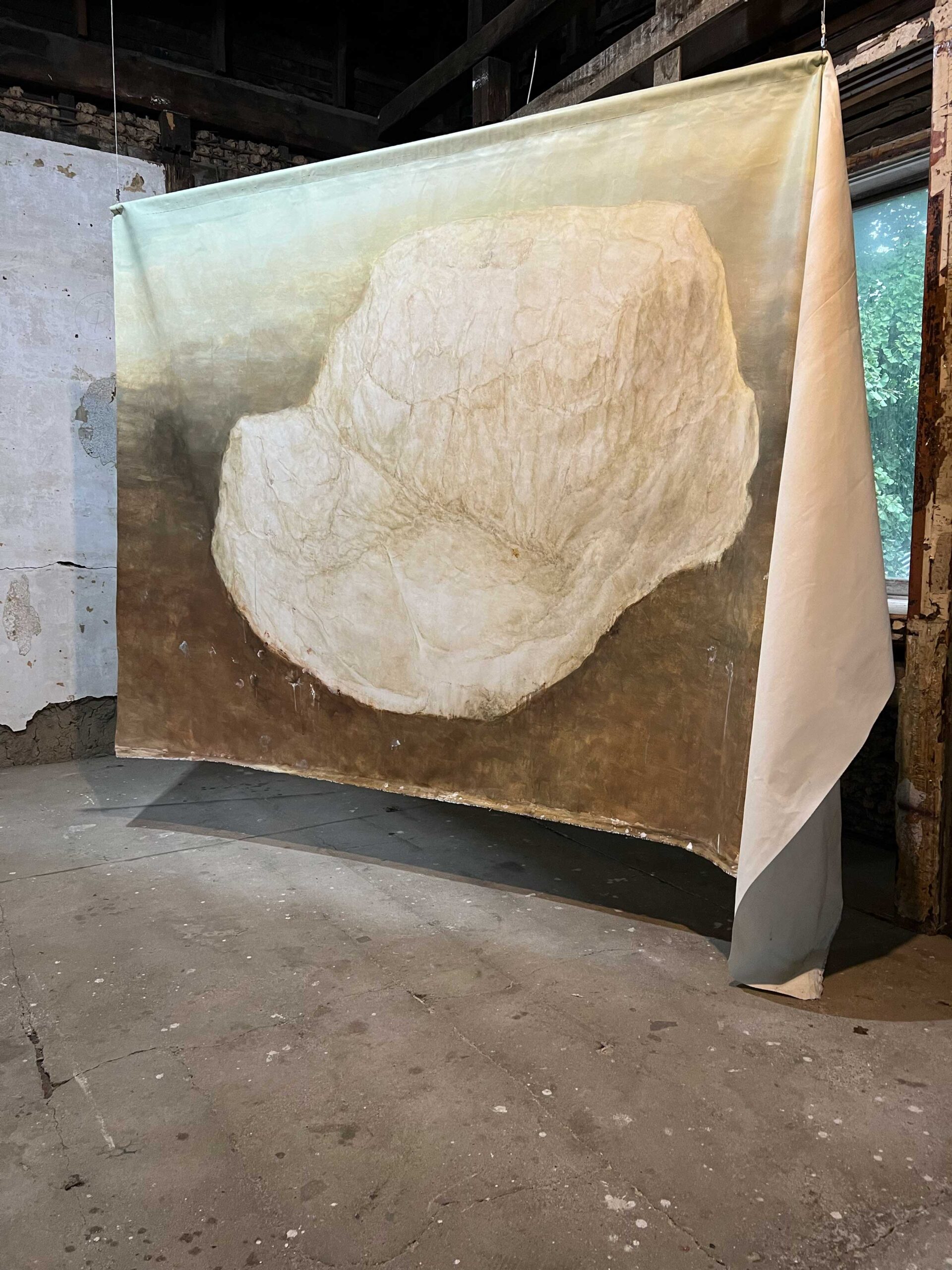 ‹바깥›, 2018, 면천 위에 아크릴, 182×226cm