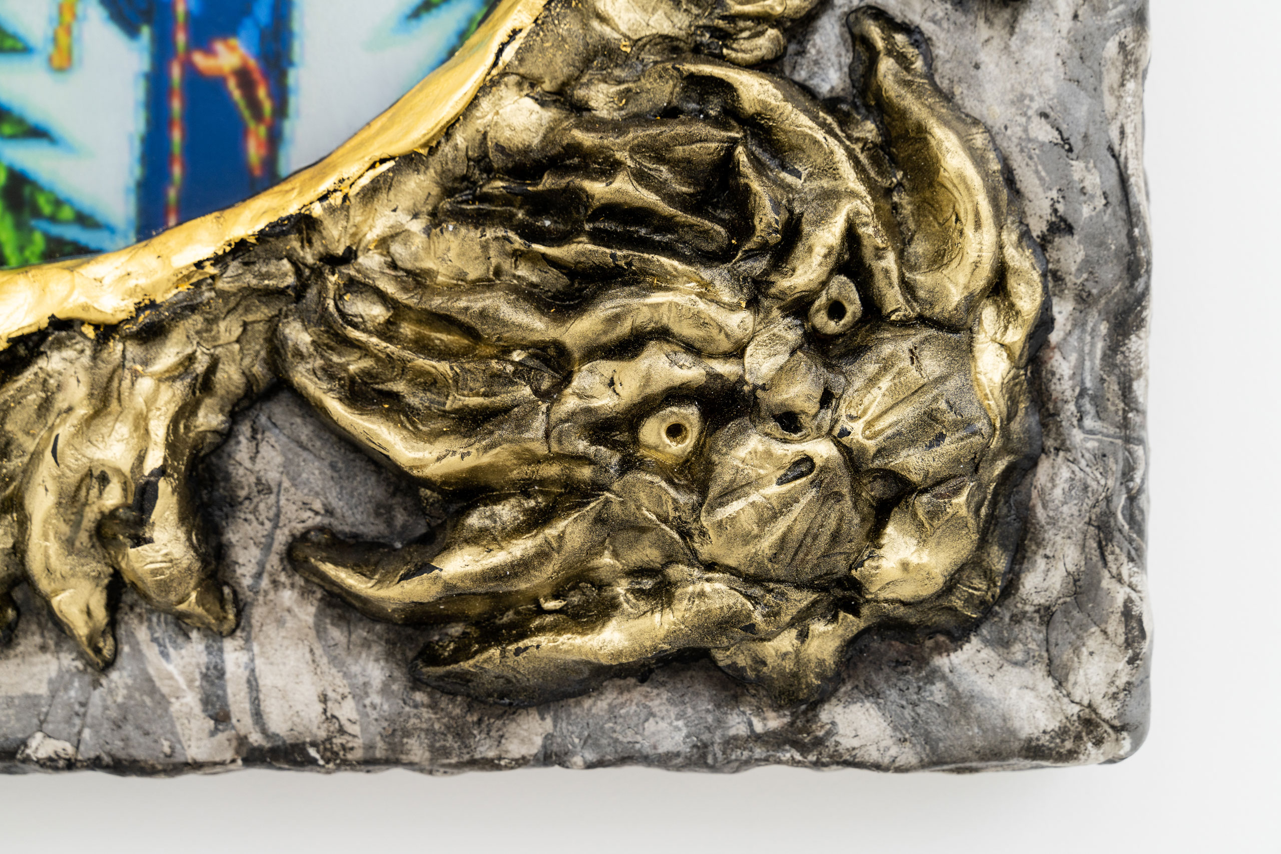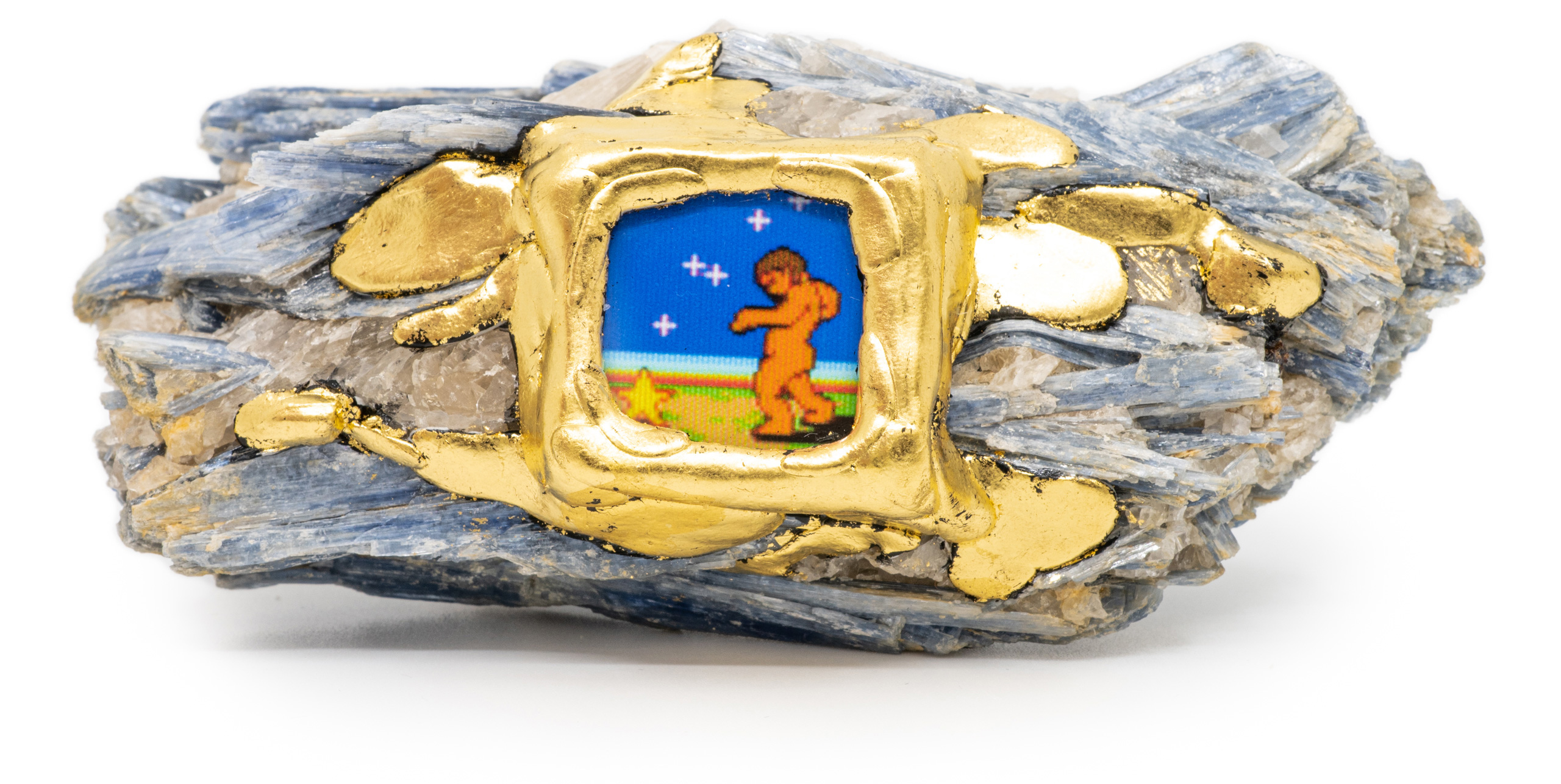 최근에는 돌을 이용해 작업을 진행했어요. 신비한 도상과 서사에 관심이 많기 때문에 이런 도상을 현실에 구현하는 방법에 대해 고민을 하고 있습니다. 자연스레 비슷한 구조를 띤 종교 미술이나 주술적 오브제 등에 관심을 두게 되었는데요. 어느 날 박물관에 갔는데 석기시대의 유물들, 특히 돌을 나열한 모습을 보고 돌에 이미지를 부착하는 작업을 구상했어요. 자연물인 돌은 형태가 비정형이기에 시각 이미지를 창작하는 입장에서 조형에 대한 부담감을 덜어주기도 했습니다. 처음부터 작업의 모든 형상을 구상하지 않고 돌의 형태에 덧붙이며 시작할 수 있기 때문이죠.