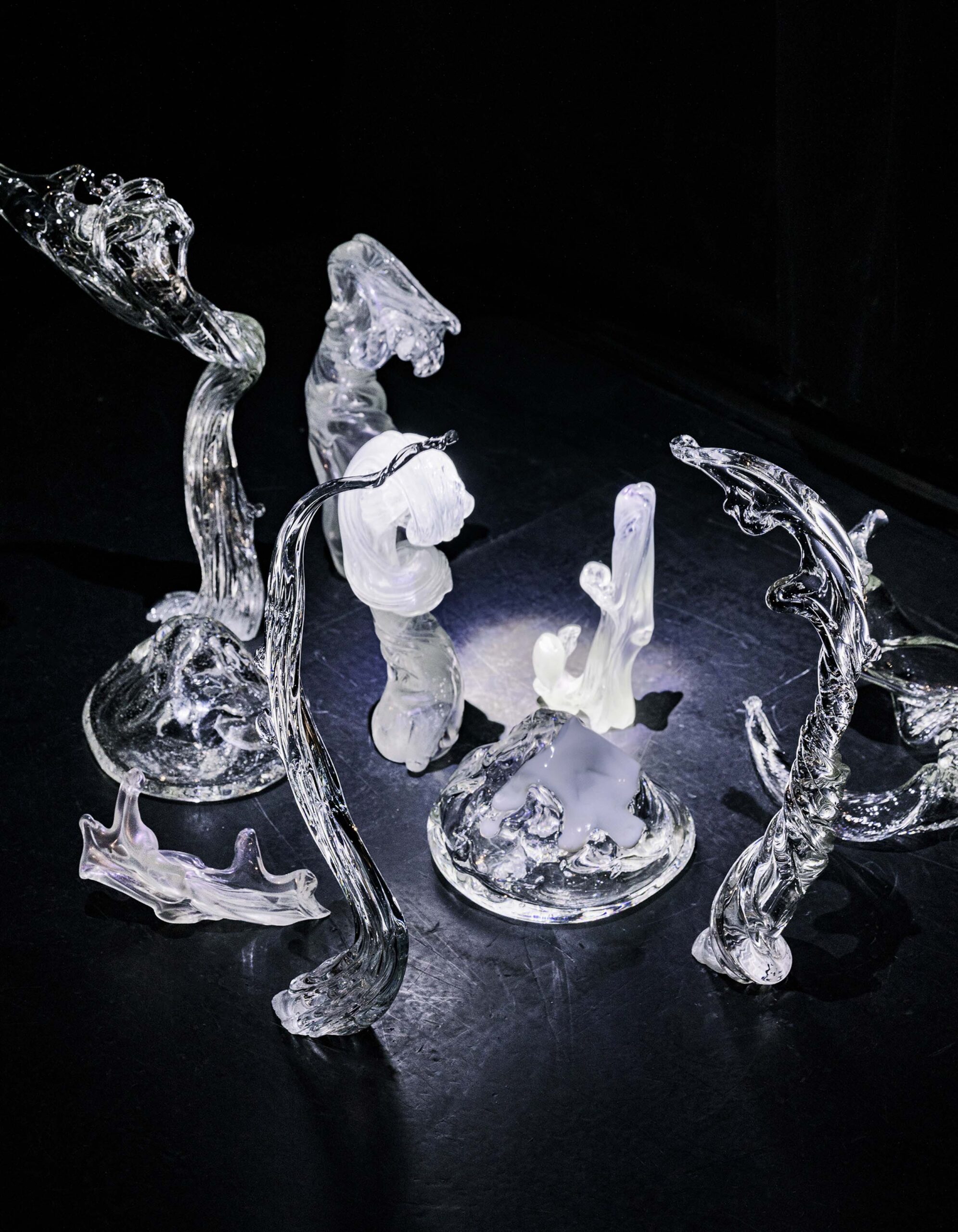 지난해 12월에 개인전을 열었어요. 글로리홀이 아닌 박혜인이 주인공인 첫 개인전이었기에 제게 뜻깊었죠. 유리의 형상을 만드는 사람으로서 어떤 현상을 만들어낼지 언제나 늘 고민하는데요. 저는 이를 두고 ‘어떤 형상을 액체에서 꺼내올까?’라고 표현하곤 해요. 유리의 형상을 만든다는 행위 자체가 개념이 될 수 있을지 고민하는 과정에서 치렀던 전시였답니다. 지질학의 역사를 리서치하는 과정에서 과거 17세기 사람들이 화석을 두고 살아있던 생명체의 흔적이 아니라, 땅속에서 자란 광물이라 생각했던 사실에서 착안해 화석과 유리를 연결하여 자연사박물관의 형태로 보여주고 싶었어요. 더불어 요즘 제가 만들었던 조명 중 하나인 ‹Ghost Casper›의 양산화를 준비하고 있어요. ‘Kolamp’라는 국내 조명회사와 협업하며 그 이름도 ‘Ghost Jellyfish’로 바꾸었죠. 제가 만든 유리의 금형을 뜨고 여기에서 만들어진 유리를 보니 감회가 남달랐어요. 제가 직접 손대지 않은 유리 작업은 처음이거든요. 봄 출시를 목표로 준비하고 있으니 기대해주세요!