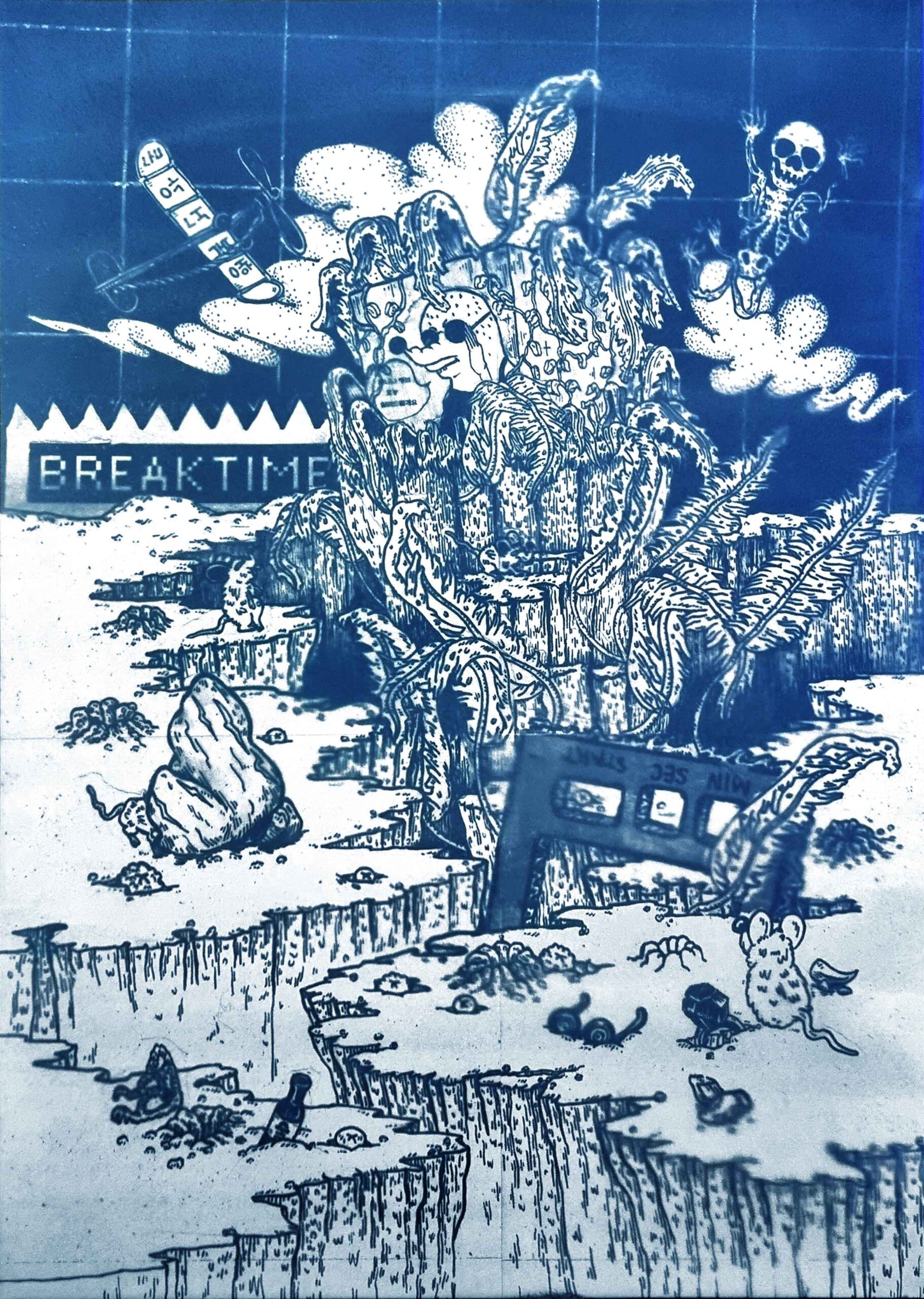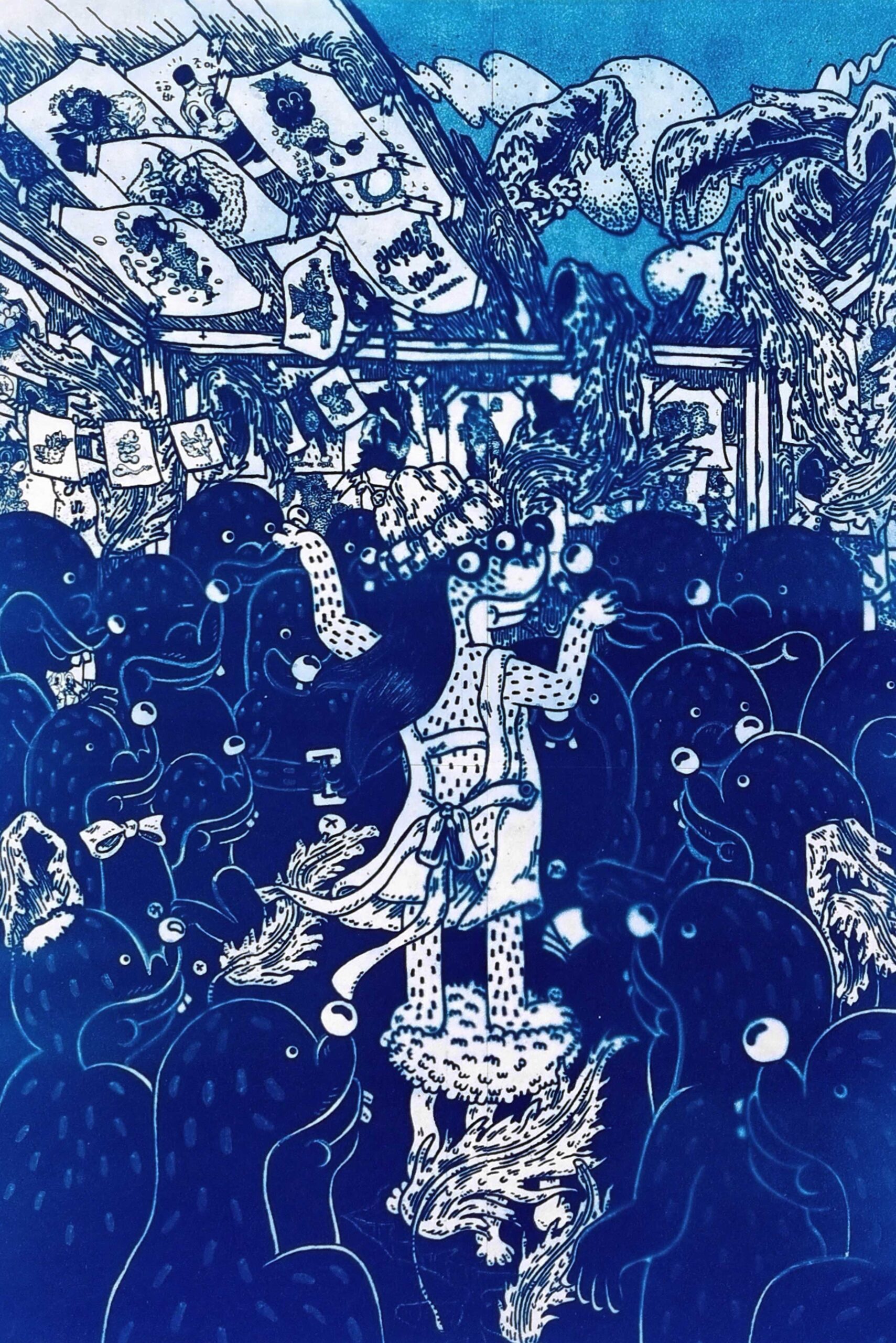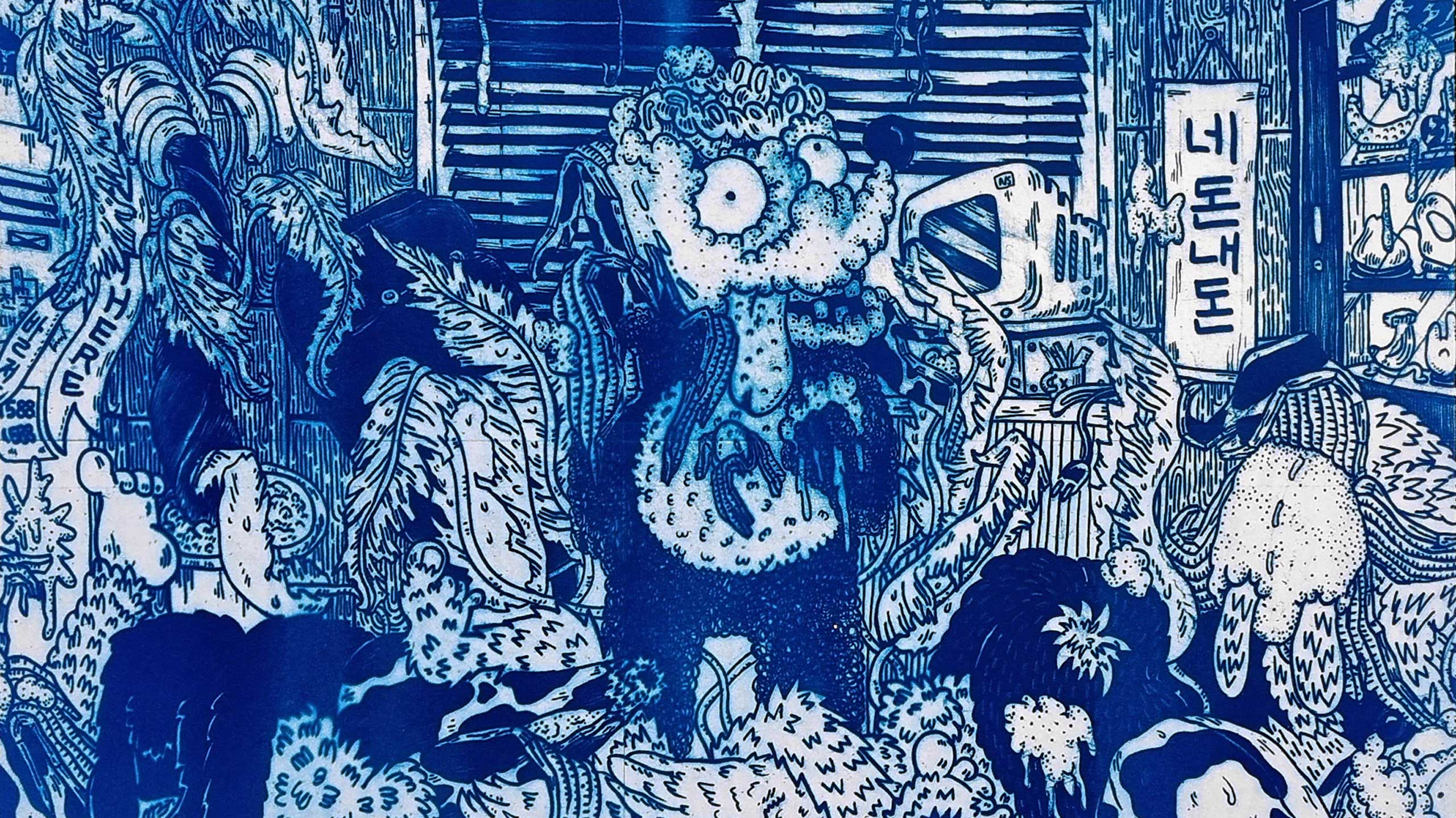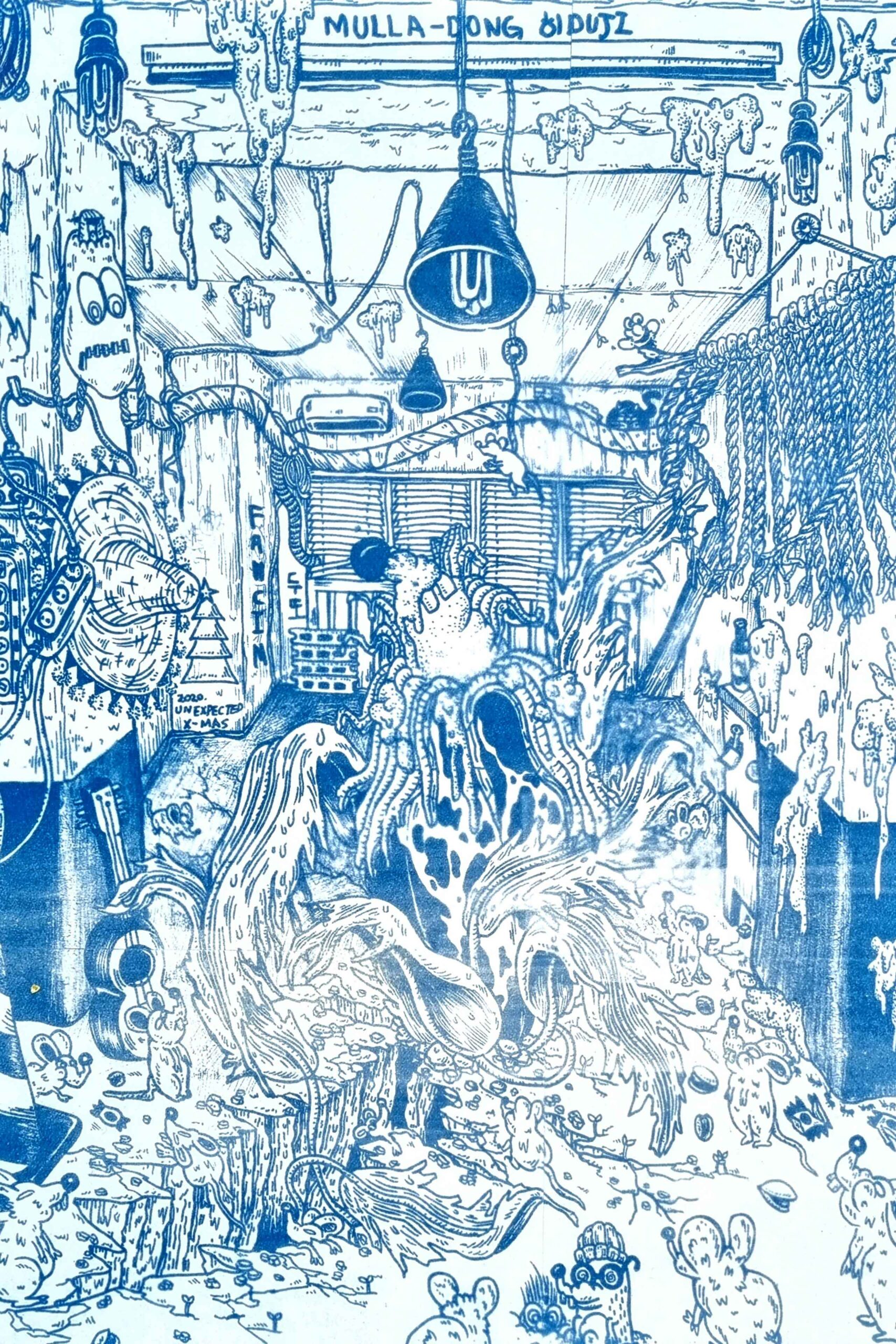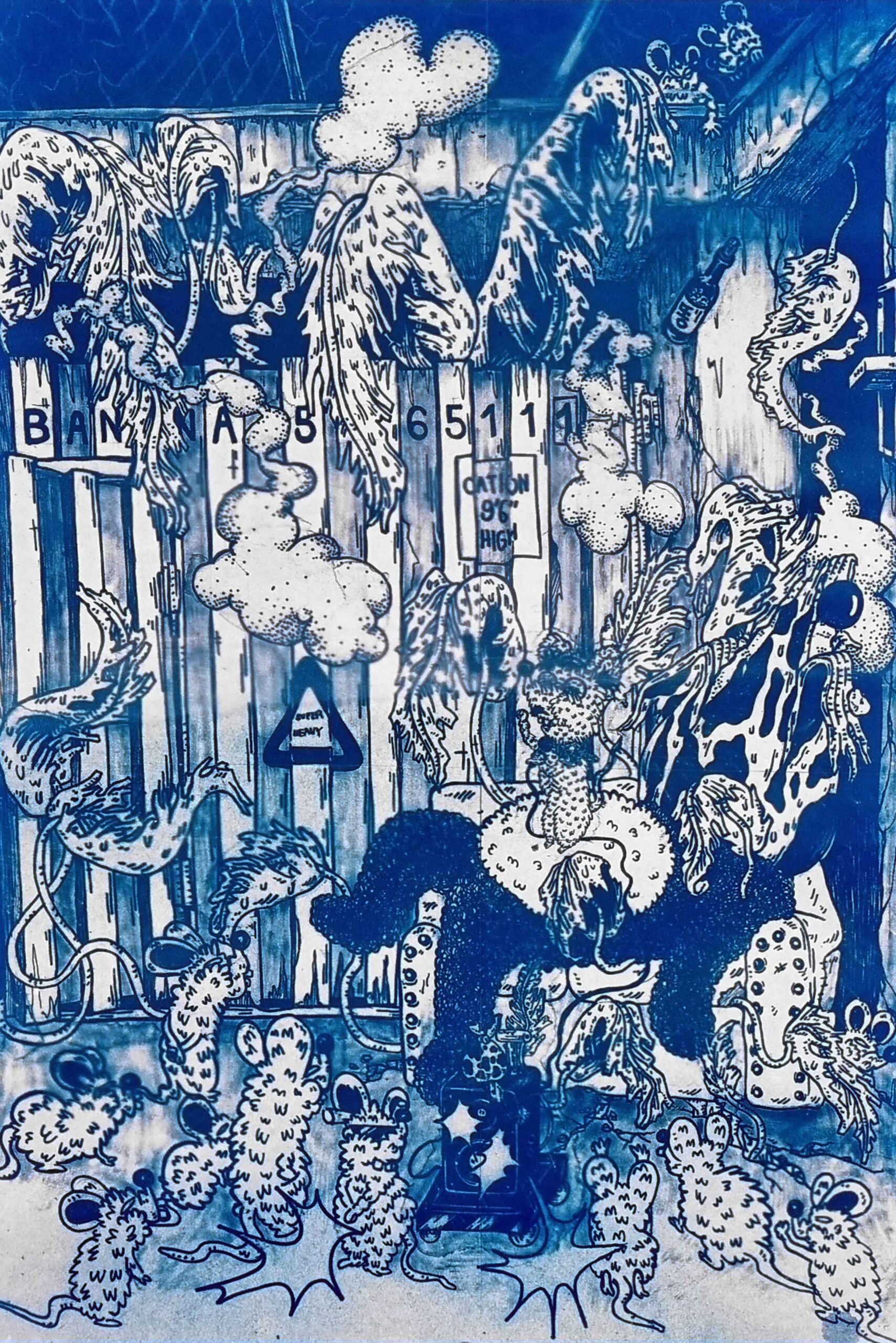 ‹쥐 혁명›, 2022, Cyanotype of Pen Drawing