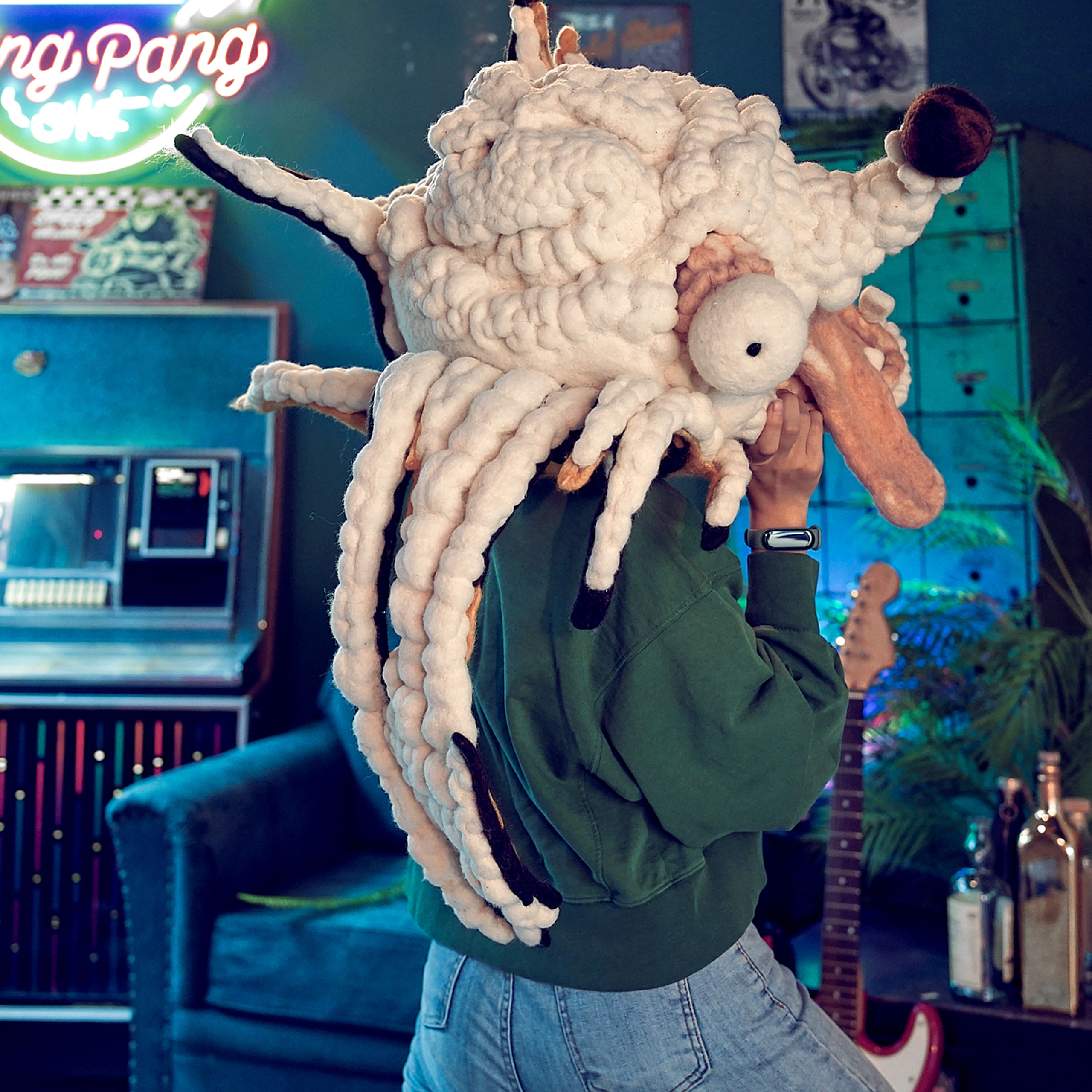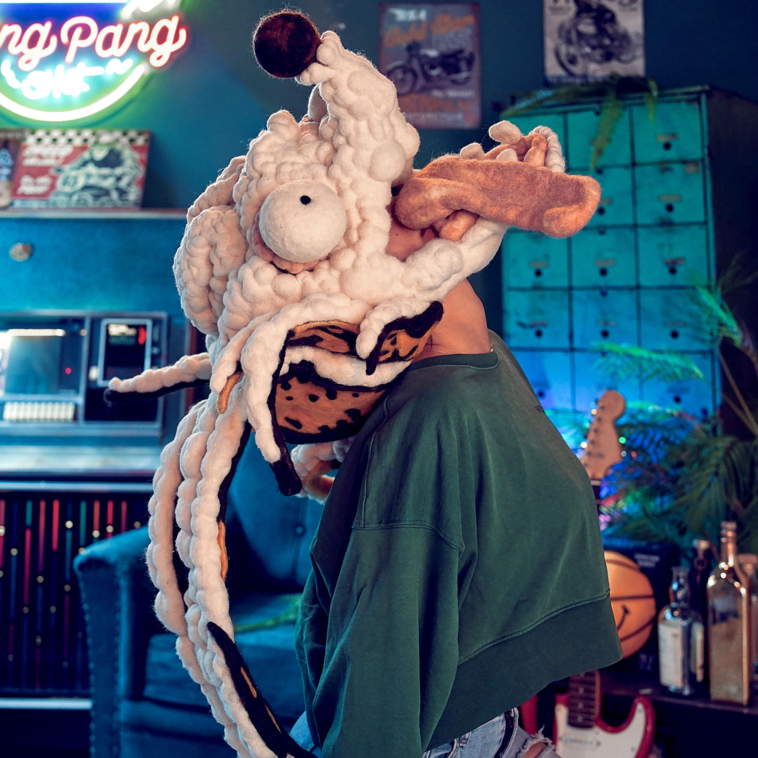 ‘관점의 차이’를 구체화하는 표현 방법에 집중을 많이 하고 있어요. 누구에게나 이런 면도, 저런 면도 있는데 우리는 너무 쉽게 자신이 보는 모습으로 상대를 규정짓잖아요. 캐릭터라는 건 사실 대상의 모방이 아니라 대상을 바라보는 나의 상태인 것같아요. 그러니 제 마음 상태가 바뀌거나 상대와 저의 관계가 이전과 달라지면 상대 모습도 다르게 보이지 않을까요? 그런 의미에서 제가 요즘 작업하는 열대광기의 세계관에 등장하는 ‘바나나 좀비’에는 타인이 그를 기억하는 과거 인간으로서의 모습, 좀비가 된 현재의 상태, 그리고 앞으로 벌어질 일에 대한 가능성을 담은 다면적인 의미들을 다루고 싶었죠. 좀비 캐릭터 중 하나인 ‘곰대리’의 돌연변이 진화 과정을 탈로 만드는 과정에서 좀비, 돌연변이라는 기괴하고 흉측한 모습을 따듯한 양모실을 뭉쳐 만든 것과도 연결되죠. 피해야 할 괴물이라는 존재에는 본질적으로 변함이 없지만, 그래도 포실포실 귀여운 감촉에 만져보고 싶은 마음이 드는 이중적인 느낌처럼요.