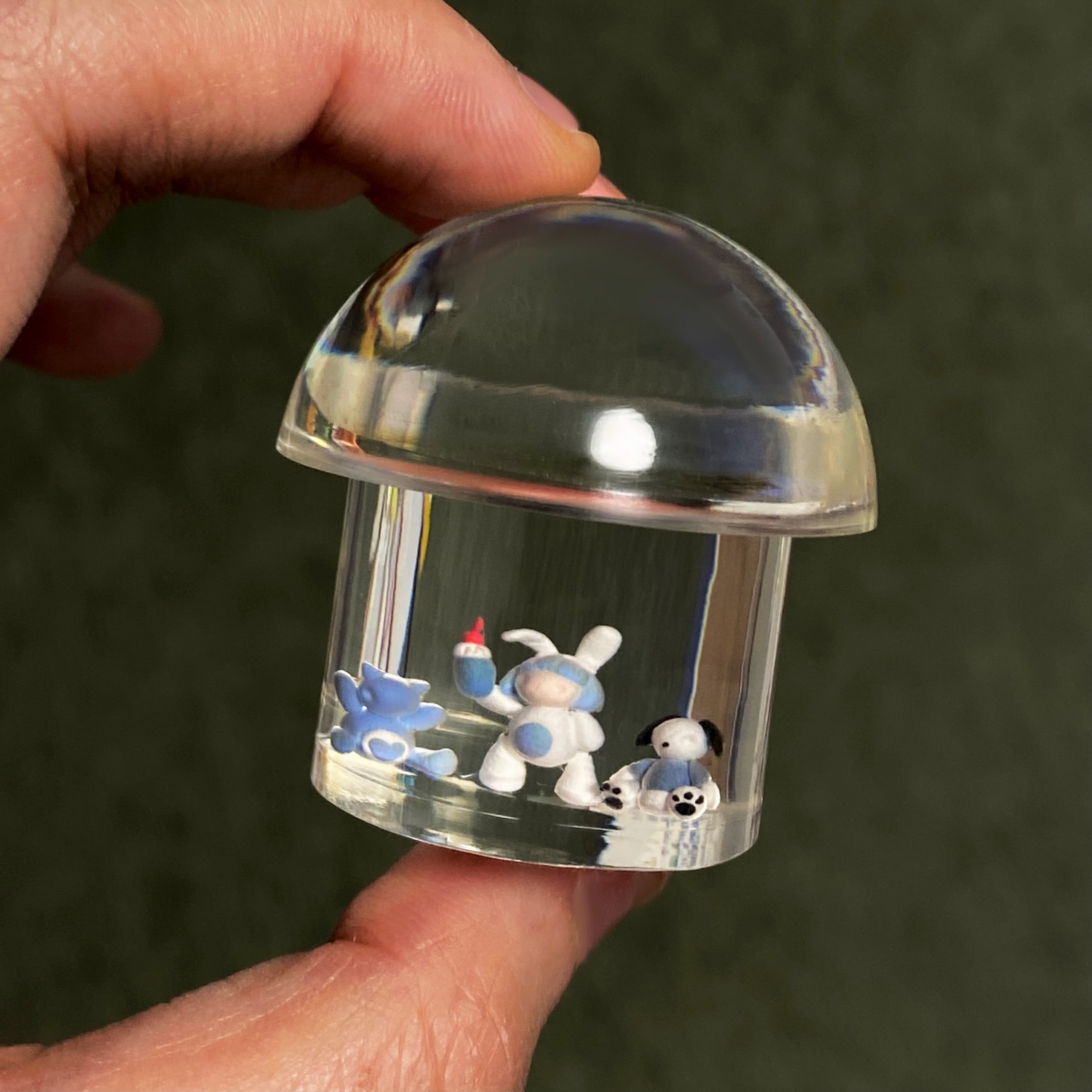 다양한 몰드 만들기에 열심입니다. 지금까지 주로 사각형 몰드에 클레이를 담았는데, 요즘은 사탕, 안약 용기, 사과 등 주변에 있는 사물의 형태에 클레이를 담고 싶더라고요. 시중에서 파는 몰드 중에는 마음에 드는 모양이 없어서 직접 모델링을 하고 3D 프린터로 뽑아서 몰드를 만들고 있어요. 아직 실리콘으로 몰드 만드는 과정이 익숙지 않아서 실패를 많이 하고 있습니다. 실력이 빨리 늘면 좋겠어요.