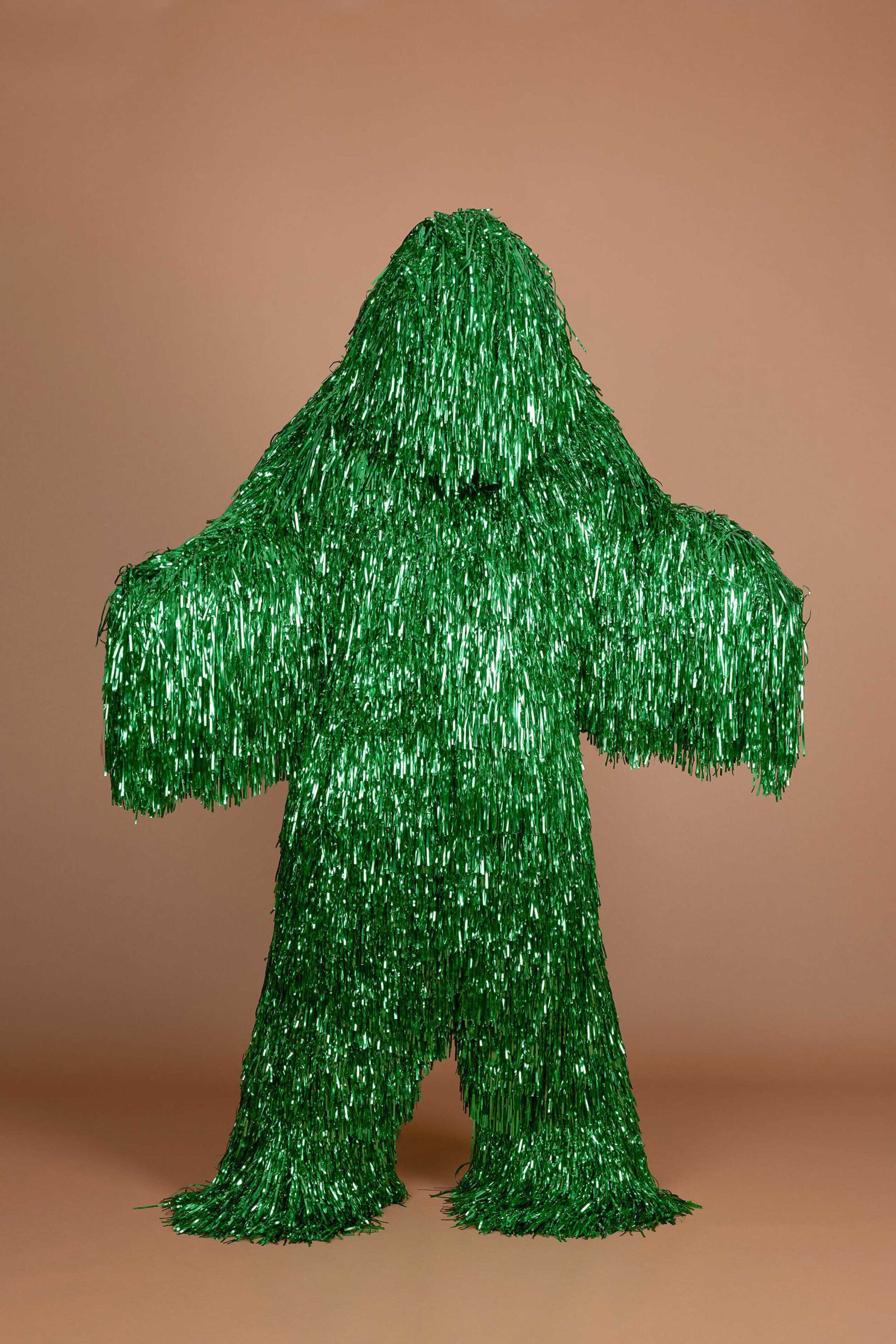 연극 시리즈의 대표작을 꼽자면 ‹Pompom›이 아닐까 싶어요. 이 작품은 감정의 초상화입니다. 비록 신체는 보이지 않지만 되려 어떤 정서가 더 드러나는 작품이에요. 더불어 신체를 둘러싼 물질이 감정처럼 가벼워 보이는데 아이러니하게 신체는 더 무거운 느낌을 자아냅니다. 사실 이 작품은 나무이면서도, 동시에 크리스마스트리입니다. 사진 속 이상한 녹색 덩어리는 ‘기쁨’의 존재예요. 크리스마스트리처럼 녹색을 띤 이 존재는 온몸을 빛내며 기쁨을 응원하고 있습니다. 어딘가 무거워 보이는 이유는 신체를 뒤덮은 물질 때문일 수도 있지만, 단순히 물리적 무게의 문제라기보다 정서적인 면모, 즉 무거운 마음 같은 것을 동시에 느낄 수 있기 때문이라고 생각해요. 이 작업은 예전에 읽었던 시집의 한 글귀에서 출발했는데요. ‘크리스마스트리와의 거리는 수천 킬로미터’라는 문장이었어요. 이 문장을 곱씹어 보며 느낀 기분을 최대한 작품에 담아내려 했습니다. 여러 기념일 중에서 특히 크리스마스는 행복을 강요하는 날이란 느낌을 받았거든요. 이런 정서를 담아 ‘감정의 초상화’로 표현했습니다. 우리는 끊임없이 좌절하면서도 자신을 응원하는 존재라고 생각하기 때문에 이런 작업을 꾸준히 이어온 것 같아요.