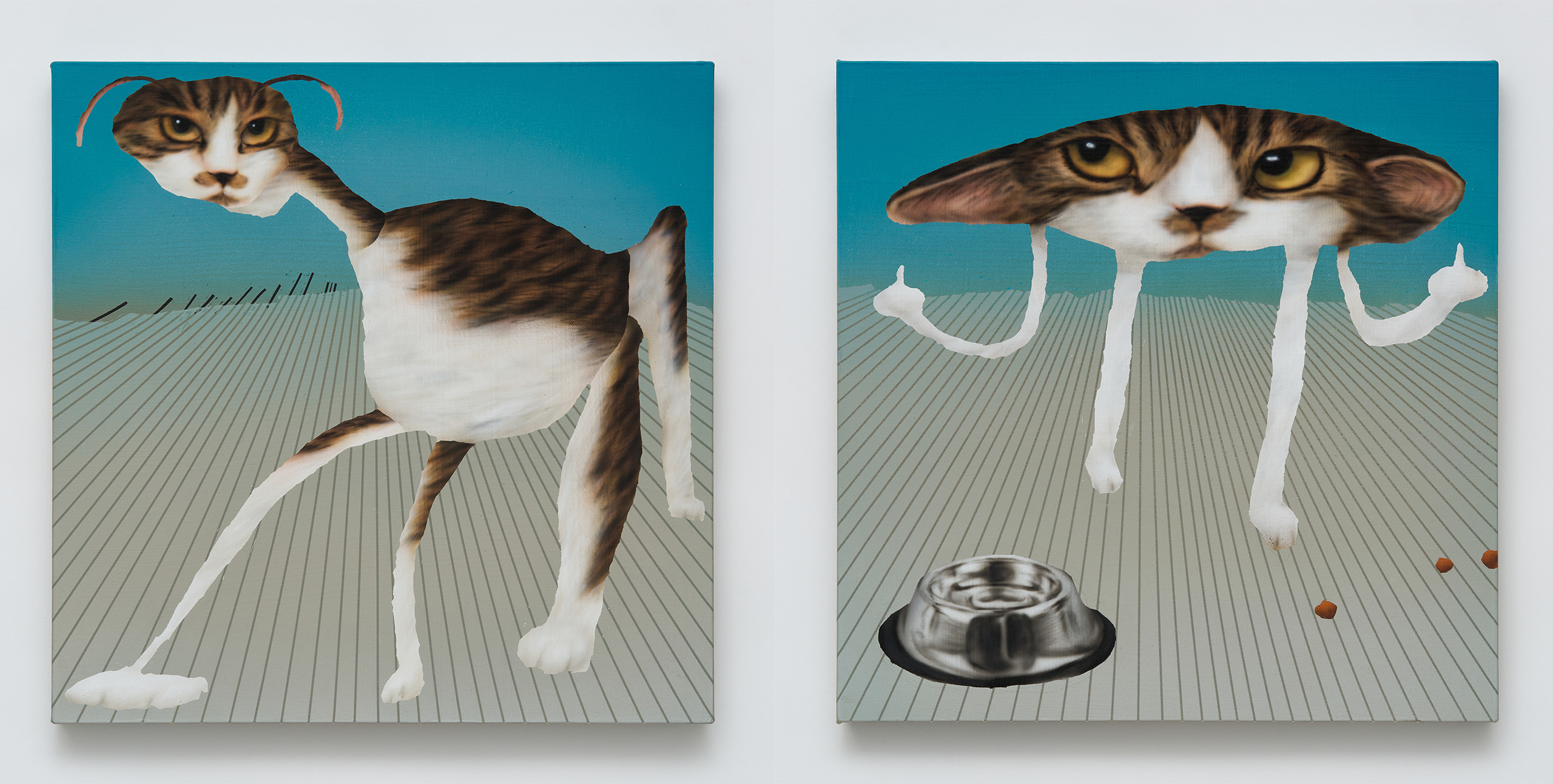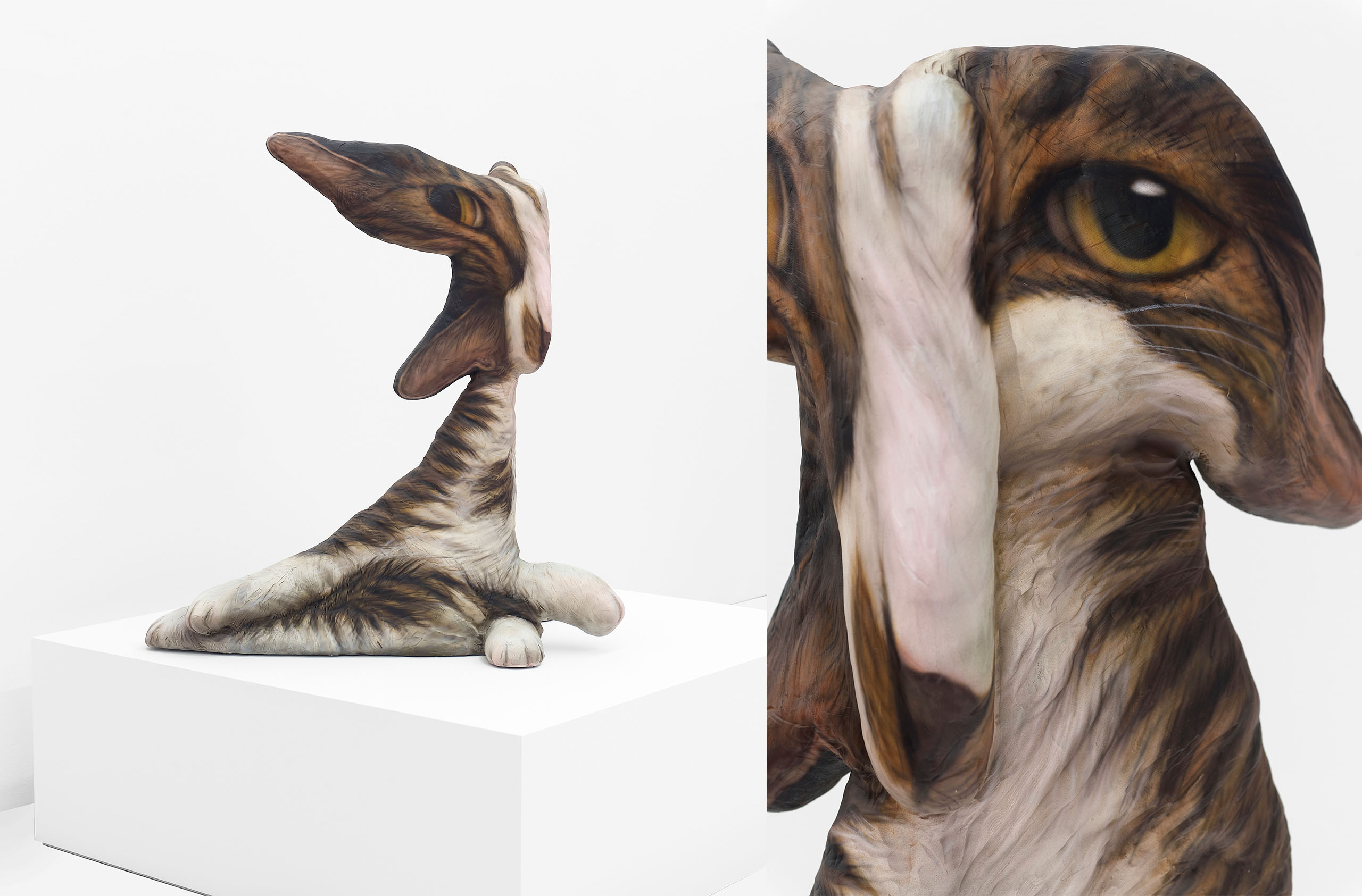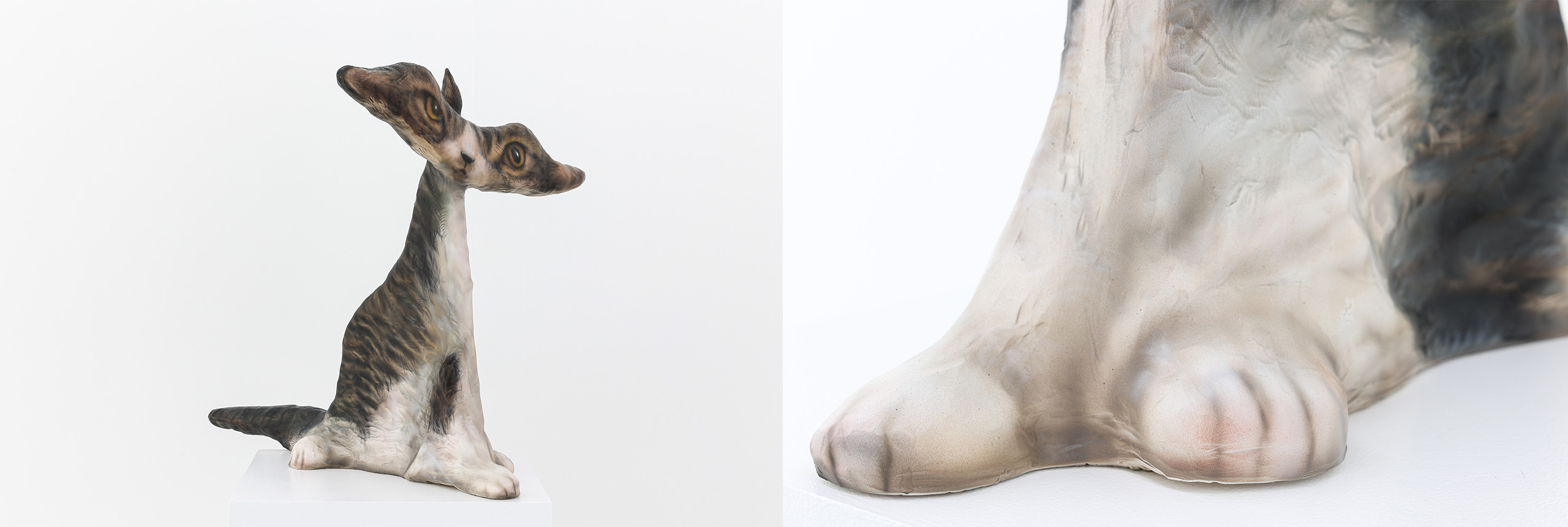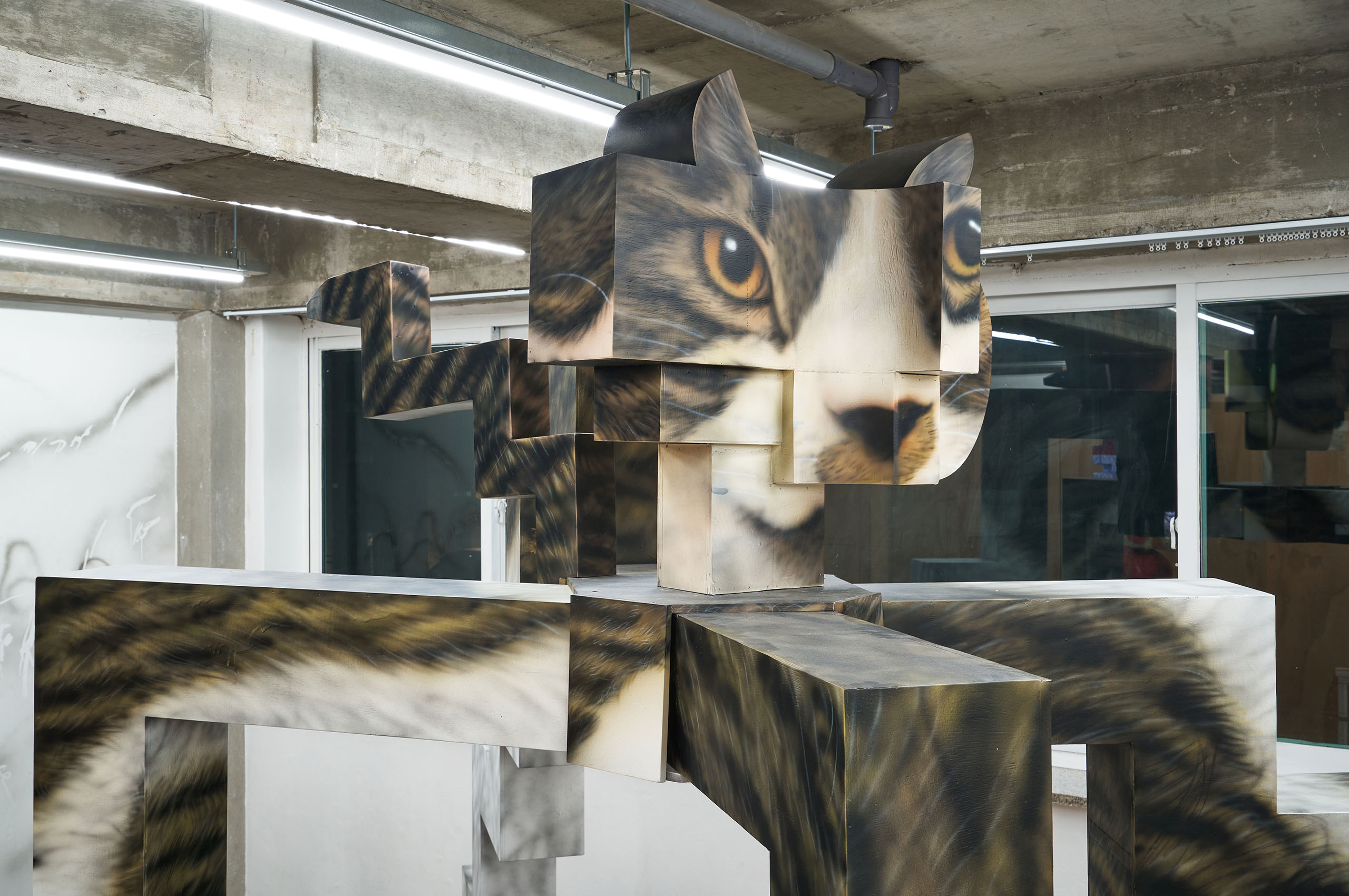‹Hiro is everywhere›(2021-2023) 입체 연작은 반려묘 히로와의 동거 과정에서 탄생했습니다. 히로의 이미지와 온라인에 떠돌아다니는 고양이 ‘밈meme’의 왜곡된 형태를 혼합한 결과물입니다. SNS에서 ‘밈스타memestar’로 떠오른 반려동물을 보며, ‘우리 히로도 한번 스타로 만들어 보고 싶다’는 개인적인 소망도 담겨 있습니다. (웃음)