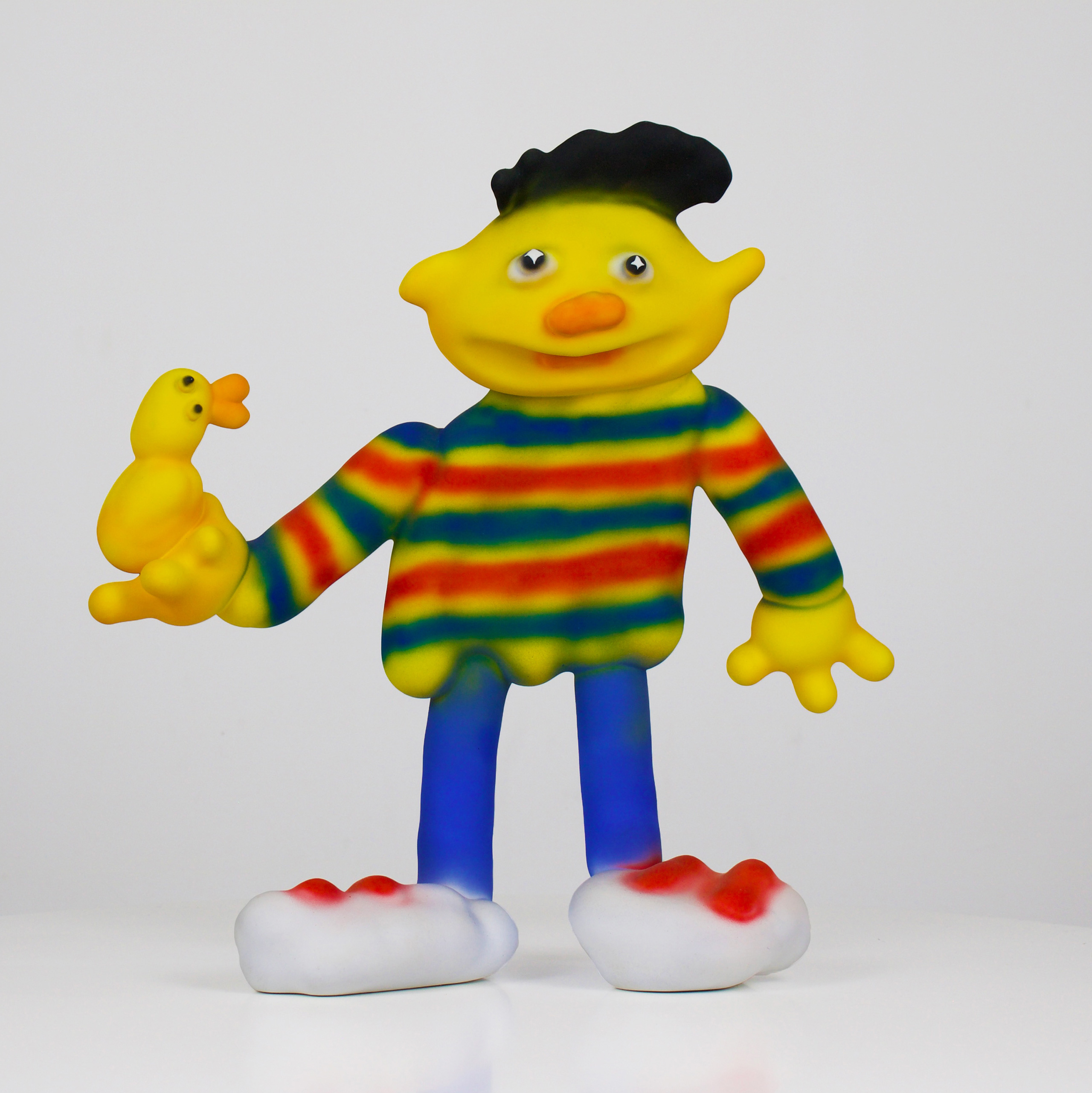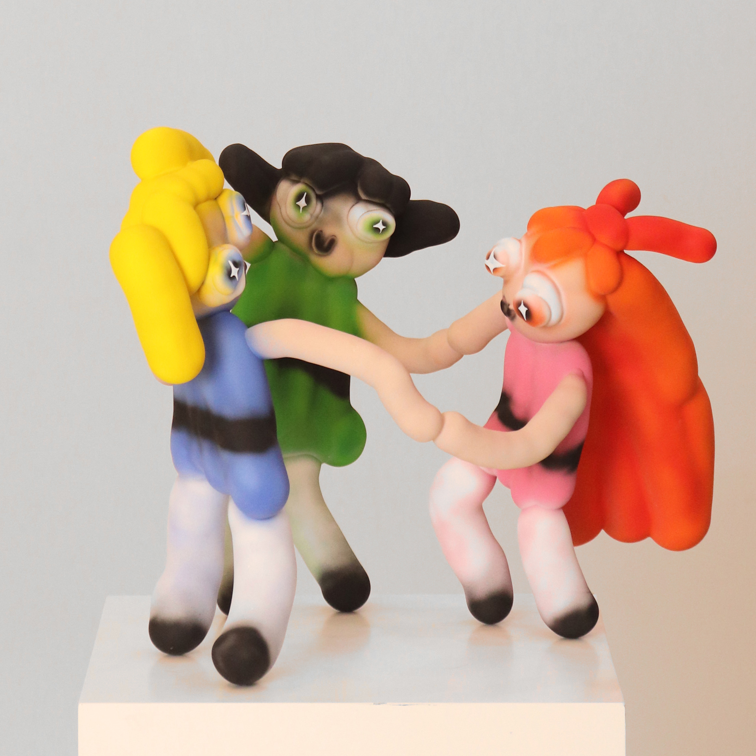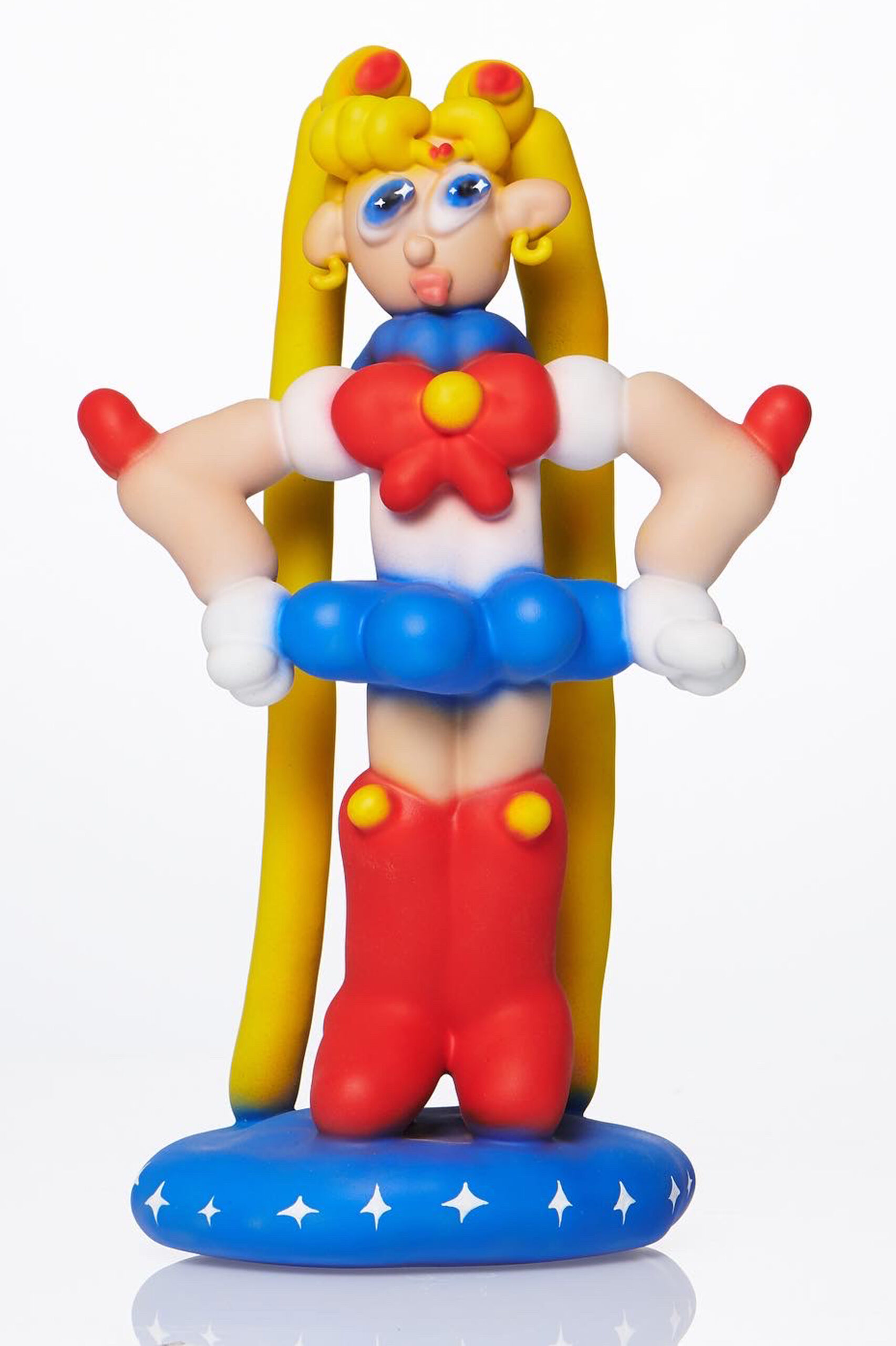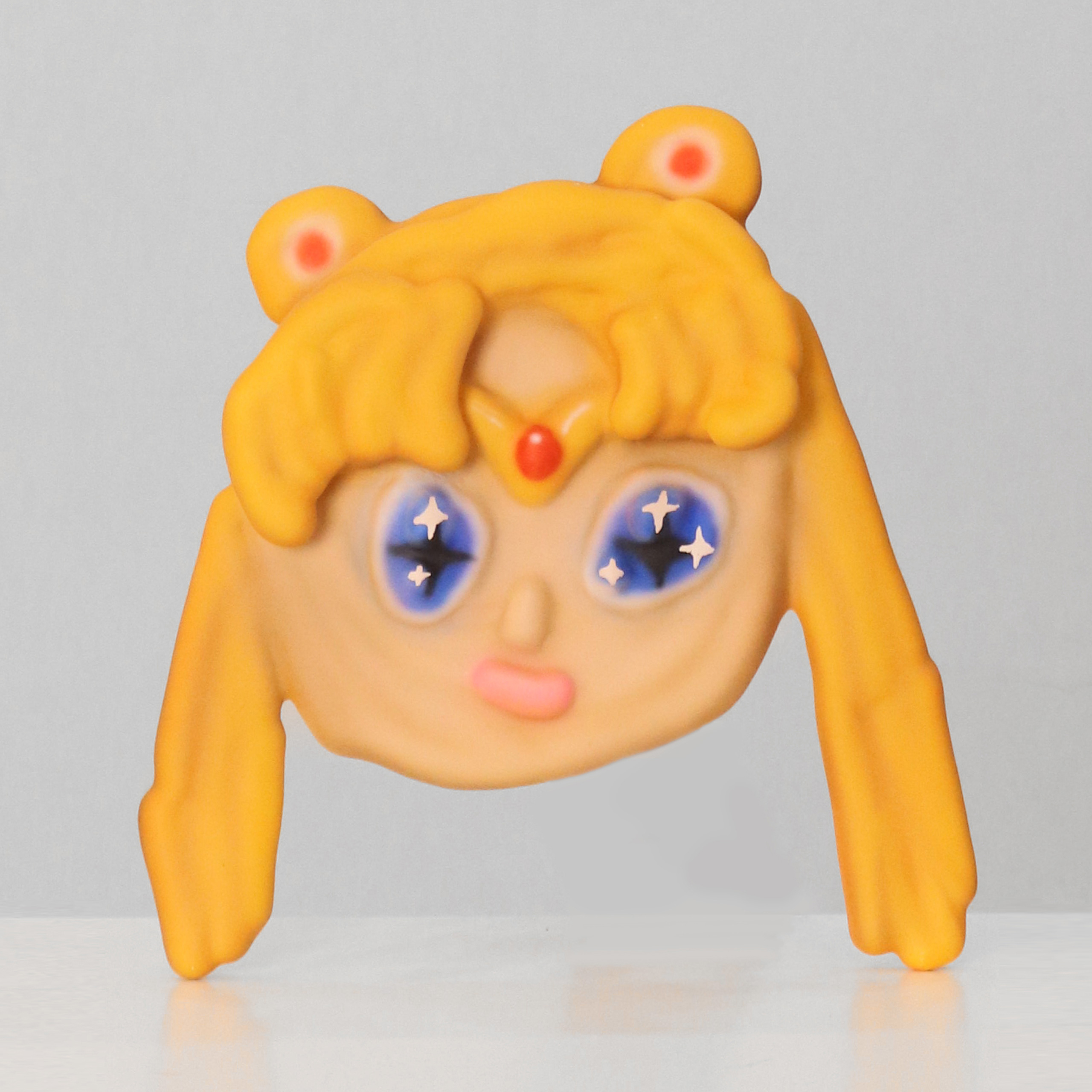 ‹세일러문›을 봤던 기억을 작업으로 만들었어요. 큰 눈, 노란색 양 갈래 머리카락, 파란 치마 등 몇 가지 요소와 전체적인 색감이 매우 화려하고 조화로웠던 오래된 기억을 가지고 있는데요. 이를 토대로 왜곡되고 변형된 저만의 캐릭터를 만들어 보았습니다.