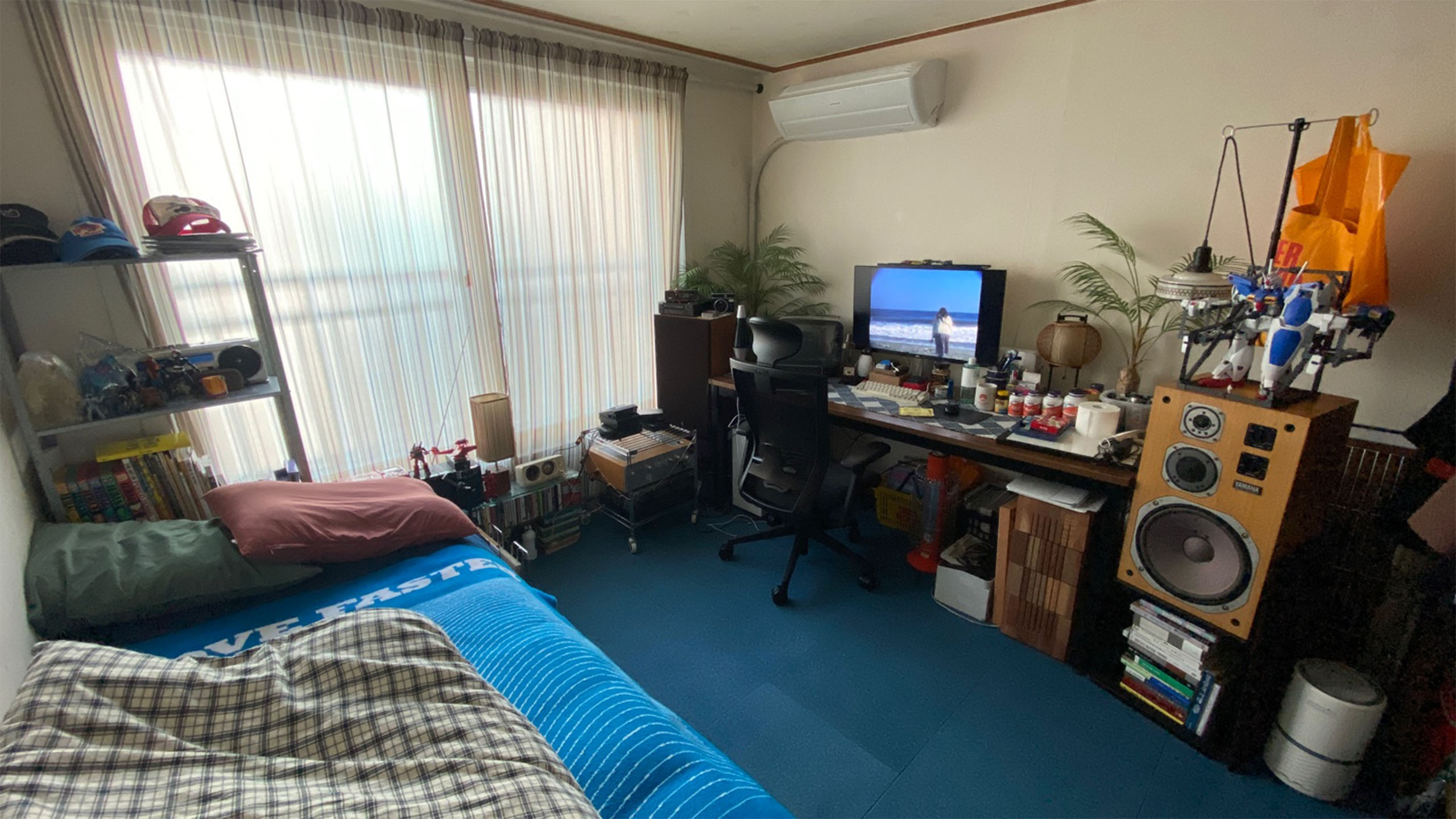 작업실을 구하면 온갖 핑계를 대고 나가지 않을 것 같아서, 그냥 방 한 칸에 짐을 다 때려 박아두었어요. 제가 좋아하는 빈티지 오디오, 브라운관 TV, 조명…누군가는 제 방에서 골동품 냄새가 난다고 해요. 저 역시 동감합니다. (웃음) 책상은 원래 깨끗하게 유지하는 걸 선호하지만 지금 사는 곳은 좁기 때문에 여기저기 수납하는 일이 쉽지 않아서 그냥 늘어놓은 상태예요. 그래서 영양제가 놓여 있기도 한데요. 때가 되면 화판과 라이트 박스, 작화지 및 온갖 미술 용구가 책상의 절반을 차지한답니다. 드물게 실물 작화를 할 때요. 작업과 수면이 공존하는 단칸 창고 같은 방이라서 설명할 요소가 없기에 부끄럽네요. 다른 분처럼 화려한 작업용구가 있는 상황도 아니라서 비루하기 짝이 없습니다. 나중에 이사 가거들랑 다시 한번 소개해 드릴 수 있으면 좋겠어요.