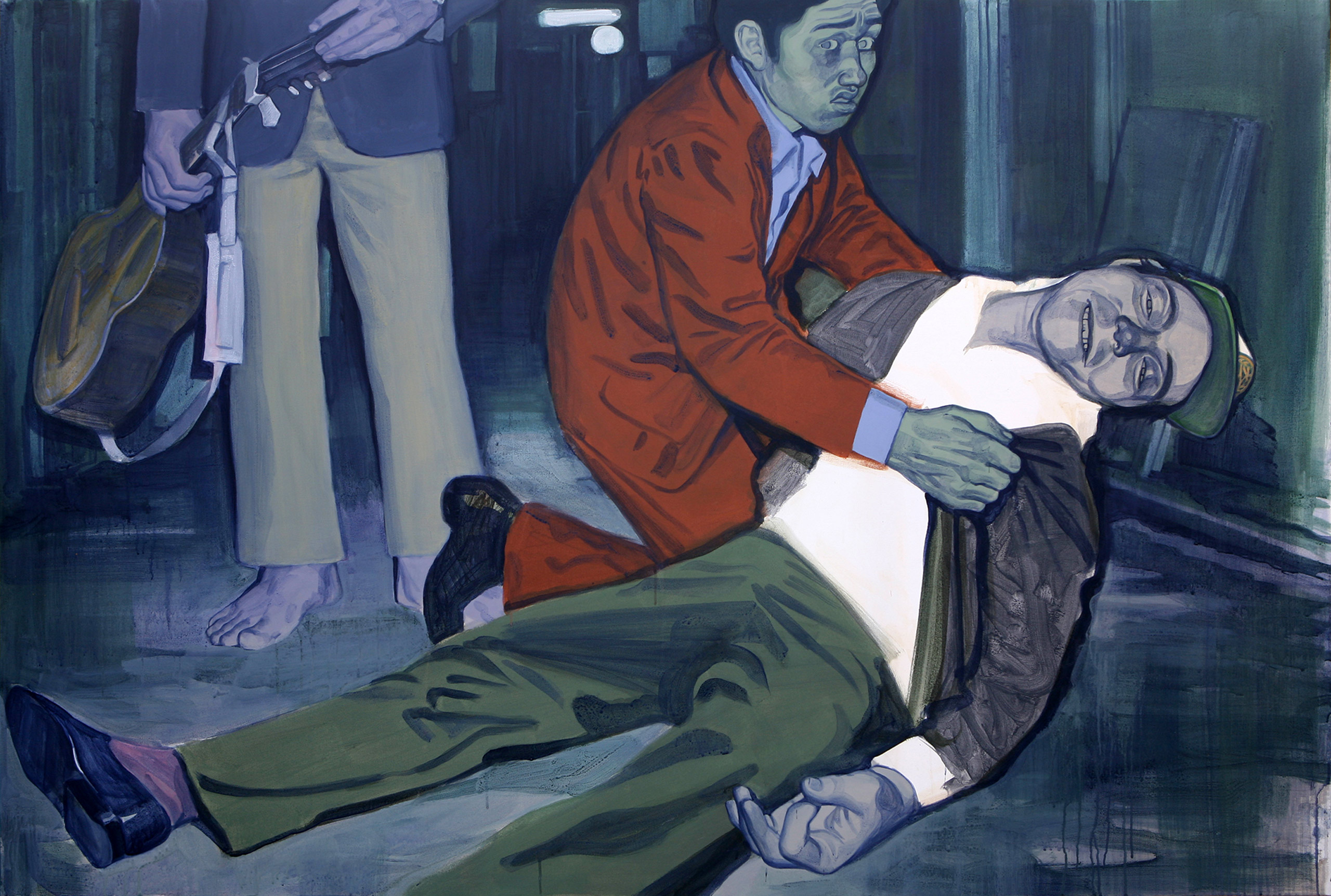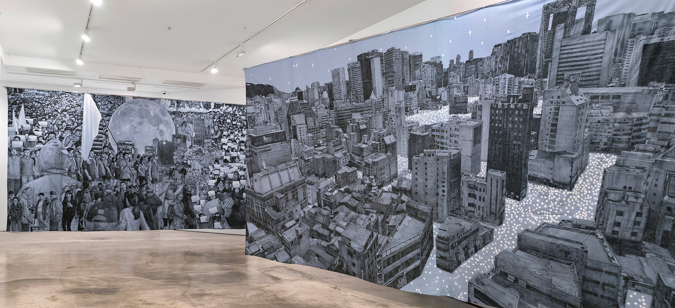 ‹빛나는, 거리 위의 사람들 Floating lights on the street›, 2016, 천 위에 수성 페인트, 젯소, 300×543cm