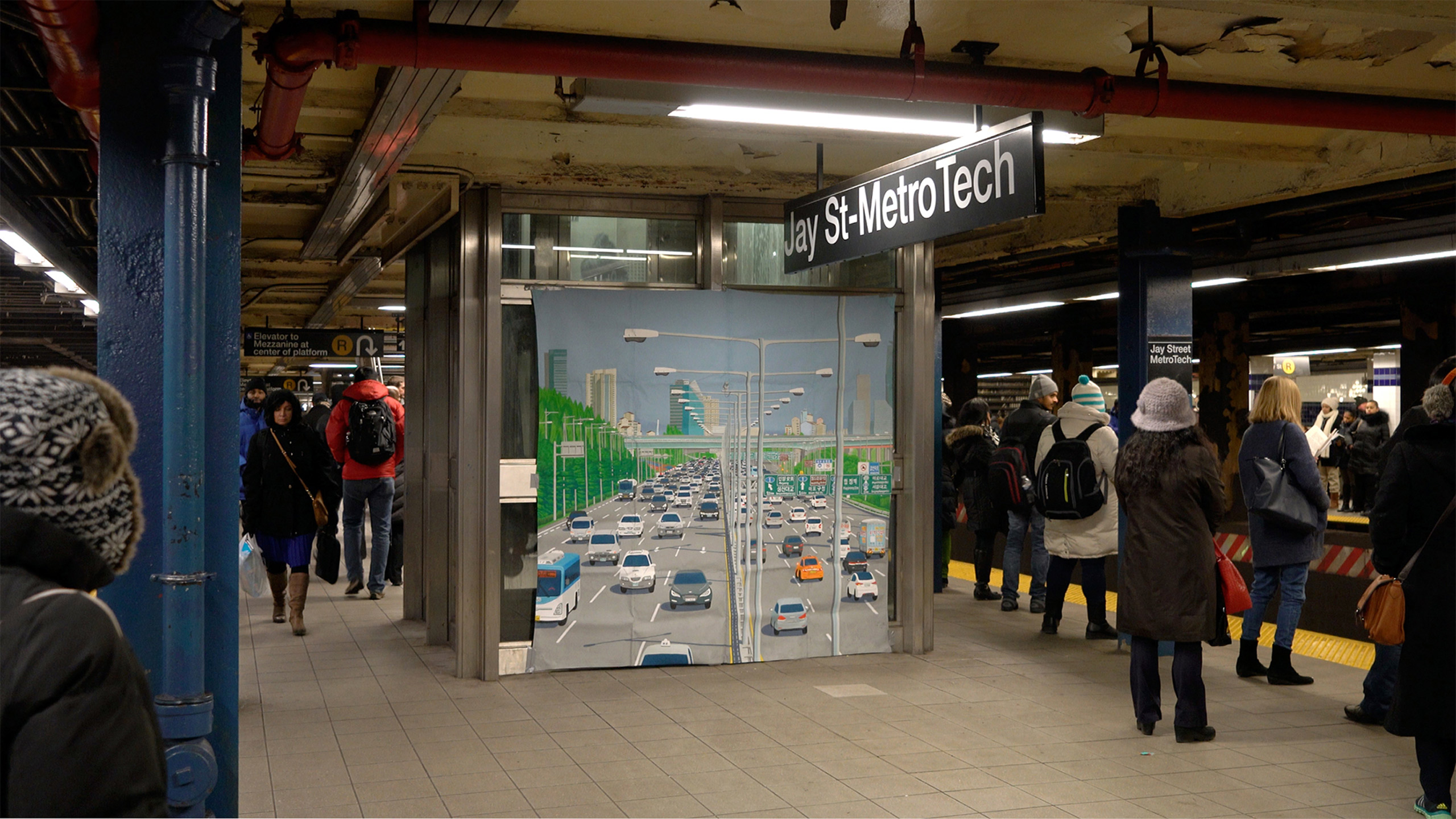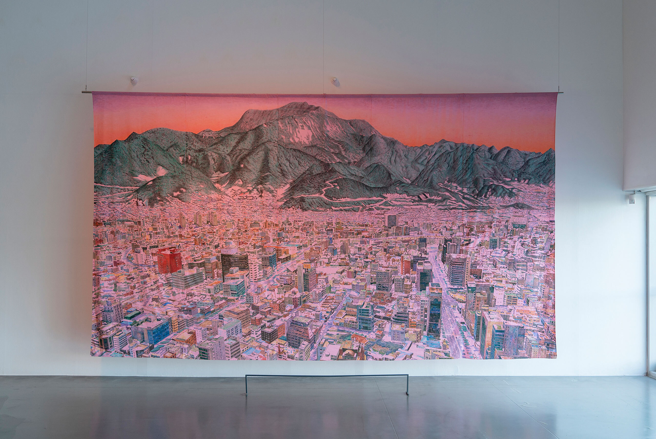 ‹접혔다 펼쳐지는 그림 뉴욕 (2016) 강변북로 Riverside Expressway›, 2015, 천 위에 수성 페인트, 아크릴릭 과슈, 210×210cm