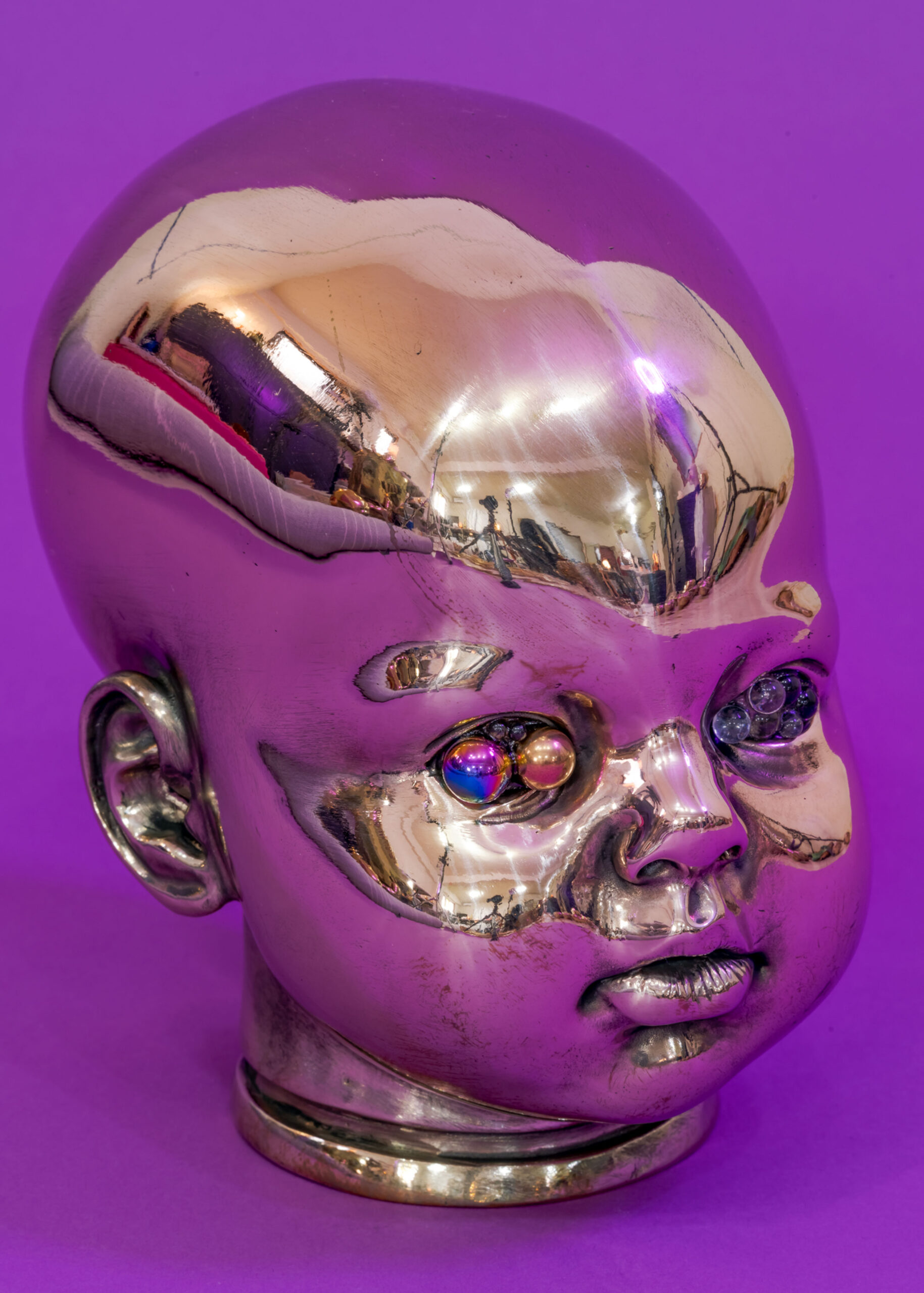 ‹사르트르, 외사시, 10개의 눈, 사물›, 2020, 황동 주물, 자석, 광물, 15×12×17cm