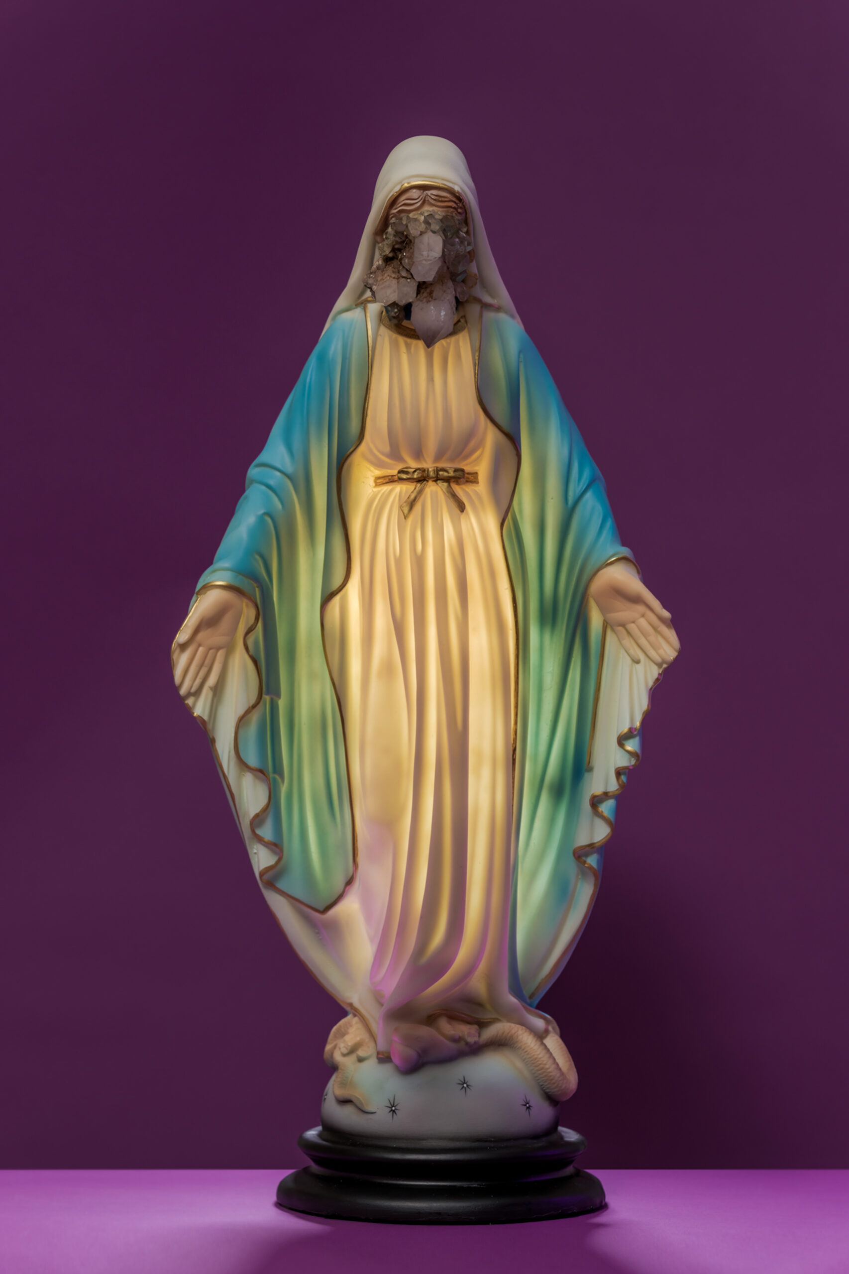 ‹파티마 성모마리아, 1,000개의 눈, 사물›, 2020, 나무에 채색, 광물, 115×33×35cm