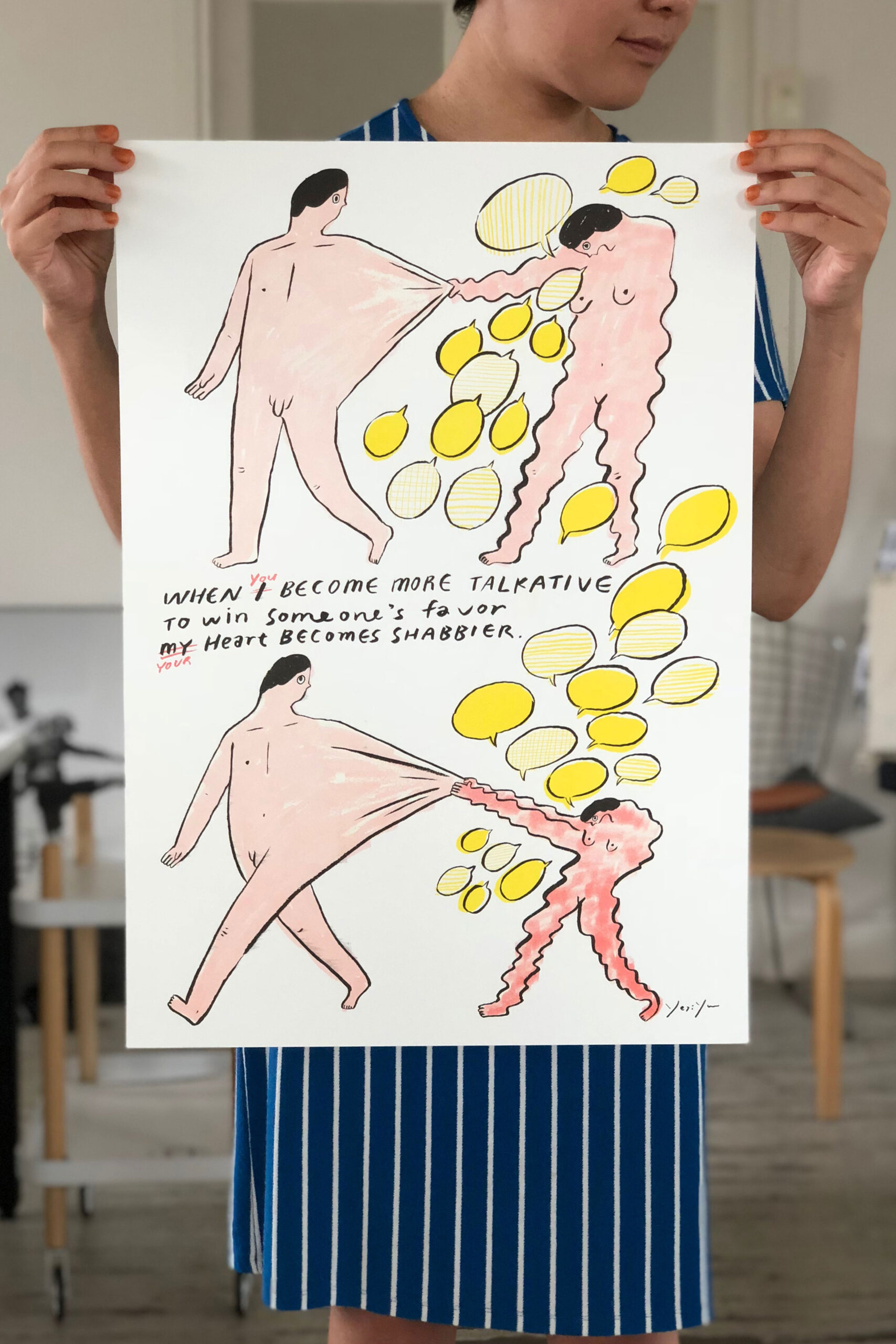 일러스트레이터는 창작자이면서 동시에 클라이언트가 원하는 이미지를 만드는 서비스직이기도 해요. 그래서 제 업무 철학은 ‘돈을 받고 일할 땐 퀄리티와 시간을 지킨다’입니다. 창작자로서의 철학이라면 ‘일차원적인 아이디어에서 항상 한발 더 나아가려고 애쓸 것’입니다. 진부해지고 싶지 않거든요.